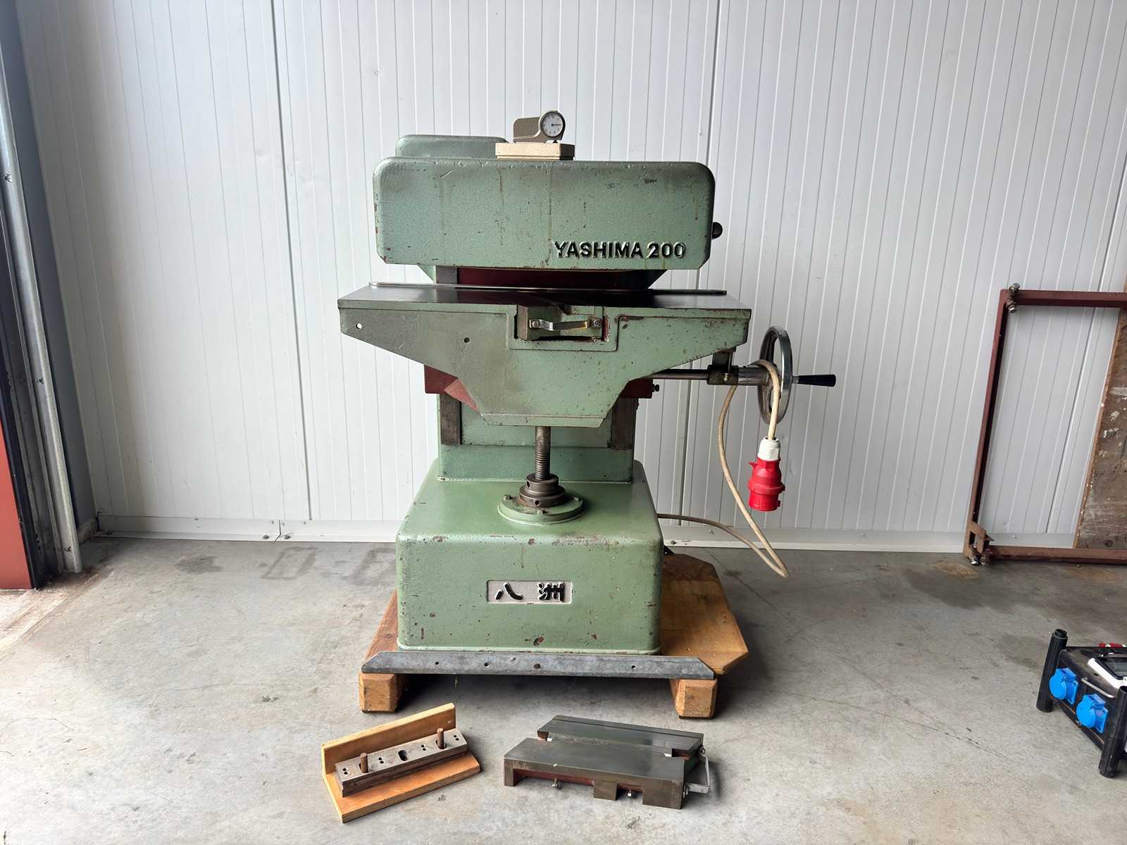 - Model: Yashima 200 - Planing width: 200 mm - Planing height: 165 mm - Throughput: 50 and 100 m/min - Equipped with a 1.5KW (2HP) motor - Voltage: 400V - Year of construction: 1971 Included accessories: - 6 extra blades - additional knife holder Transport dimensions: Length: 1000mm Width: 700mm Height: 1200mm Auction-ID: A1-41990-76