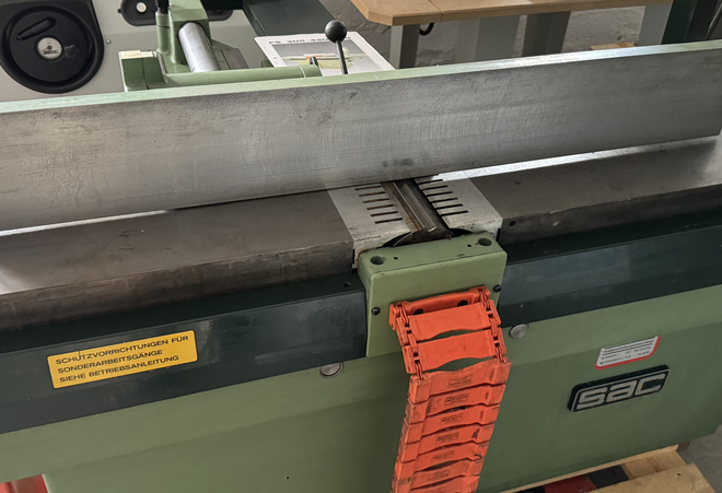 рабочая ширина: 500 мм; каттер-хед: Лейтц — Центрофикс; количество лопастей: 4; Длина таблицы поверхности: 2800 мм; Регулировка стола: рычаг; Прочтите высоту стола: Scala; регулируемый забор с кислым лицом: да; мощность мотора: 5,5 кВт; длина машины: 2800 мм; ширина станка: 1000 мм; вес: 900 кг;