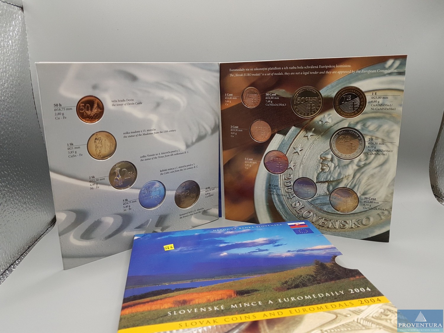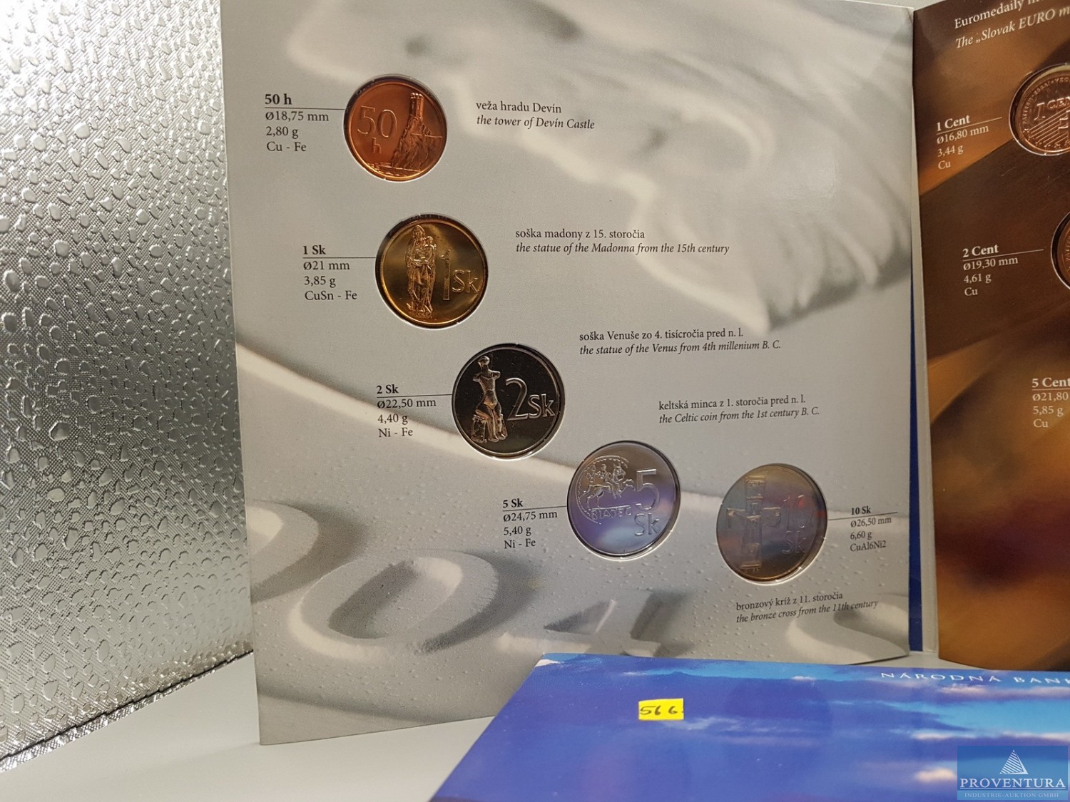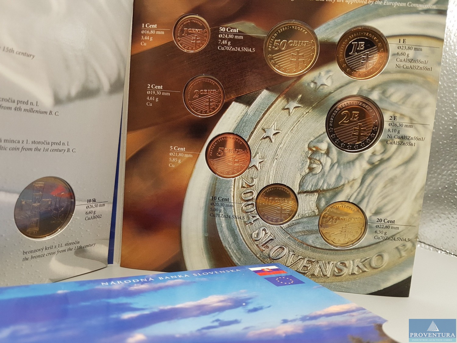 Coin Set Slovakia 2004 50 Heller - 10 крон, с предевропейскими выпусками 1 ct - 2 Euro, st, всего 3,88 евр