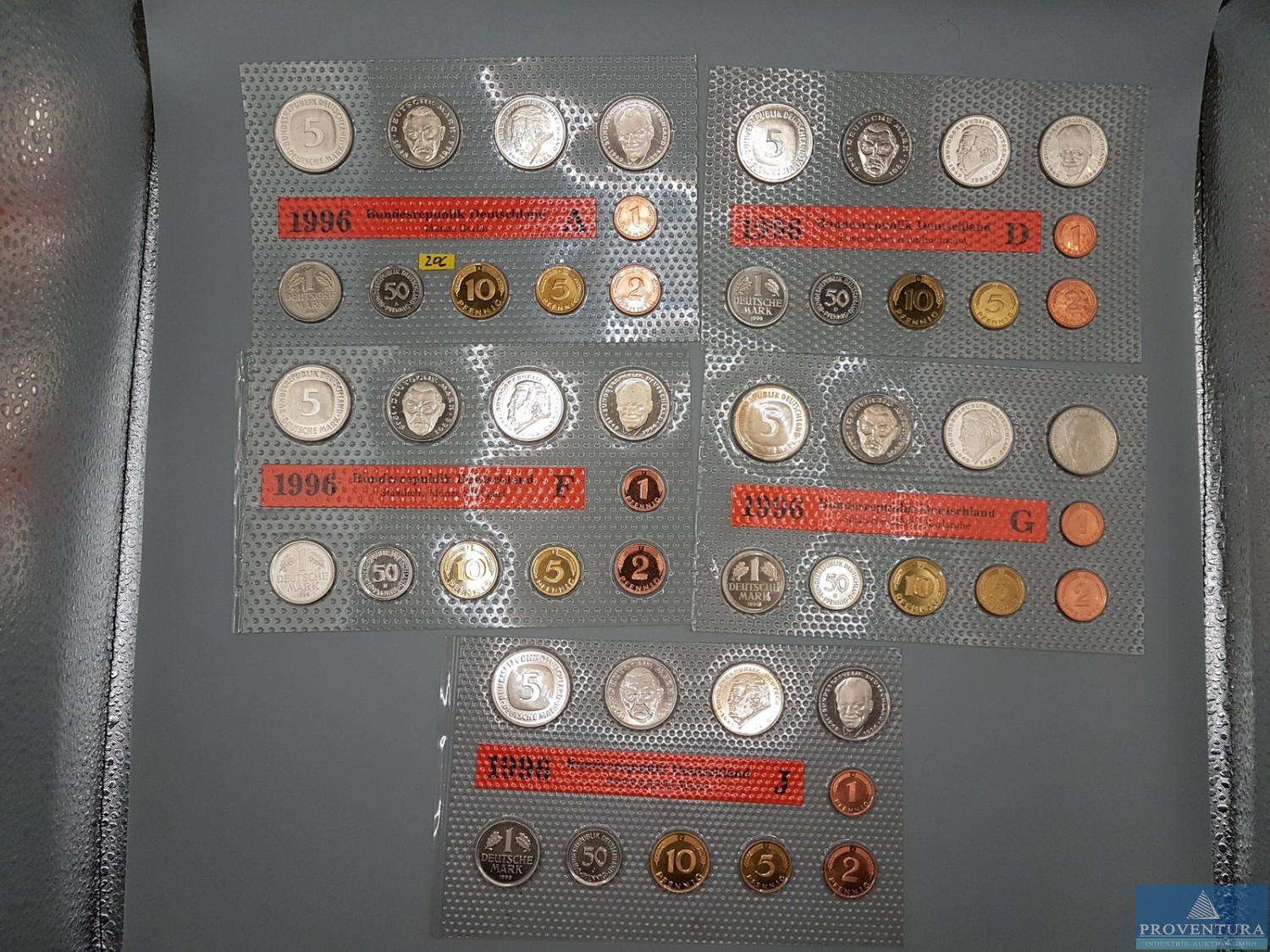 KMS Федеративная Республика Германия 1996 ADFGJ st, каждая 12,68 DM = 63,40 DM, J открыт
