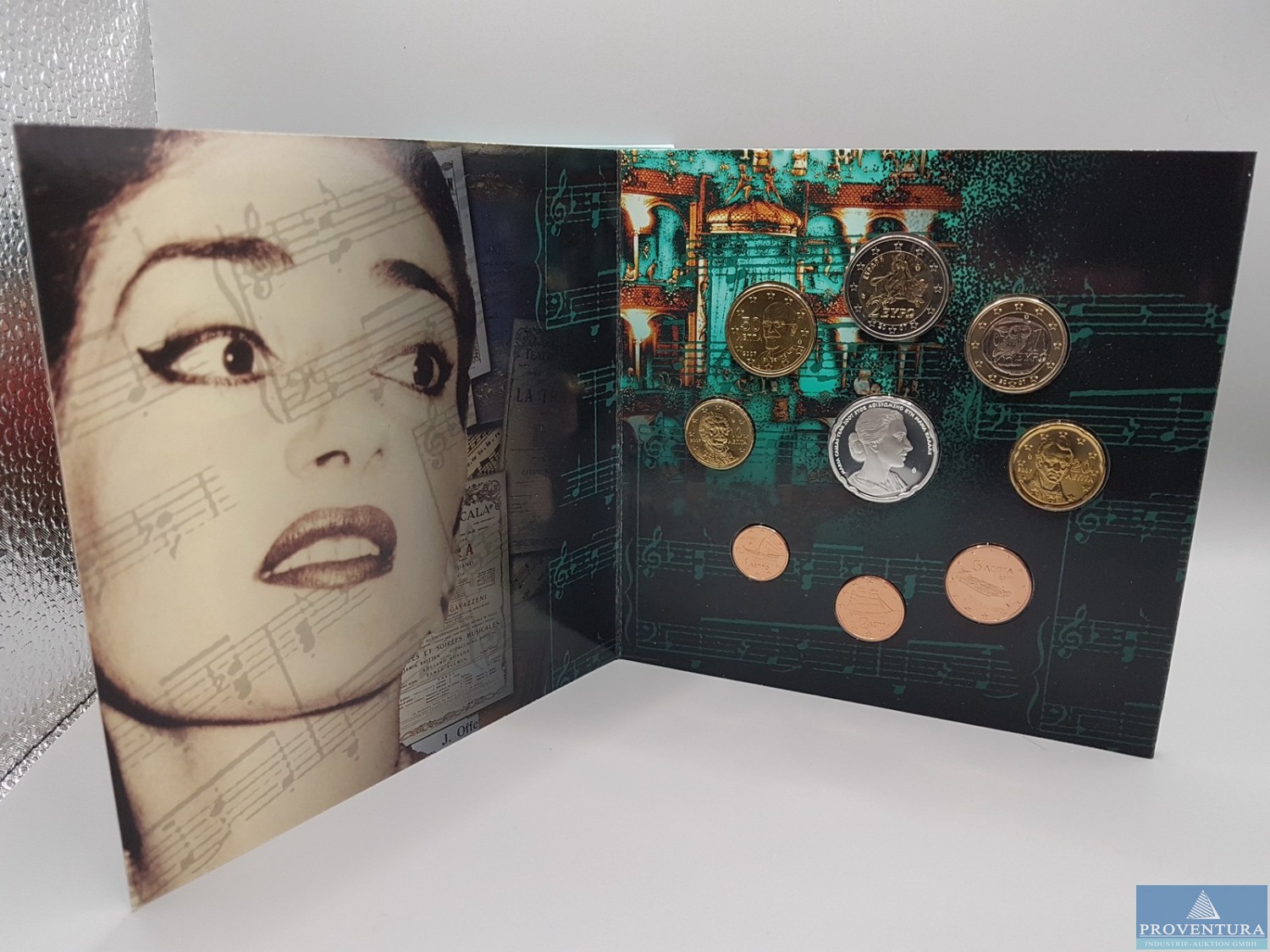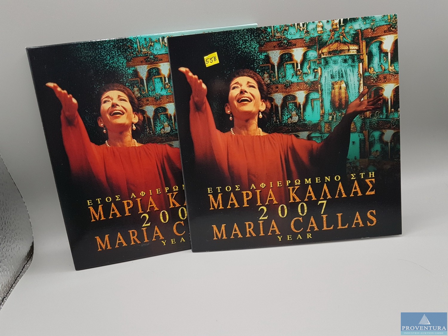 Евро-сет Греция Maria Callas 2007 1 карат — 2 евро + 10 евро Мария Каллас, пруф, всего 13,88 евро, тираж 5 000 комплекто