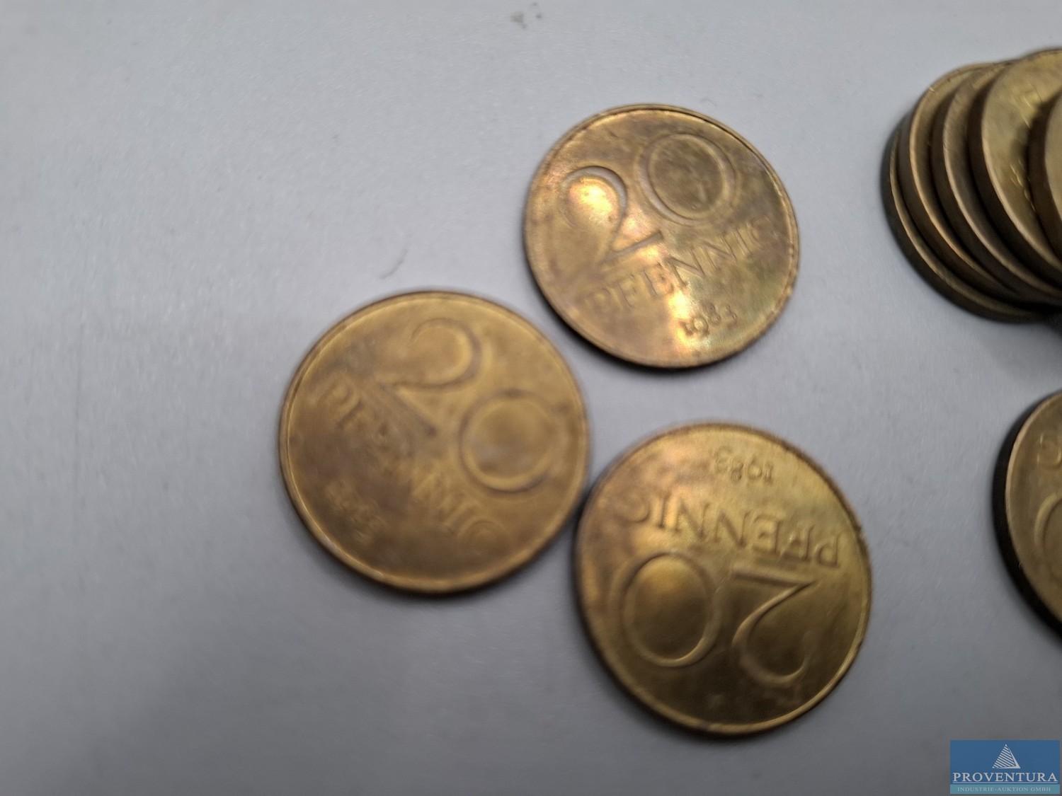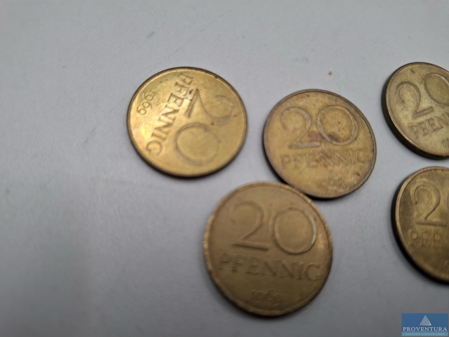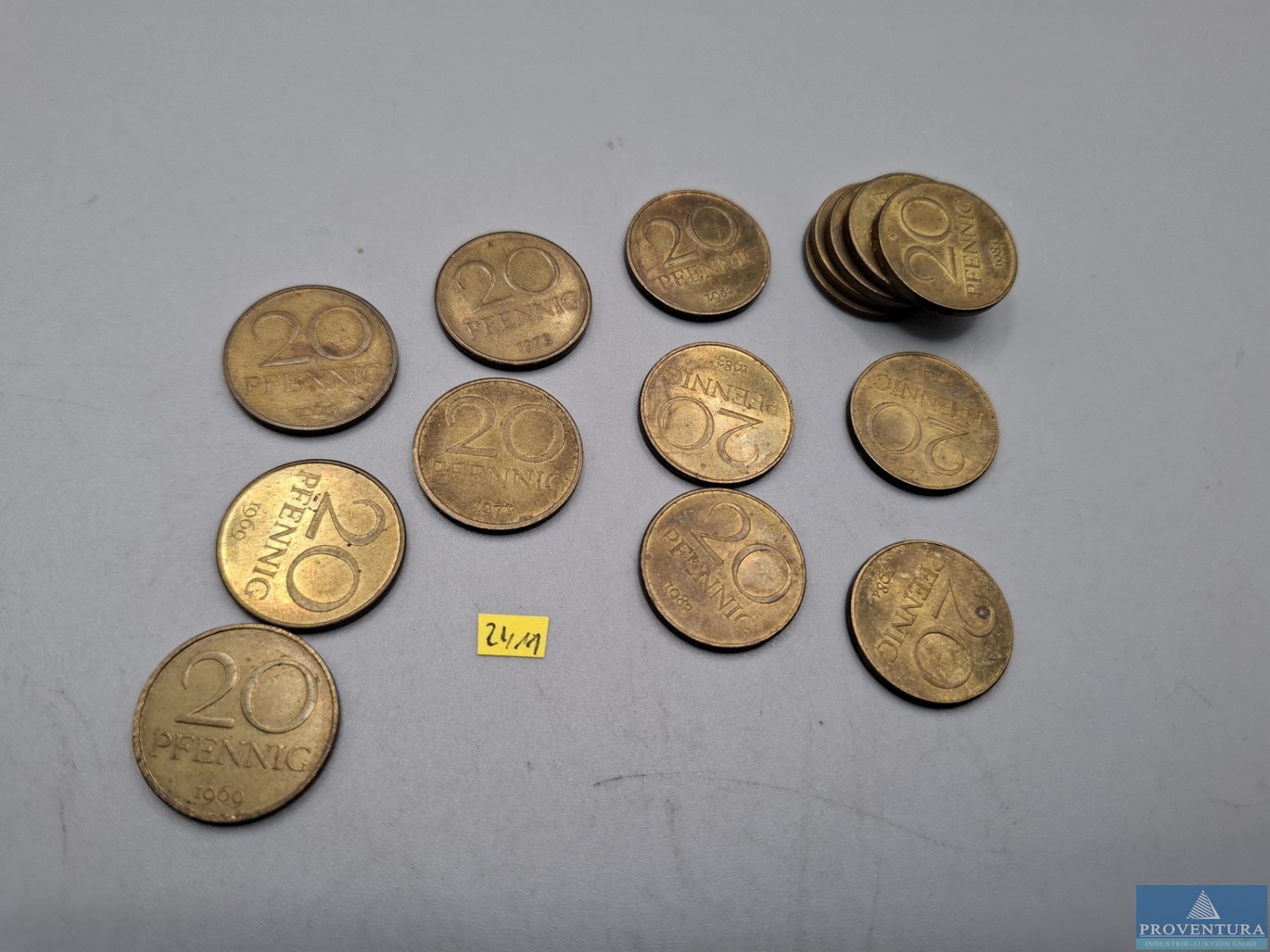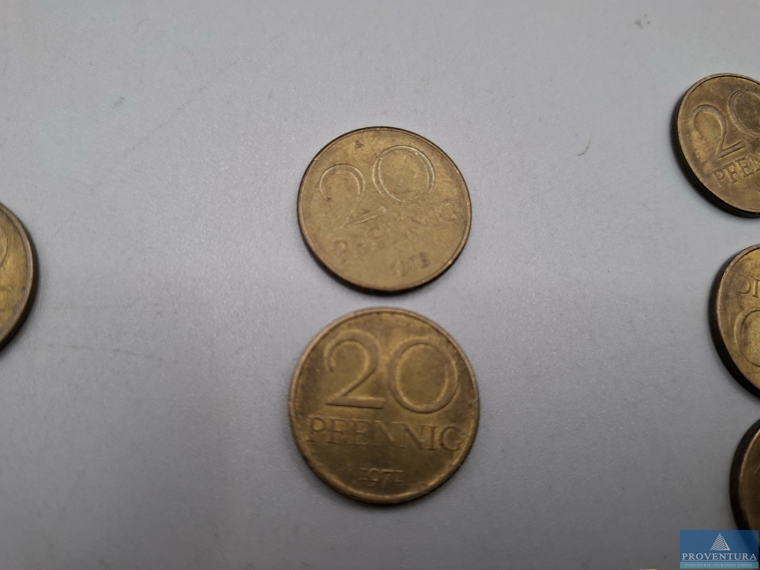 Оборотные монеты ГДР 20 пфеннигов 3x 1969, 2x 1973, 3x 1983, 7x 1984, всего 15 моне
