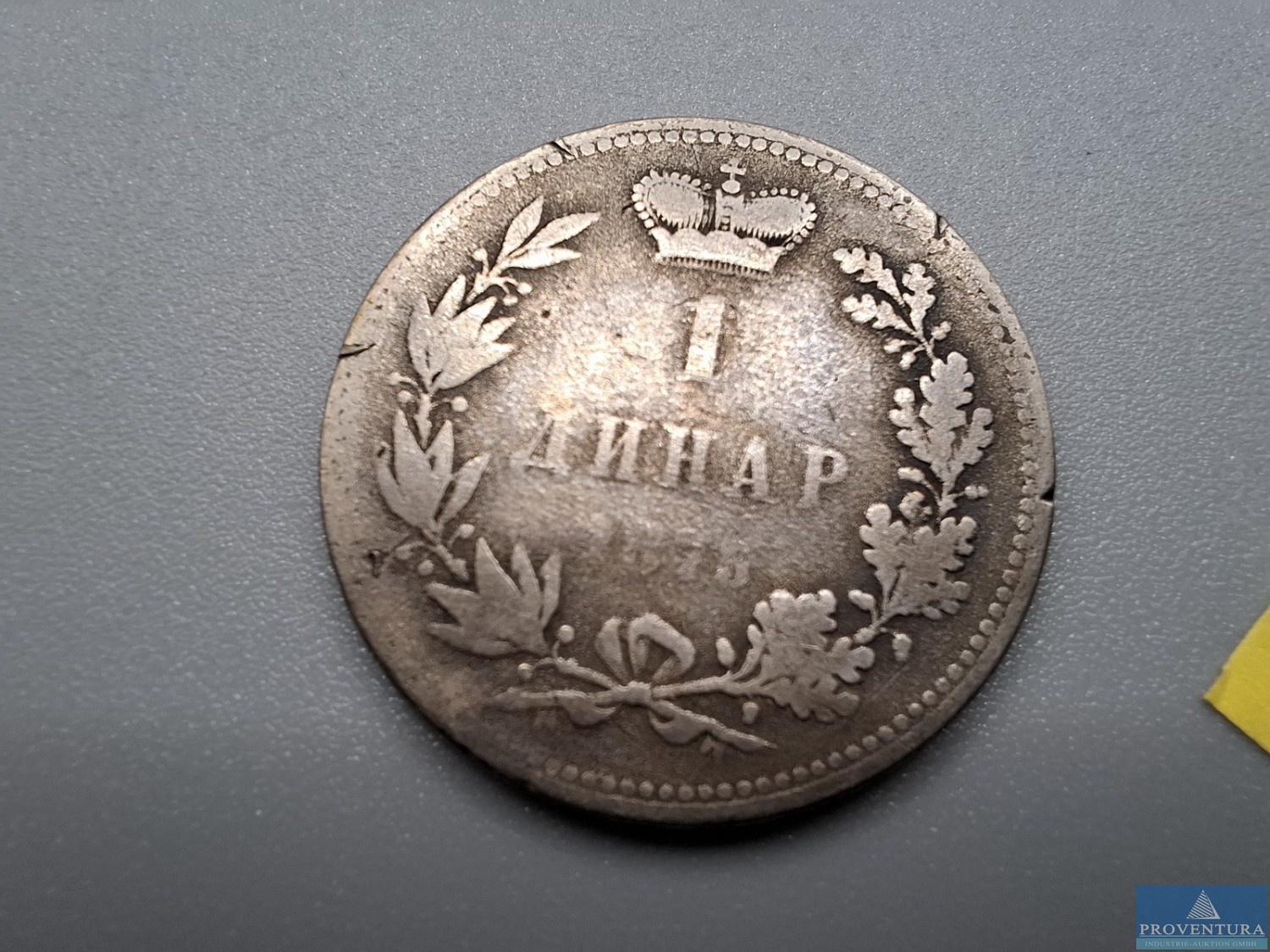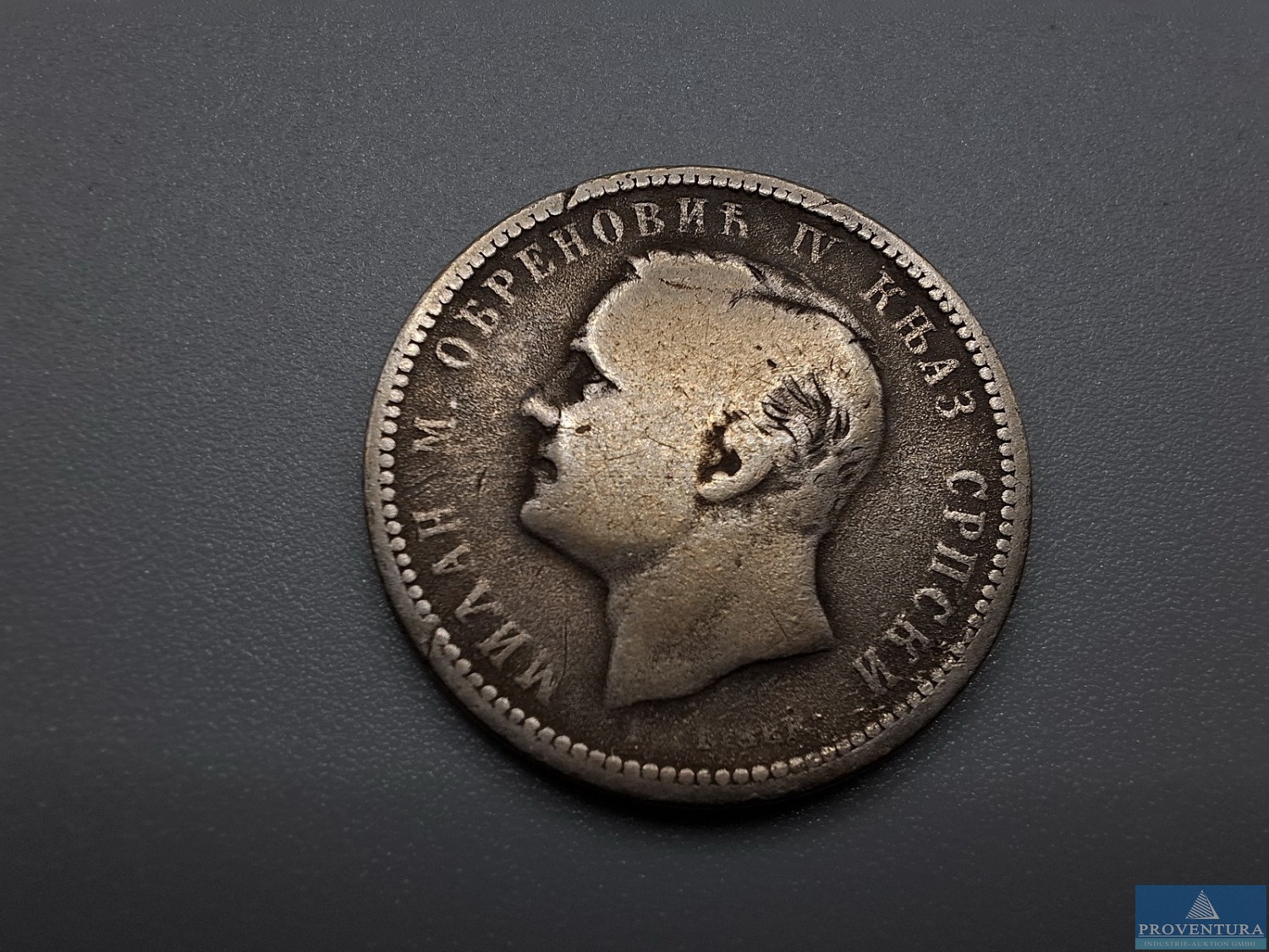 Серебряная монета Сербия 1 динар 1875 с Серебряная .835 5 гр, KM5