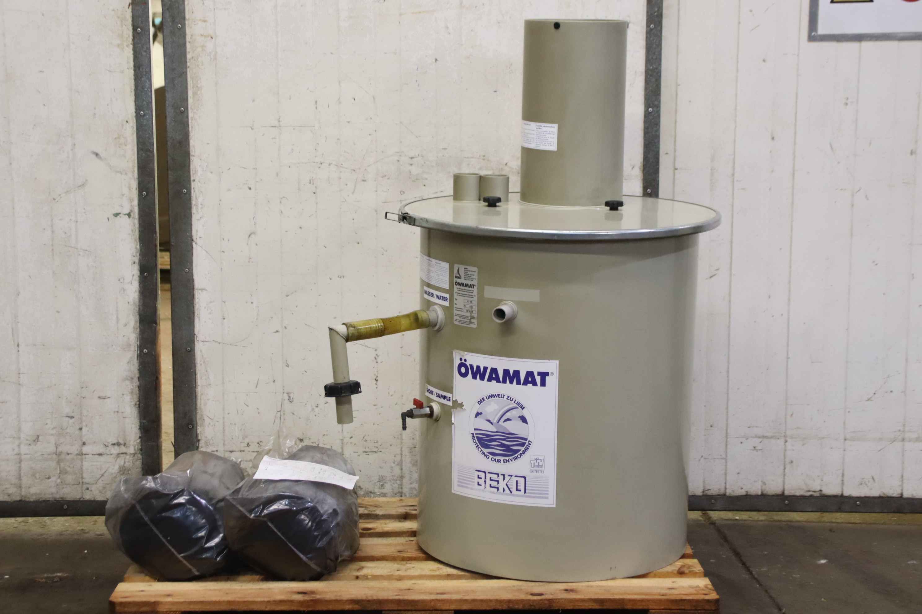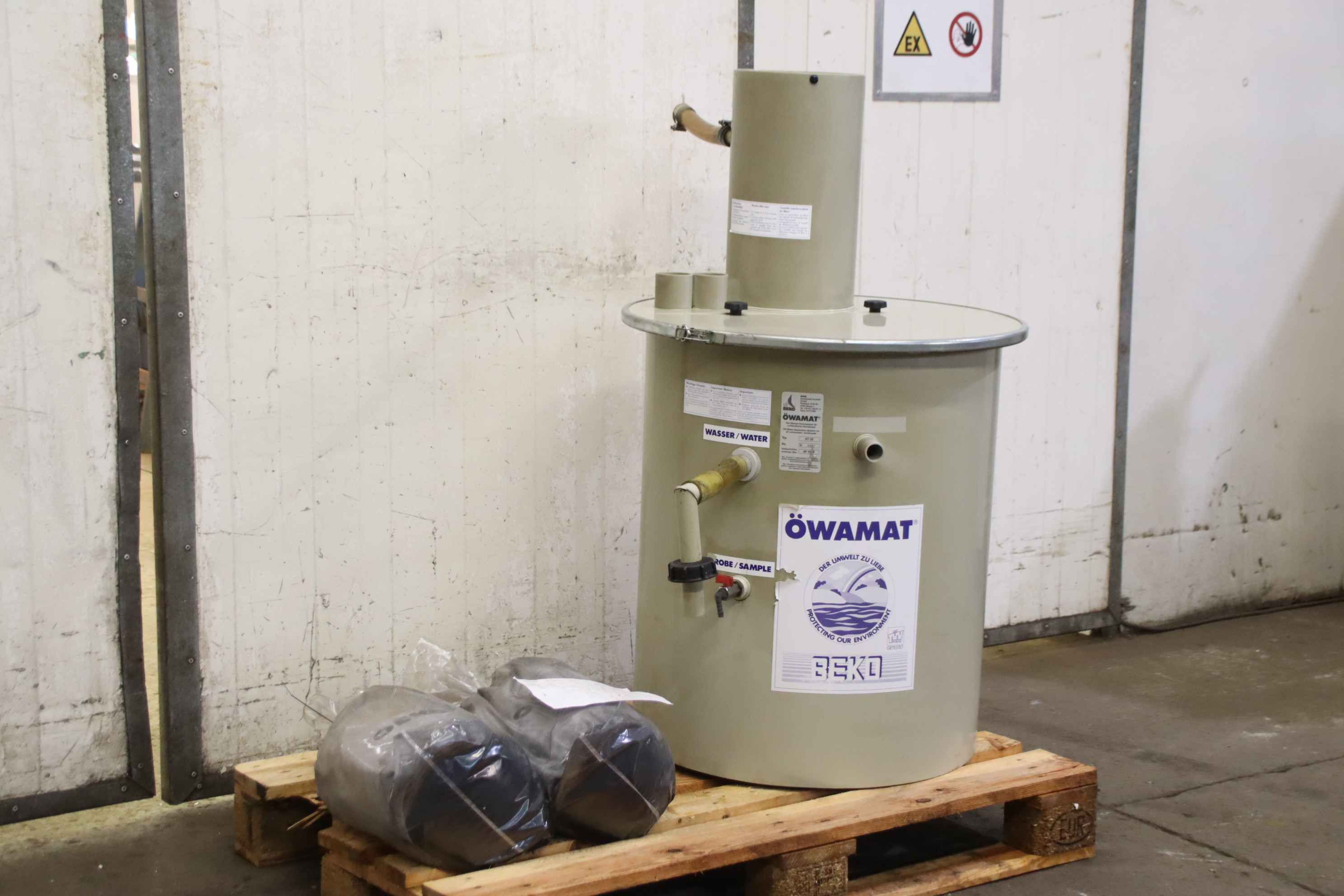 Oil-water separation system, condensate separator, oil and water separator, oil separator-Manufacturer:BEKO, oil-water separation system Oil and water separation device type Öwamat KT 05-Accessories: incl. Oekosorb replacement filter, see photos-Dimensions: Ø 680 x 1130 mm-Weight: 73 kg with pallet