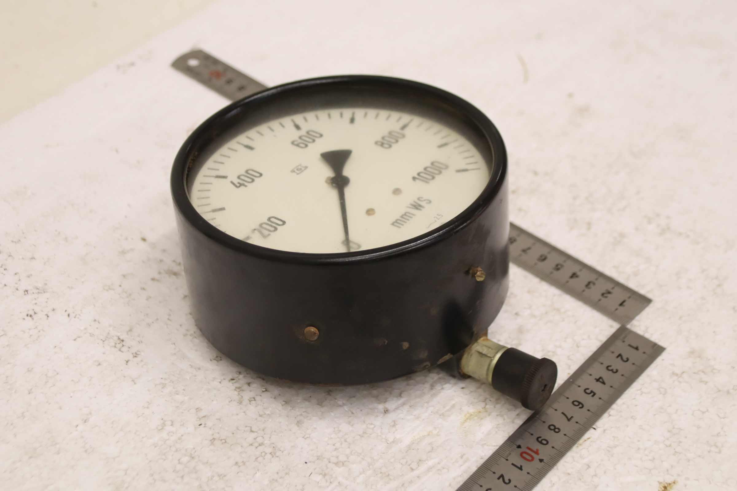 Manometer, test manometer, pressure gauge with Bourdon tube, pressure-temperature measuring technology, Bourdon tube manometer, pressure tester, pressure tester, barometer -Manufacturer: TGL, Manometer 0 - 0.1 bar, unused -Type: Ø 160 mm 0-1000 mmWs -Quantity: 1x pressure gauge available -Dimensions: 200/160/H100 mm -Weight: 2.7 kg/pc.