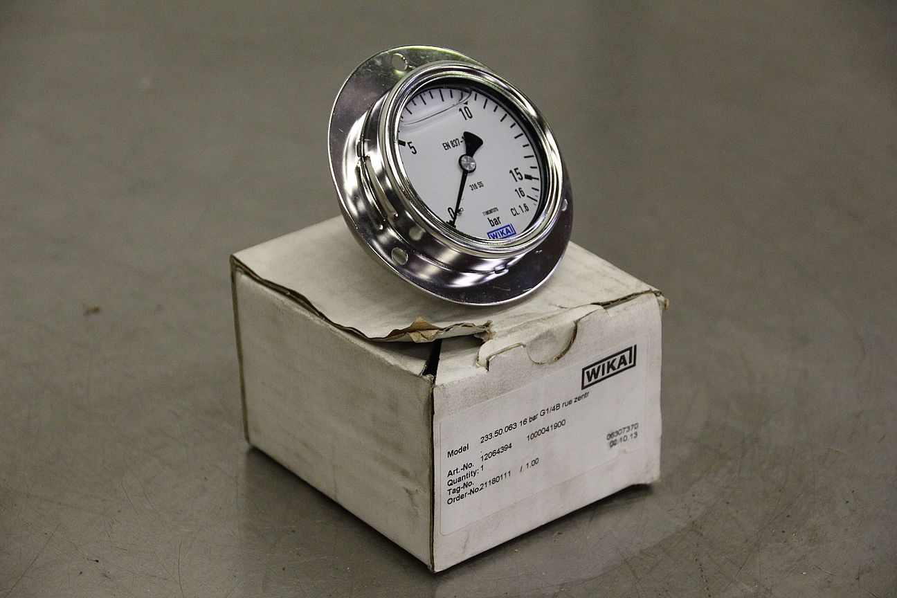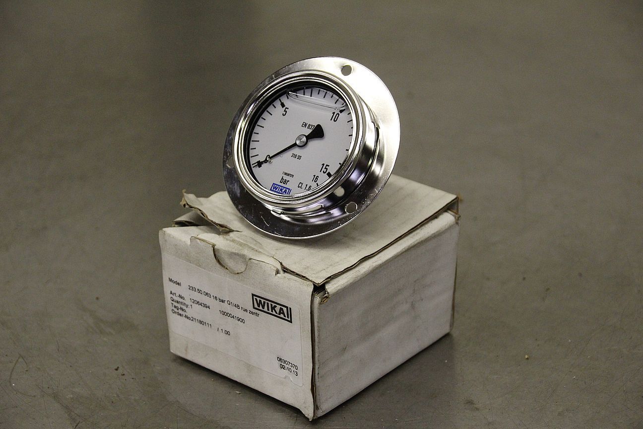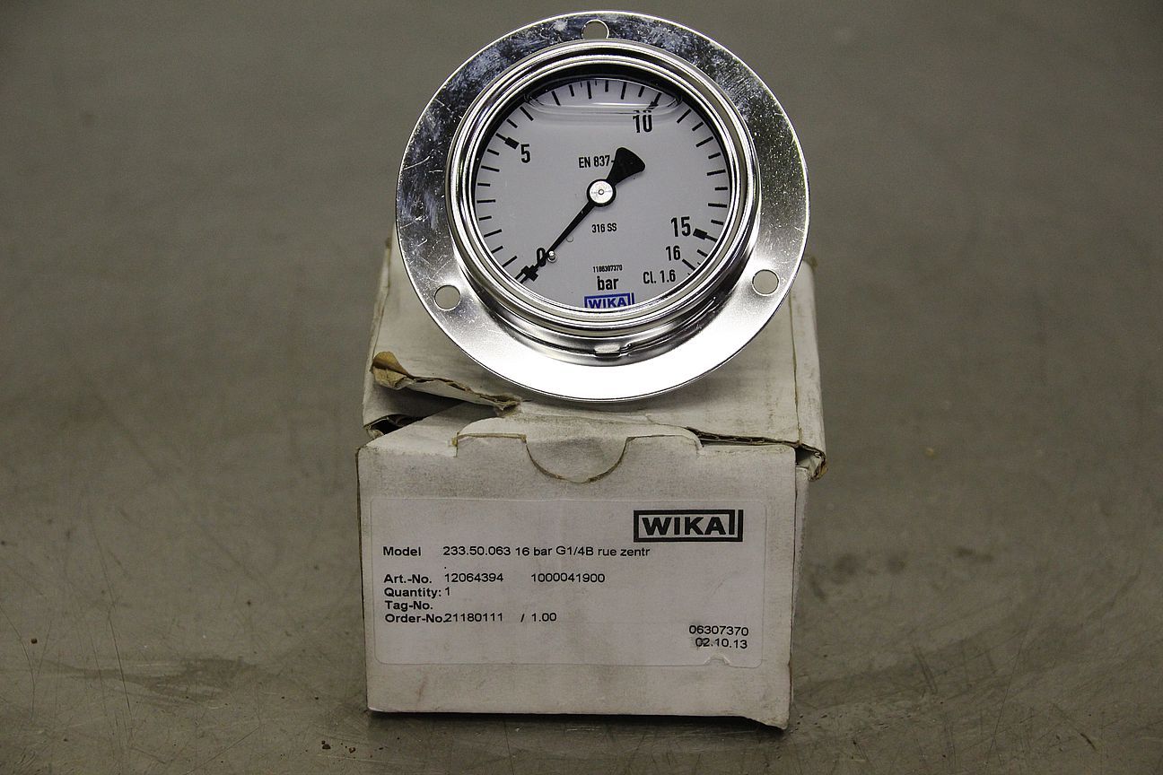 Manometer, test manometer, pressure measuring device with Bourdon tube, pressure-temperature measurement technology-Manufacturer: Wika, pressure gauge type 233.50.063 16 bar-Art.-No.: 12064394-Screw connection: G1/4B-Dimension box: 90/100/H70 mm-Weight: 0.3 kg