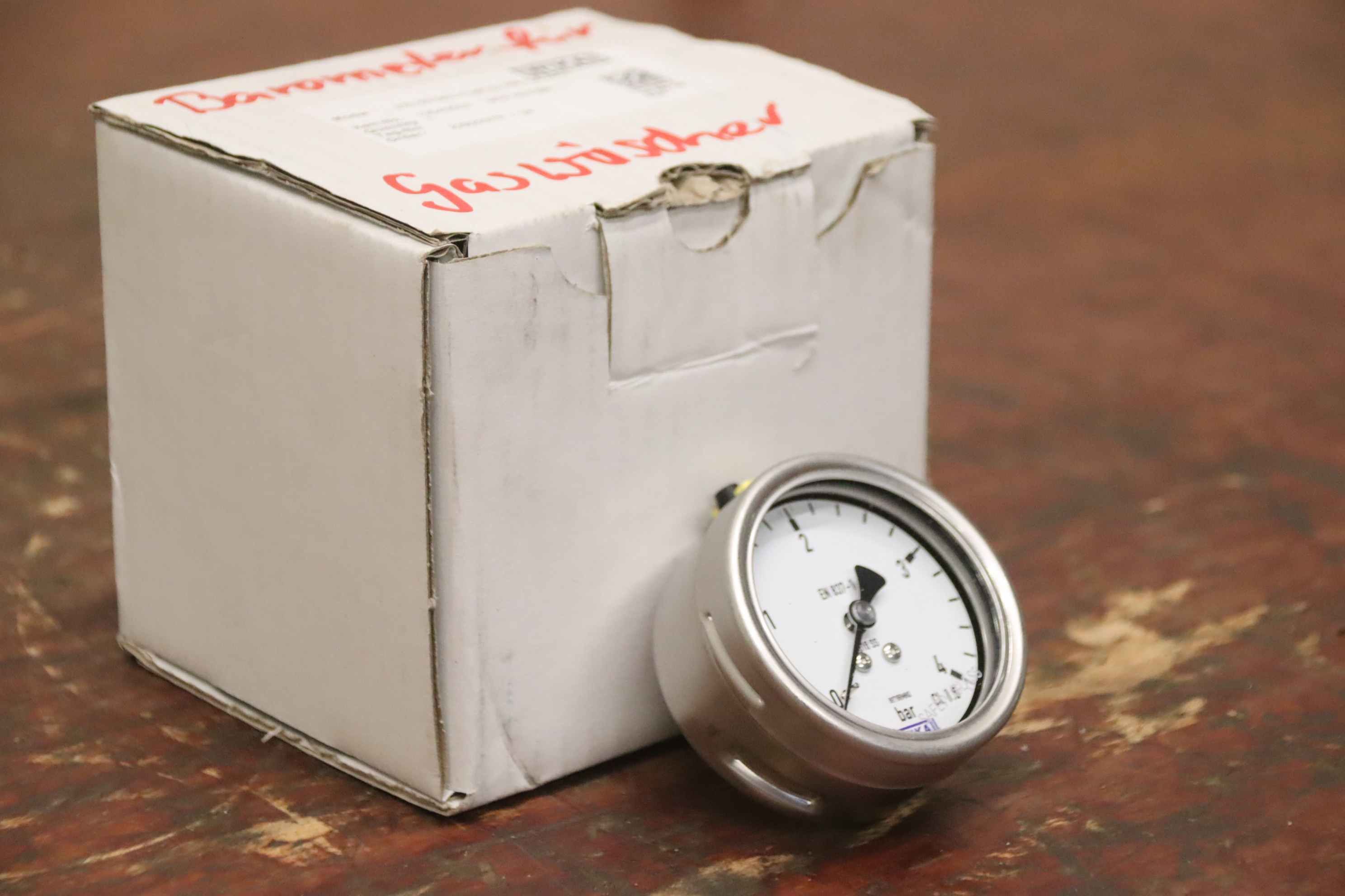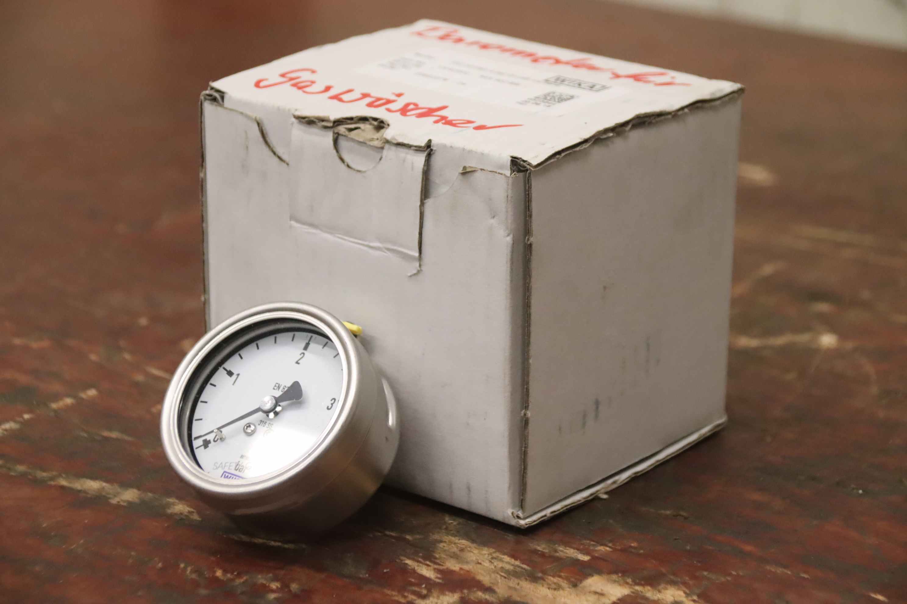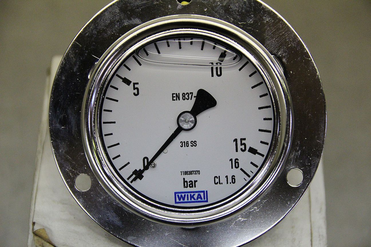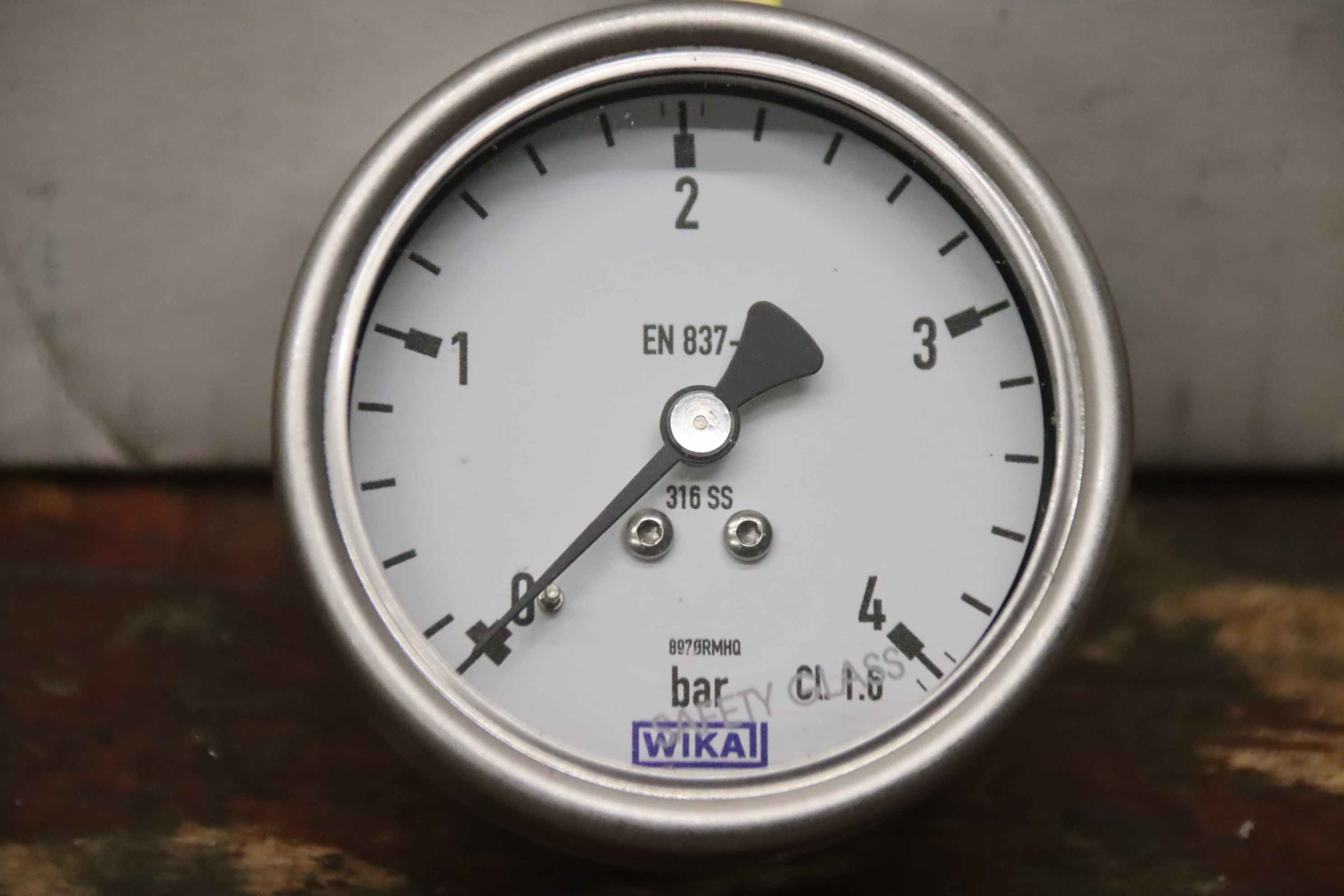 Manometer, test manometer, pressure gauge with Bourdon tube, pressure and temperature measurement technology-Manufacturer: Wika, capsule spring pressure gauge, unused original packaging-Type: 0 to 4 bar-Screw connection: see photos-Number: 9x manometer available-Price per piece-Dimension: 110/85/H110 mm-Weight: 0.8 kg/pcs