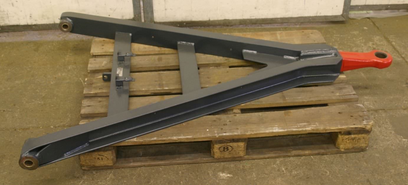 Drawbar, drawbar, truck trailer -Max. Load: 55,000 kg -Bearing: 98 mm -Inner dimensions bearing: 882 mm -Drawbar length: 1600 mm -Eye: Ø 49 mm -Drawing with the pictures -Transport dimensions: 1100/1600/H260 mm -Own weight: 86 kg