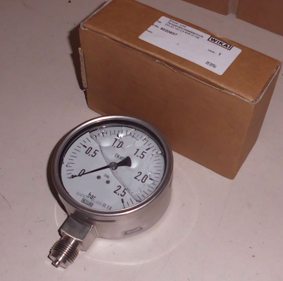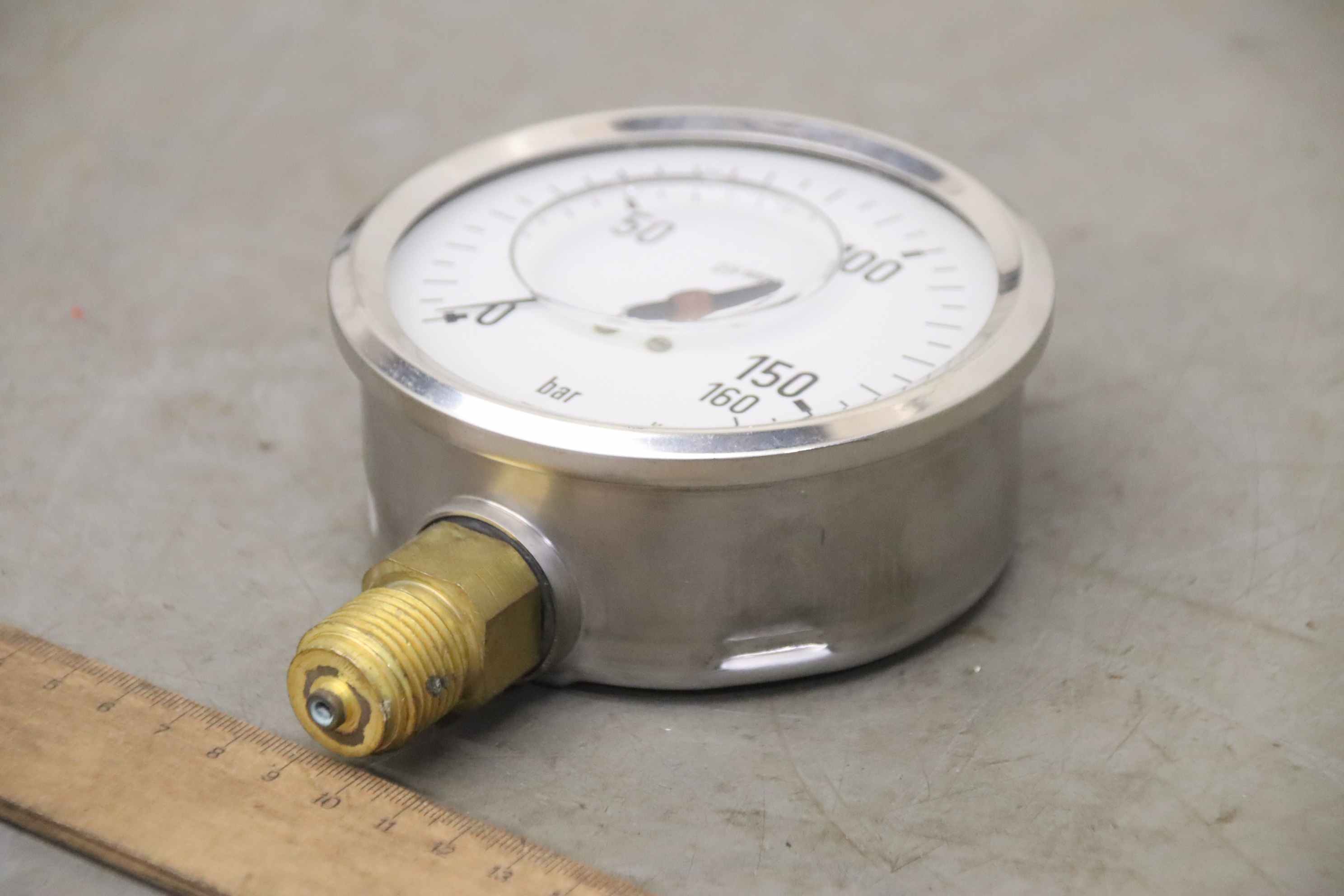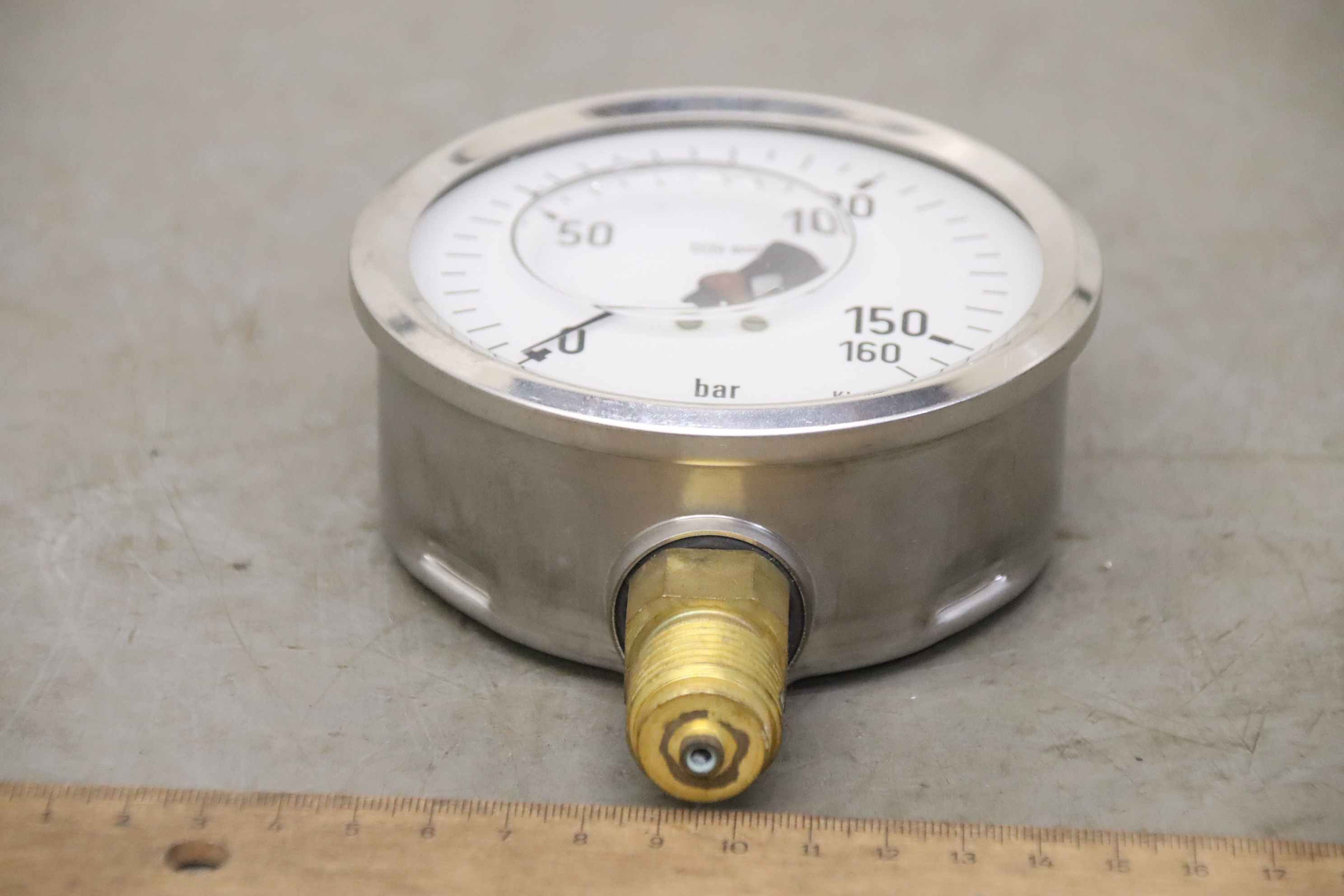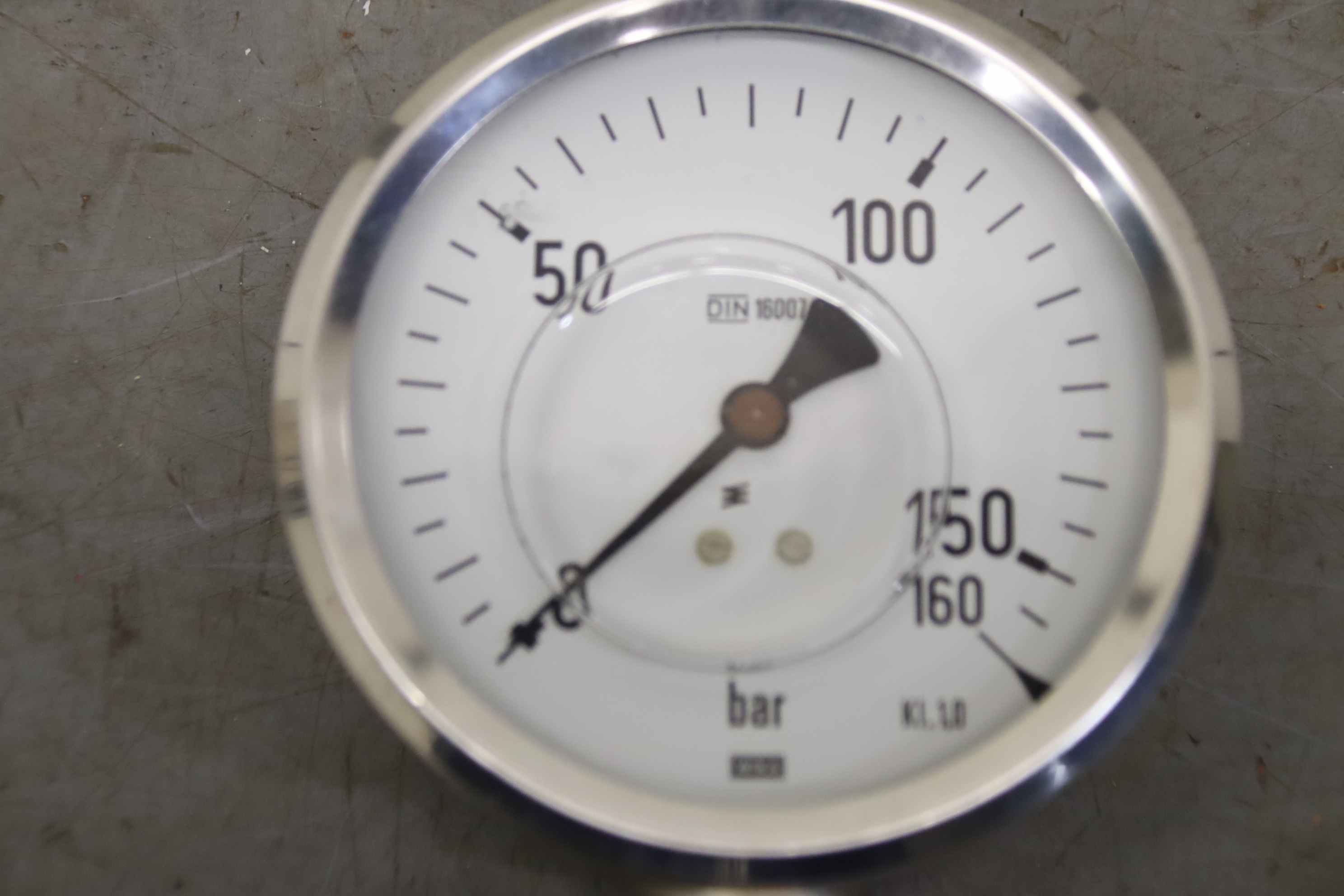Manometer, test manometer, pressure gauge with Bourdon tube, pressure and temperature measurement technology-Manufacturer: Wika, pressure gauge-Type: 0 to 160 bar-Screw connection: see photos-Dimension: 105/45/H145 mm-Weight: 0.8 kg