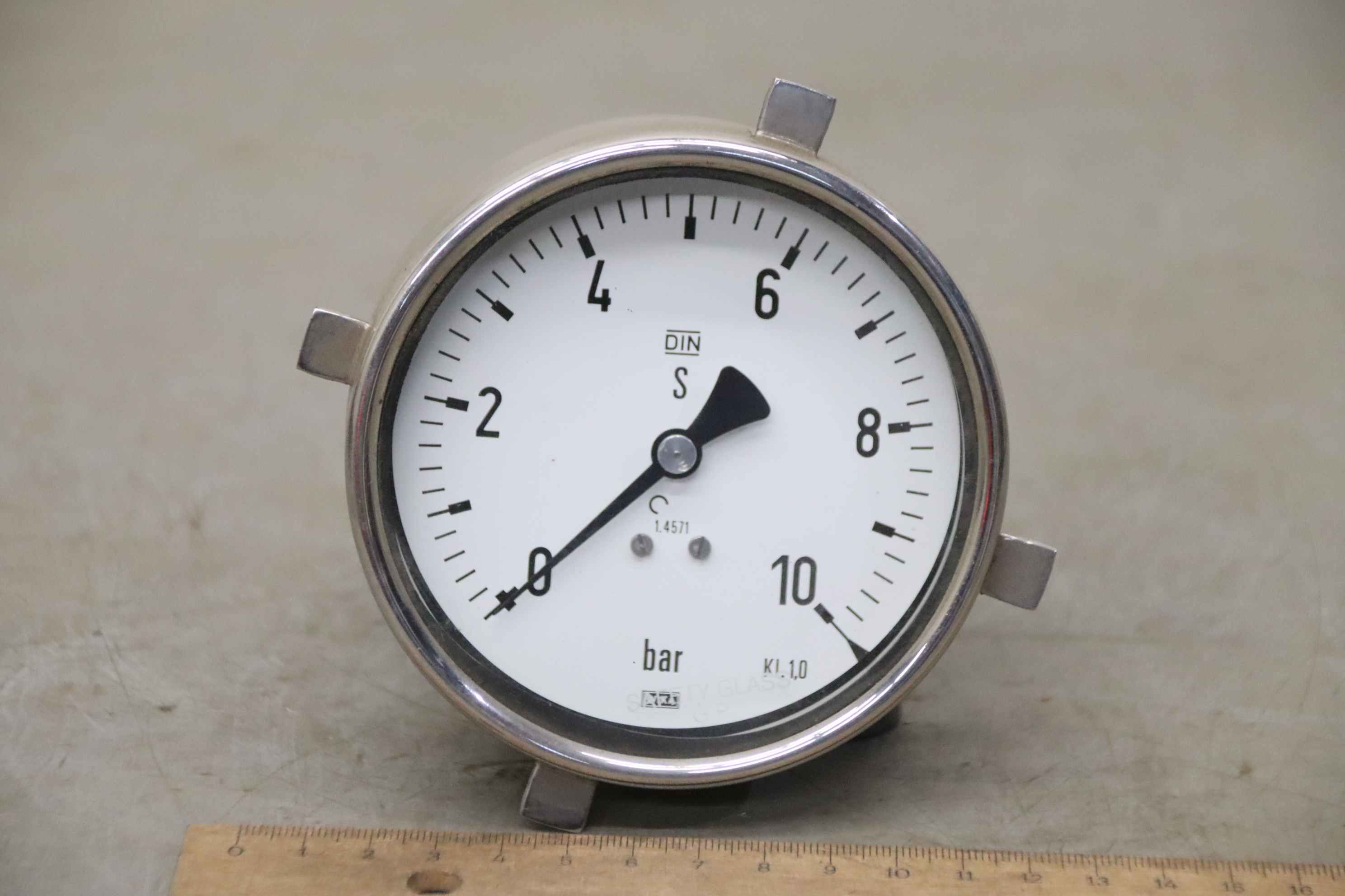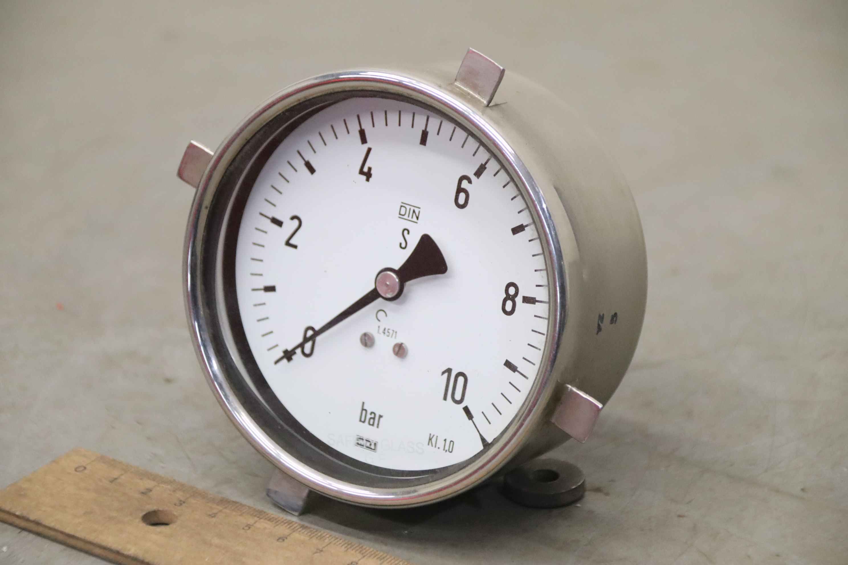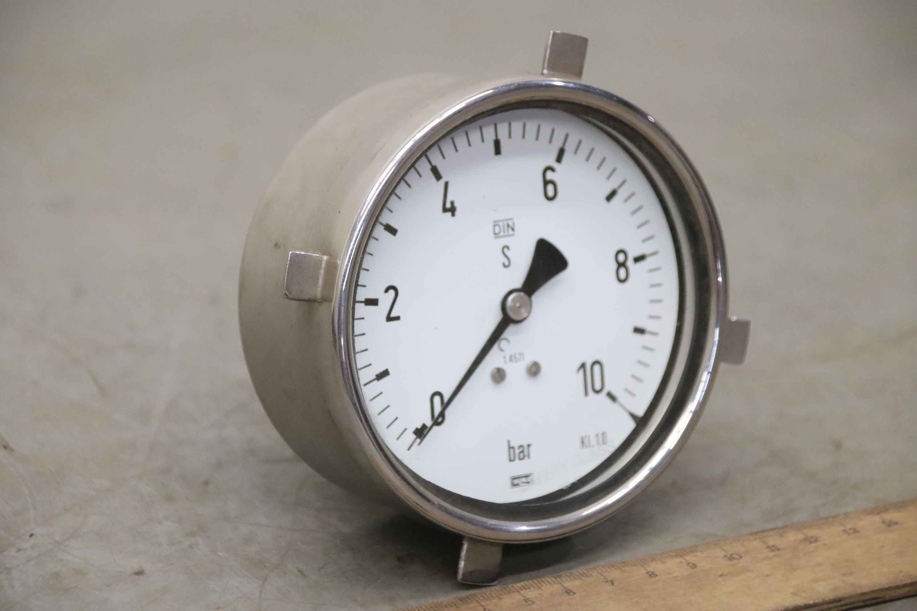 Manometer, test manometer, pressure gauge with Bourdon tube, pressure and temperature measurement technology-Manufacturer: Wika, manometer-Type: 0 to 10 bar-Screw connection: see photos-Dimension: 100/85/H100 mm-Weight: 0.5 kg