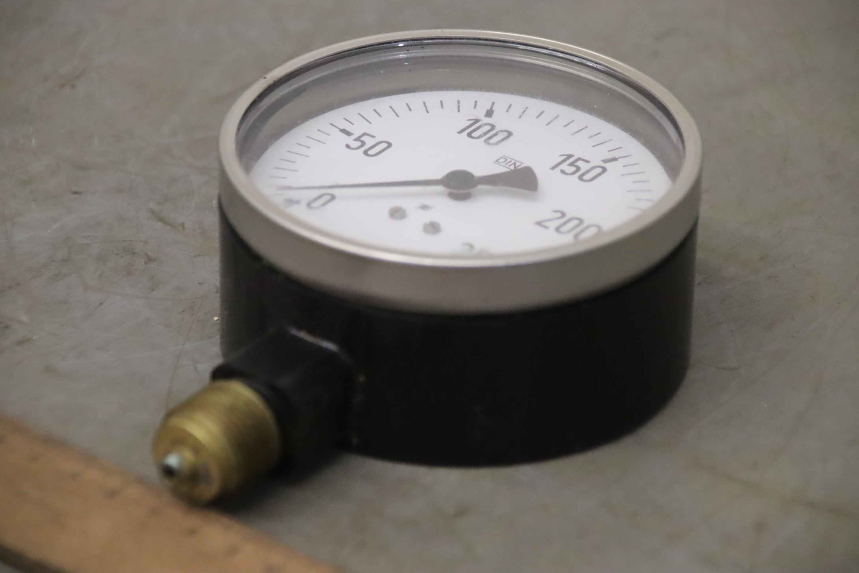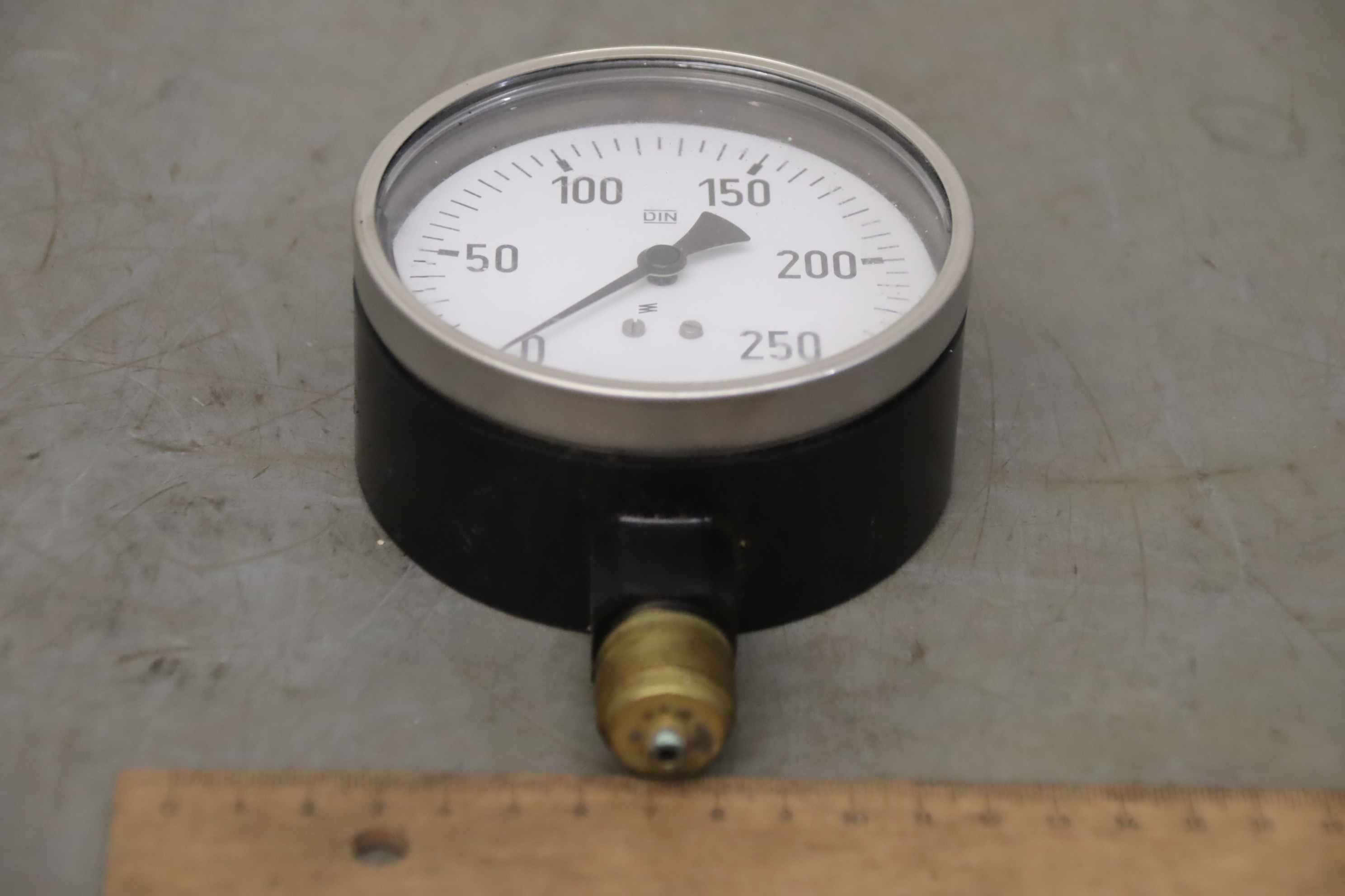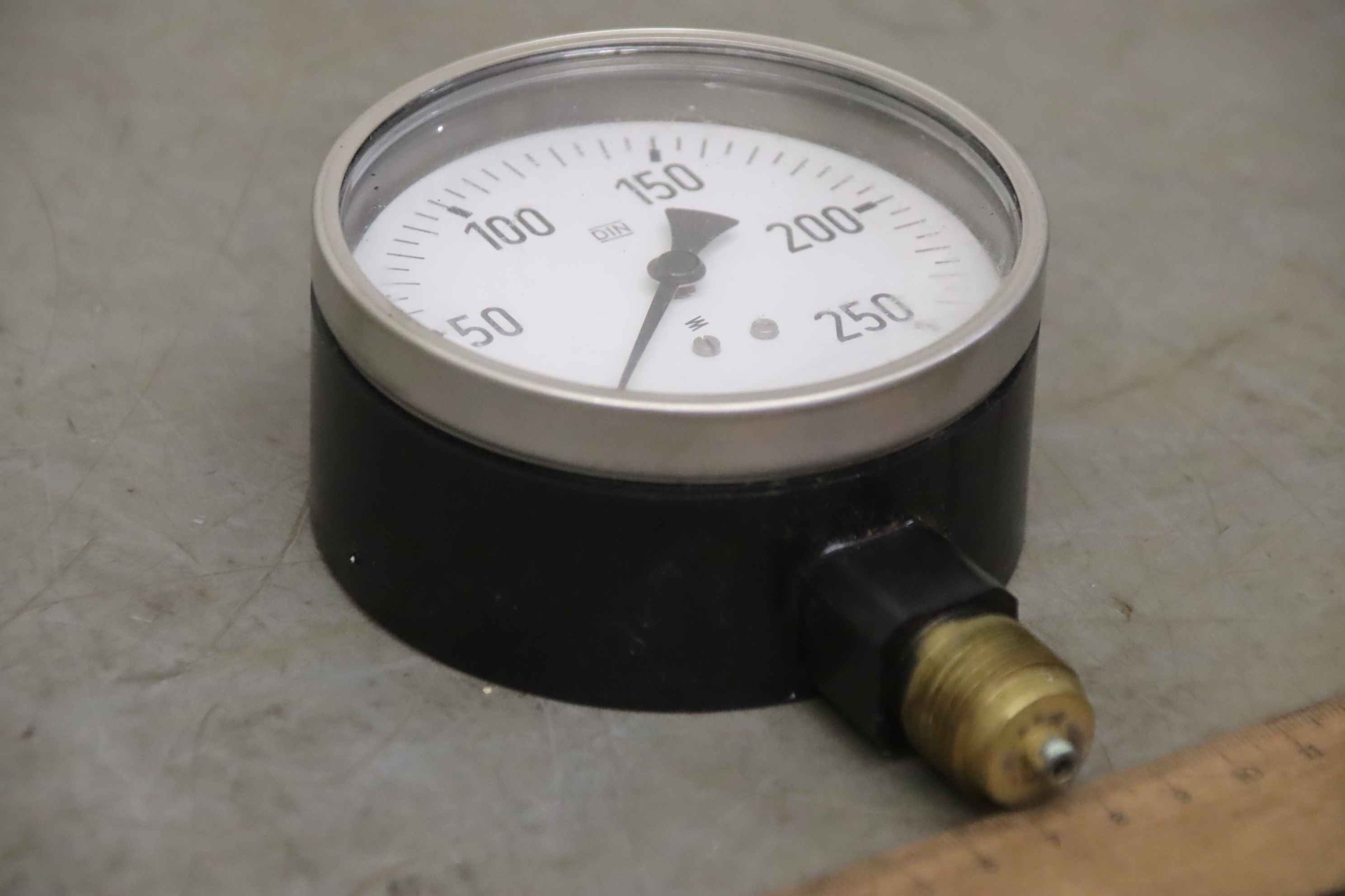 Manometer, test manometer, pressure gauge with Bourdon tube, pressure and temperature measurement technology-Manufacturer: Wika, pressure gauge-Type: 0 to 250 bar-Screw connection: see photos-Number: 2x manometer available-Price per piece-Dimension: 100/85/H100 mm-Weight: 0.9 kg/pcs