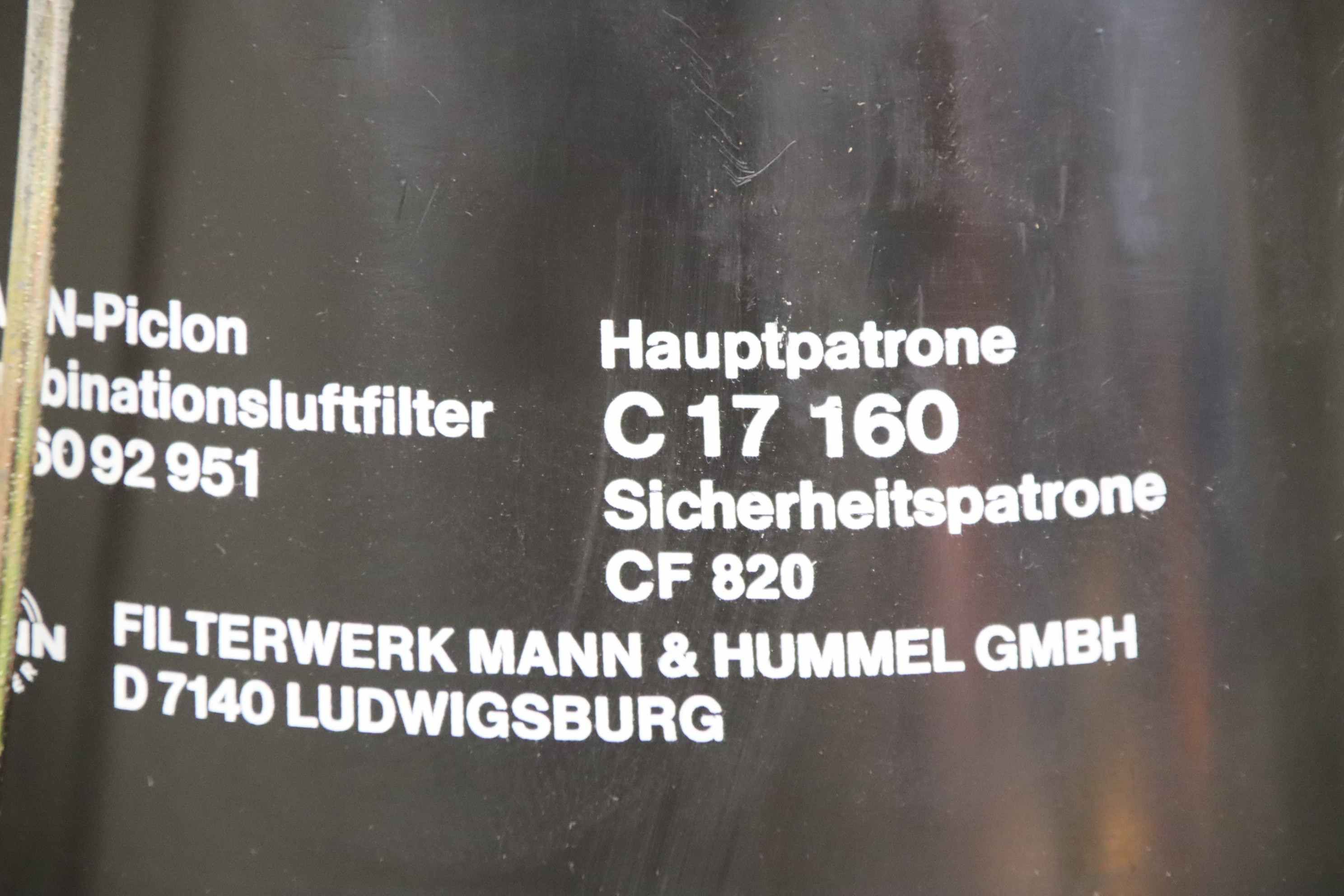 Compressed air filter, fine filter, filter, pre-filter, intake air filter, air filter housing, air filter -Manufacturer: Mann & Hummel, Mann-Piclon combination air filter, air filter housing -Part Number: 45 160 92 951 -Inlet/Outlet: Ø 68/71 mm -Quantity: 22 combination air filters available -Price: per piece -Dimensions: 300/225/H305 mm -Weight: 2.5 kg/pc.