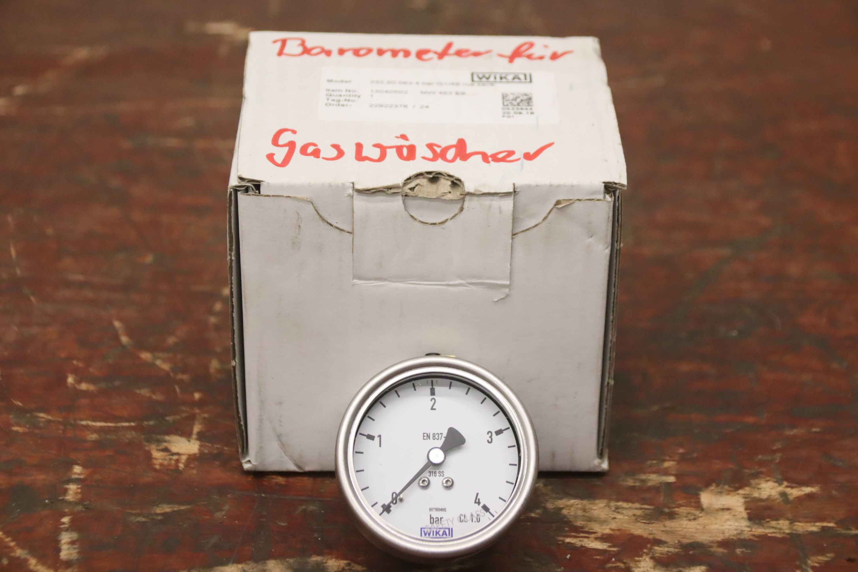 Manometer, test manometer, Bourdon tube pressure gauge, Bourdon tube manometer-Manufacturer: Wika, Bourdon tube pressure gauge, unused OVP-Type: 232.50.063 4 bar G1/4B rue zentr.-Screw connection: see photos-Number: 1x pressure gauge available-Dimensions box: 120/115/H115 mm-Weight: 0.2 kg