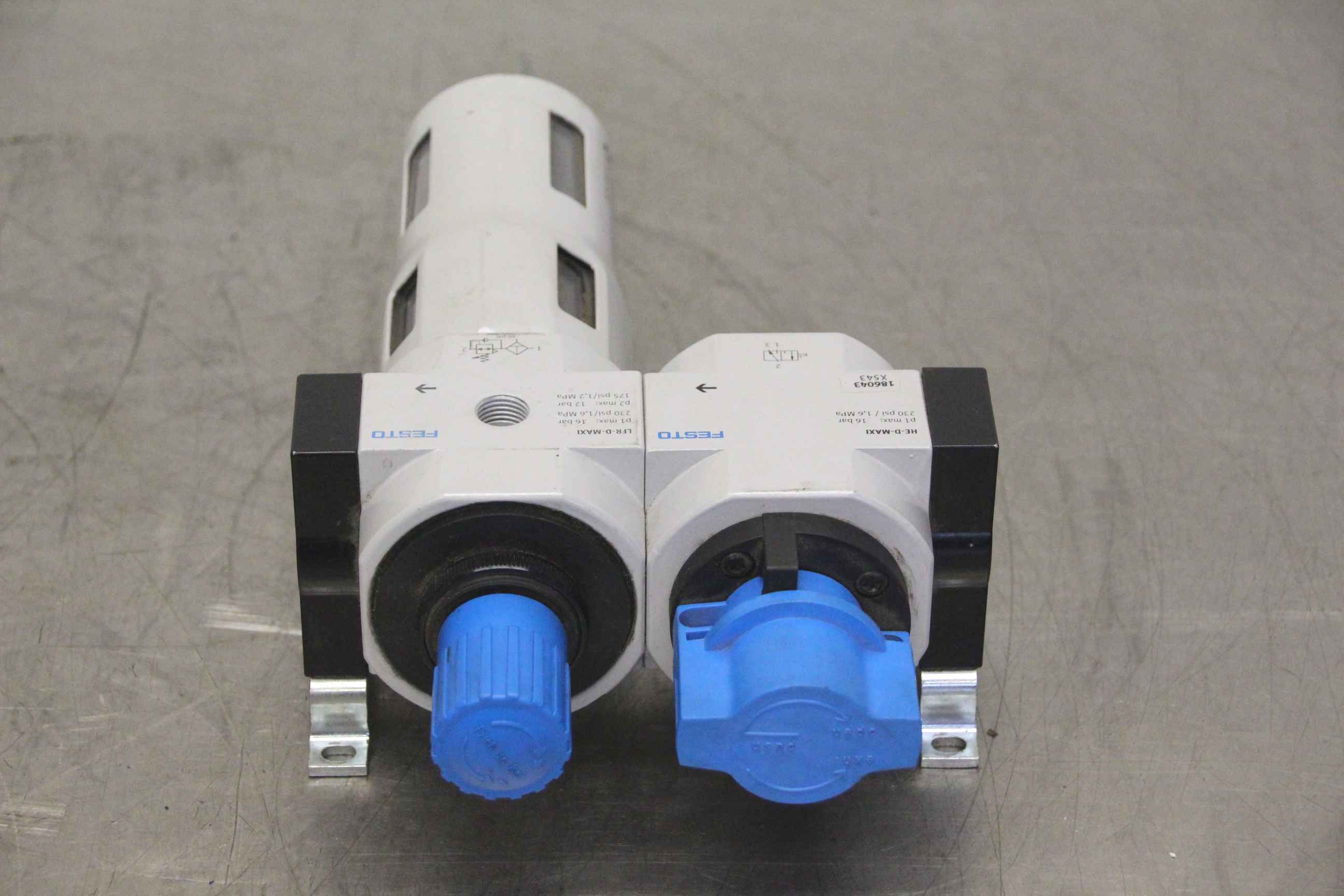 Filter control valve, on-off valve, maintenance unit, water separator, filter bowl, pneumatic filter, filter regulator, service unit combination, filter control valve-Maintenance unit: with stable bracket-Outputs: 2x individually lockable-Pressure: Max. 10 bar / 150 PSI-Dimension: 390/325/H520 mm-Weight: 16 kg