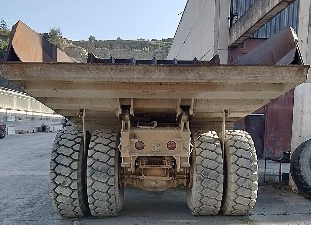 Двигатель: Klockner Humboldt Deutz F12L413F, мощность: 282 кВт, крутящий момент: 1227 Нм, цилиндры: 12, рабочий объём: 19144 см³. Скорость: 55 км/ч, колёса: 6, пропускная способность в покраске/куче: 15,3 м³/21,1 м³. Вес без нагрузки: примерно 23000 кг, полезная нагрузка: 32000 кг, общий вес: примерно 55000 кг, размеры машины X/Y/Z: примерно 7750 мм/3650 мм/3600 мм, рабочие часы: 10990 ч. Самосвал получил новые шины от Bridgestone в 2019 году. Доступна документация. Осмотр на месте возможен.