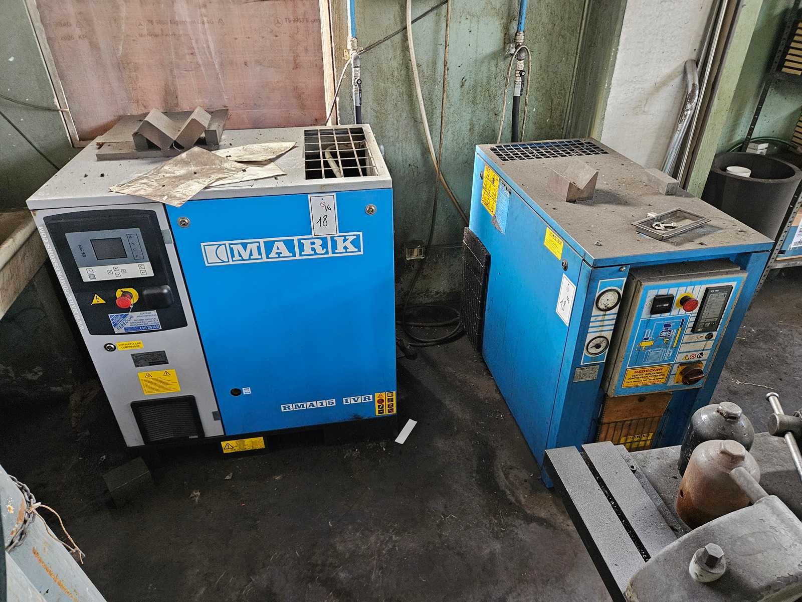 A deposit of €200.00 is required in order to bid on this lot. To receive the bank details necessary for the transfer, please contact the auction representative at alessandro.icardi@surplex.com. 1x MARK RMA15 compressor (2017) Power 3kw 49745 working hours 1x MARK 7122 MK 98 compressor (1999) Power 7.5 kw 16040 working hours 1x MARK MDX 410P dryer (2008) R404A refrigerant Quantity 0!73 kg 1x compressed air tank TER-MEC CORDIVARI RC 07 (2007) Capacity 710 liters Note: The functionality of the goods has not been verified. They are sold in their existing state, without warranty of operation. Auction-ID: A7-43861-18