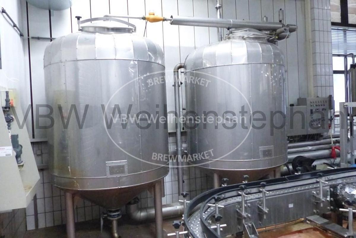Вертикальные, охлаждаемые баки из нержавеющей стали с различными фитингами. Дополнительное название: резервуары из нержавеющей стали с регулированием температуры, общая вместимость (брутто): 90400 л, материал: нержавеющая сталь, характеристики: 3 ферментирующих бака (1 x 554 гл, 2 x 175 гл), 1 дрожжевый бак (37 гл), собственный контроль температуры (Nerb)