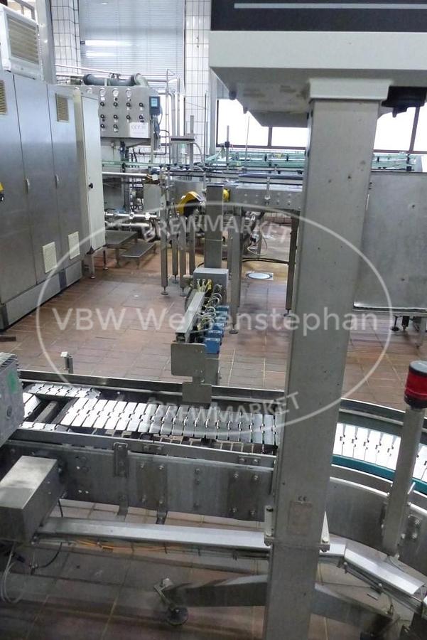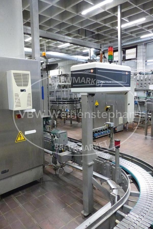 Glass bottle filling line for beer and non-alcoholic beverages for filling 9000 bph. Includes: - De-capper: JOHA type Smaragt, built in 1990, with one unscrewing head - Bottle unpacker: JOHA type E100, built in 1978, with one packing head - Crate washer: JOHA type KA2N, built in 1983 - Bottle washer Pirzer, built in 1983, with 19 bottle racks per row - Empty bottle inspector: Inex type Optiscan 4s - Bottle filler and capper: Krones type 28/7, built in 1975, with 28 filling valves and 7 capping stations - Capper: Adelski, with 4 capping stations - Labelling machine: Pirzer, built in 1979, for belly and neck labels, with 8 labelling stations - Bottle packer: JOHA type A400 Q, built in 1977, with one packing head, Additional title: Years of manufacture: 1975 - 1990, Capacity: 9000 bottles/h, Formats: 0,5 l Euro bottle; crown cap; screw cap; 20x0,5 l beverage crate, Features: De-capper; de-c ...