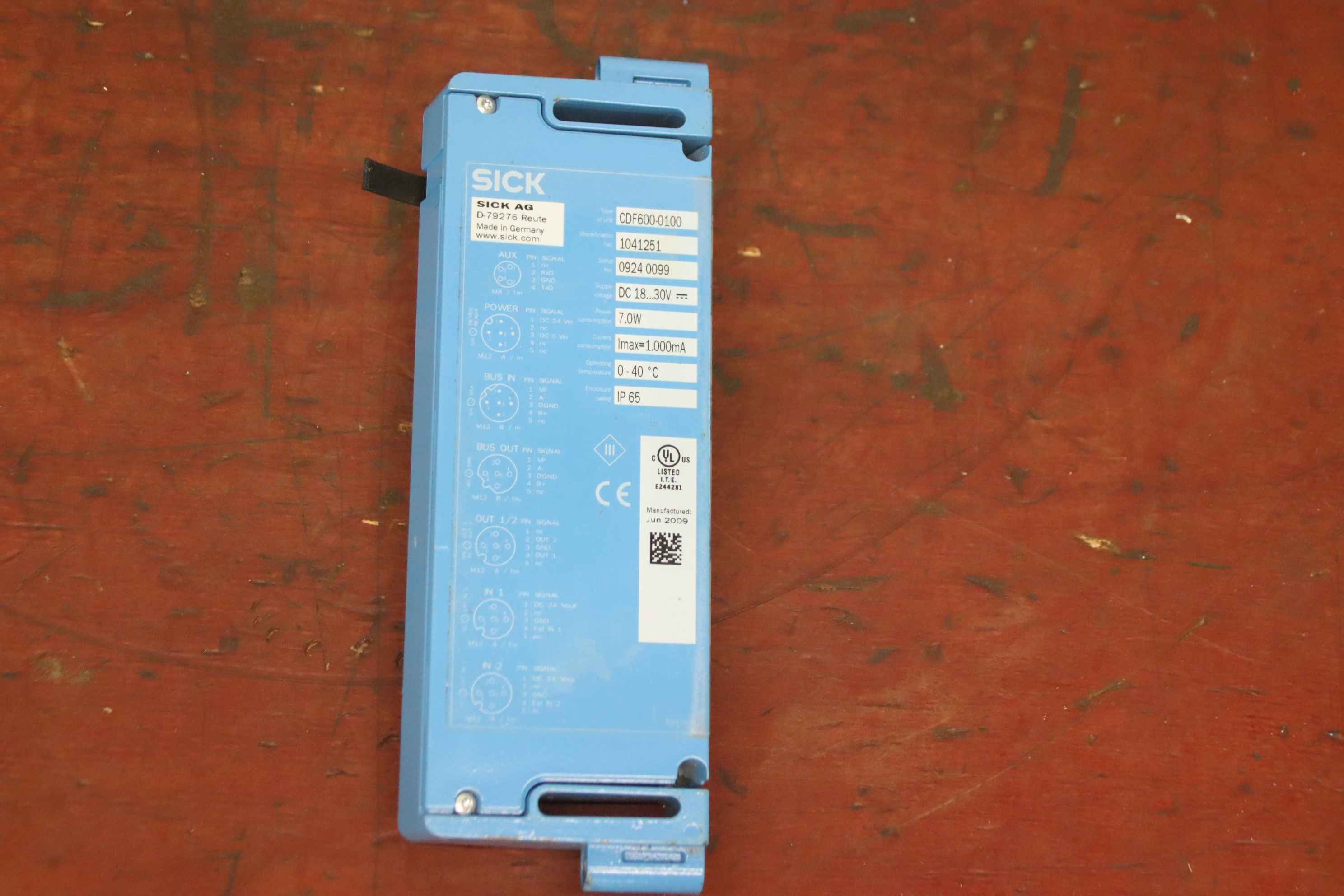Profibus single module, Profibus single module for PLC control, fieldbus, PROFIBUS, input module, Connection Device Fieldbus-Manufacturer: Sick, fieldbus module for Profibus-Type: CDF600.0100-Article number: 1041251-Number: 44x modules available-Dimensions: 225/75/H50 mm-Weight: 0.6 kg/piece