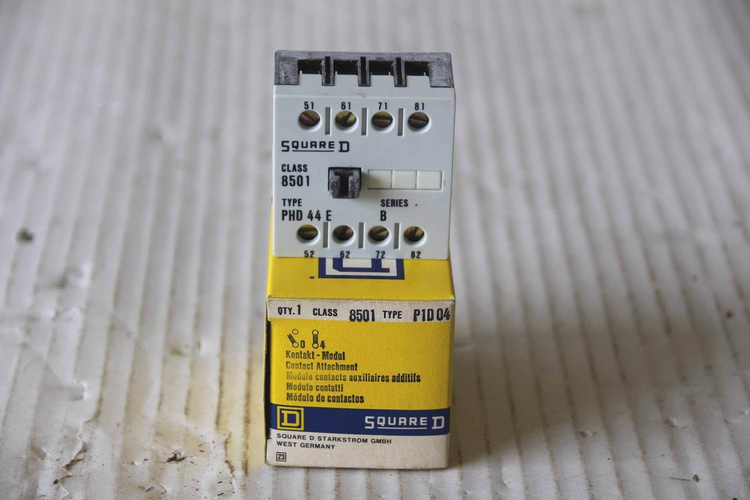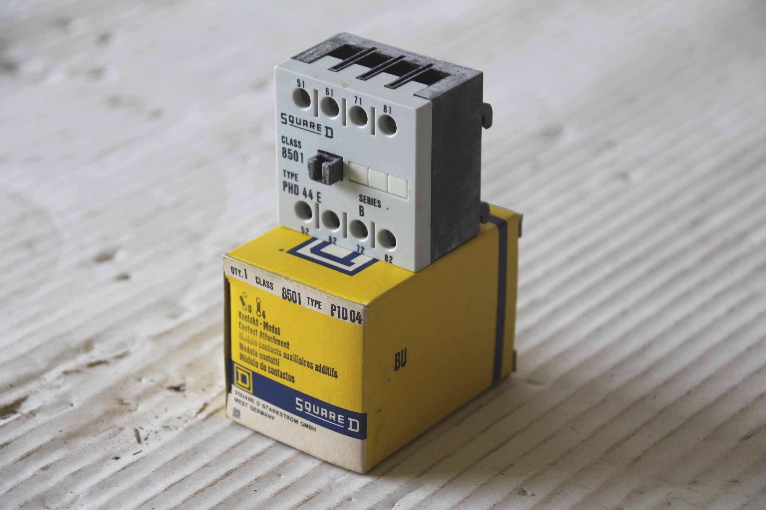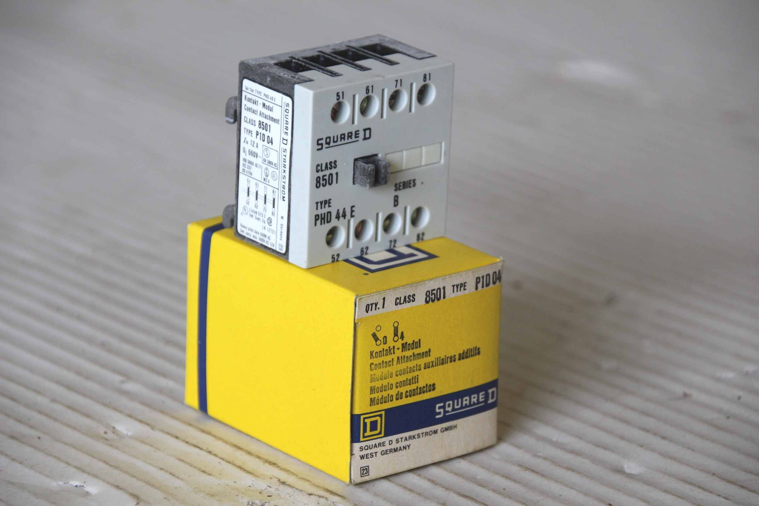 Contactor, semiconductor contactor, contactor, power contactor-Square D contact module: PHD 44 E-Socket Class 8501 Type: P 1D 04-Price: per piece-Number: 40 pieces-Dimensions: 49/47/H68 mm-Weight: 0.1 kg/piece