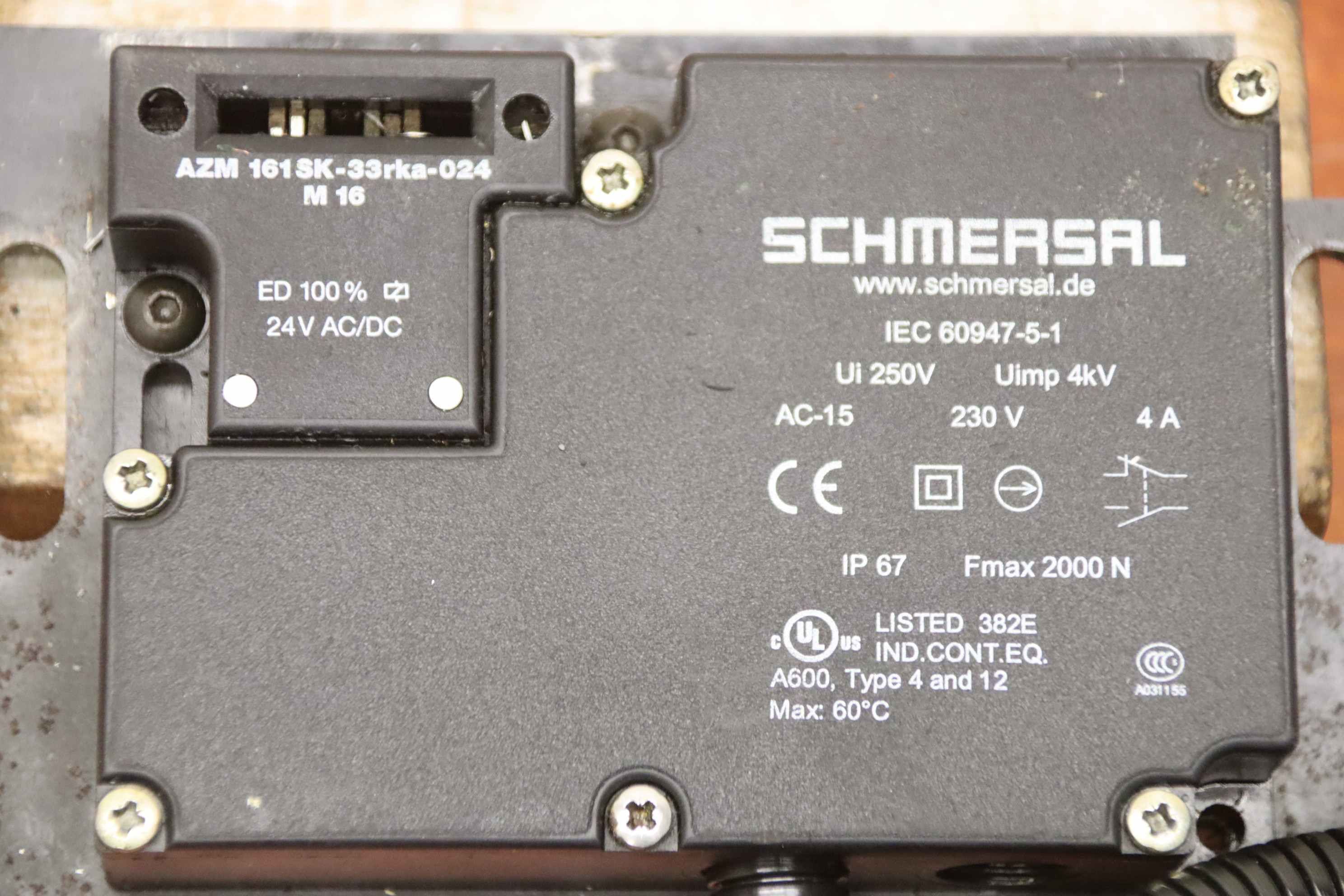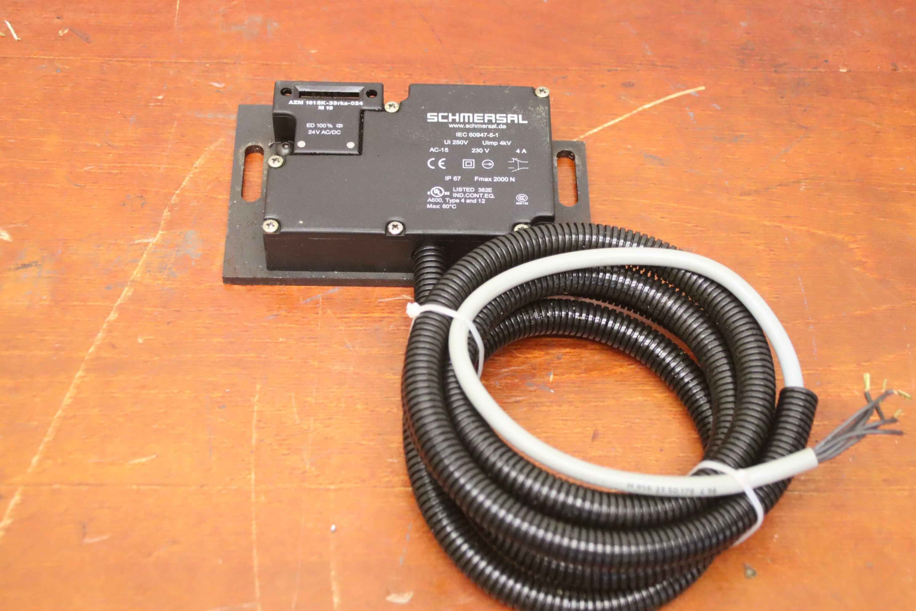 Safety switch, safety switch, protective grille switch, limit switch, button, safety switch, position switch, magnetic locking switch, safety locking switch-Manufacturer: Schmersal, safety locking device made from CNC milling machine Mikron UME 600-Type: AZM 161SK-33rka-024 IEC 60947-5-1-Technical data: see photo of nameplate-Transport dimensions: 270/260/H60 mm-Weight: 1.5 kg