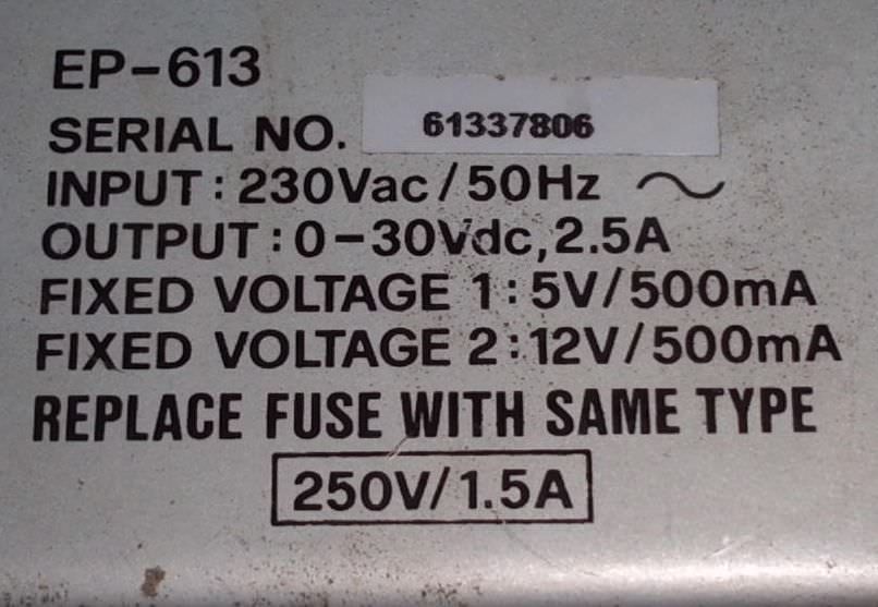 Laboratory power supply, power supply, voltage generator, laboratory power supply -Input: 230 volts AC -Output: 0-30 volts DC -Dimensions: 150/240/H130 mm -Weight: 4.5 kg