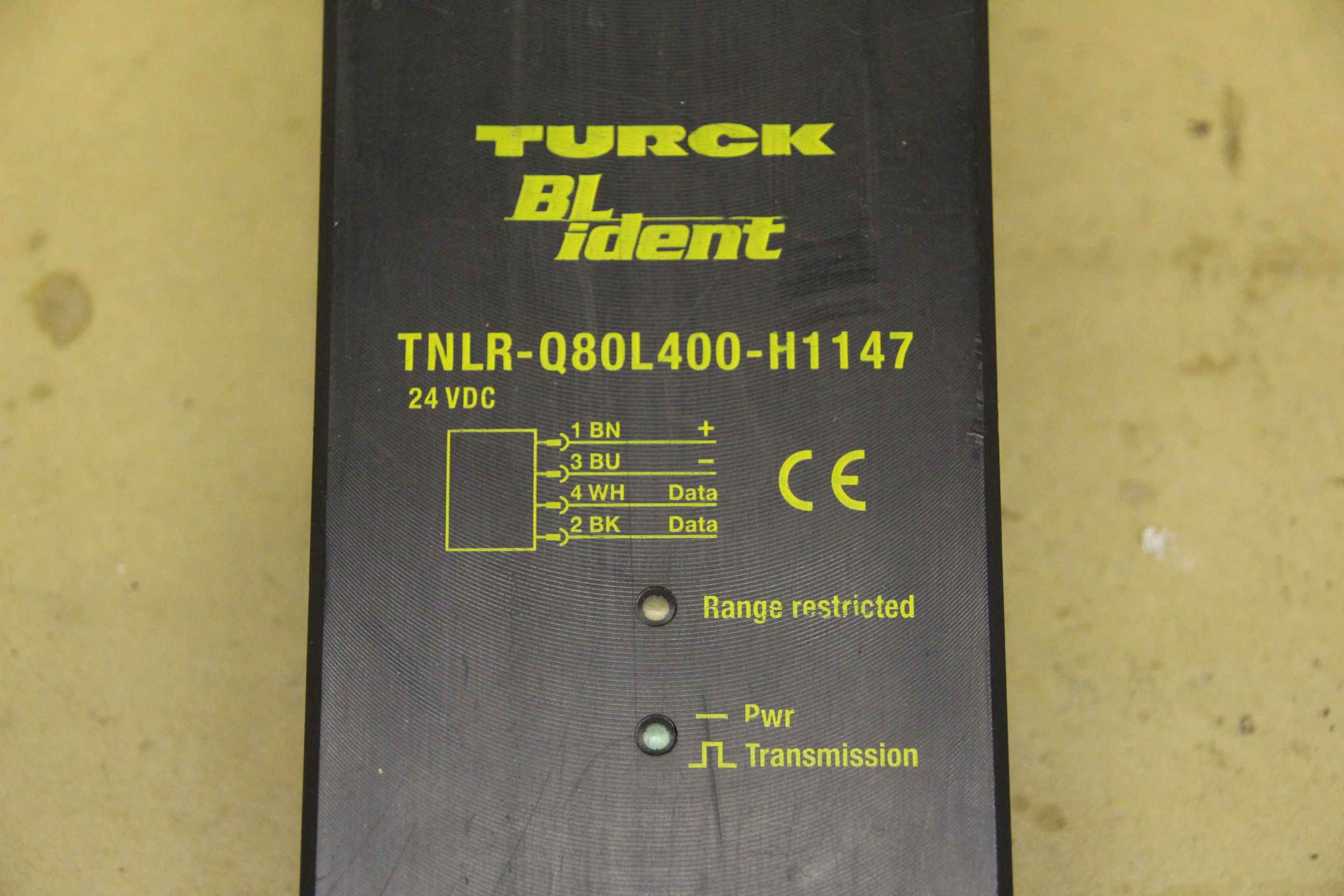 Sensor, write head, read head, read/write head -Manufacturer: Turck Blident, read/write head -Type: TNLR-Q80L400-H1147 -Voltage: 24 VDC -Dimensions: 415/80/H25 mm -Weight: 1.1 kg