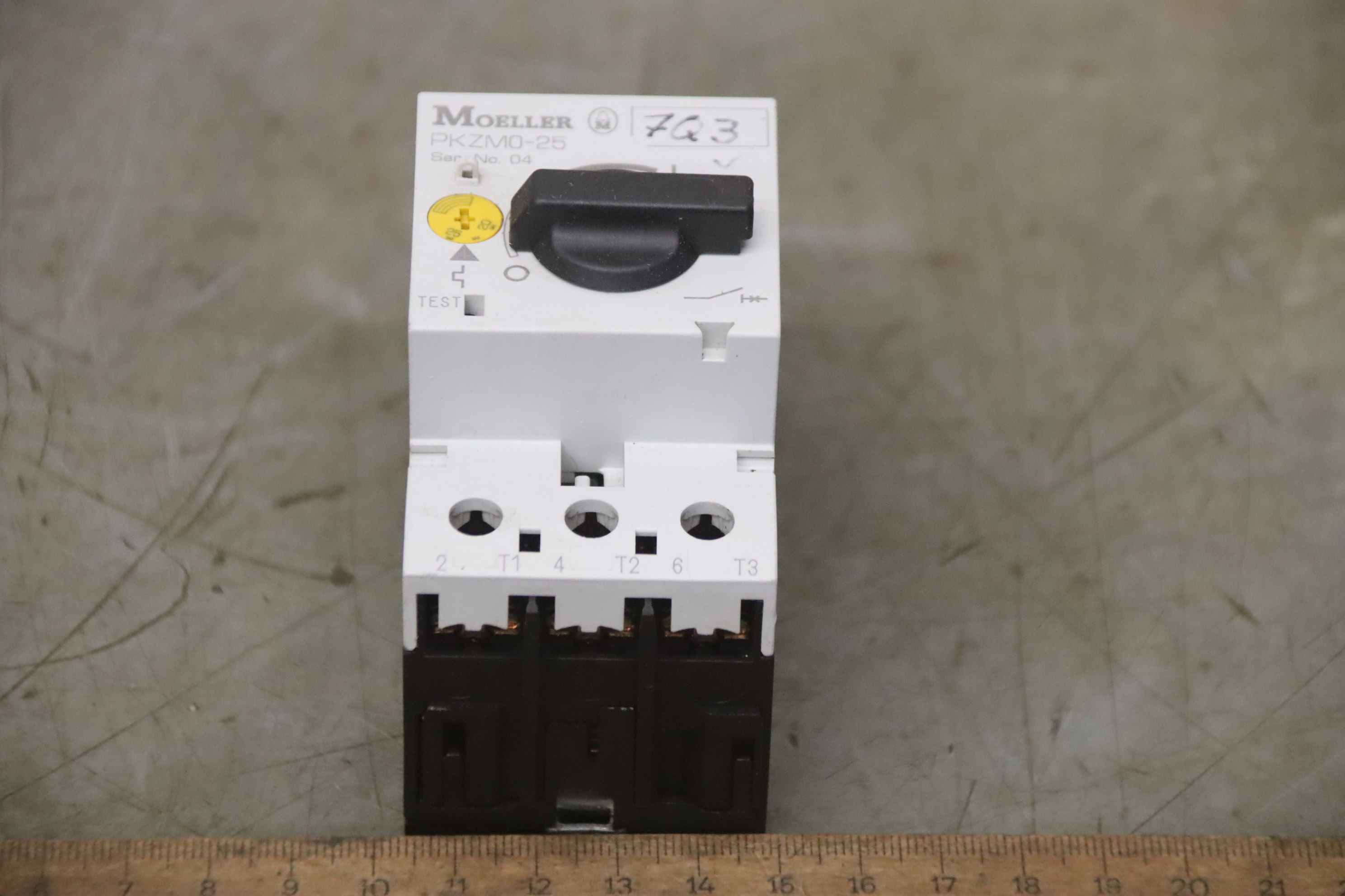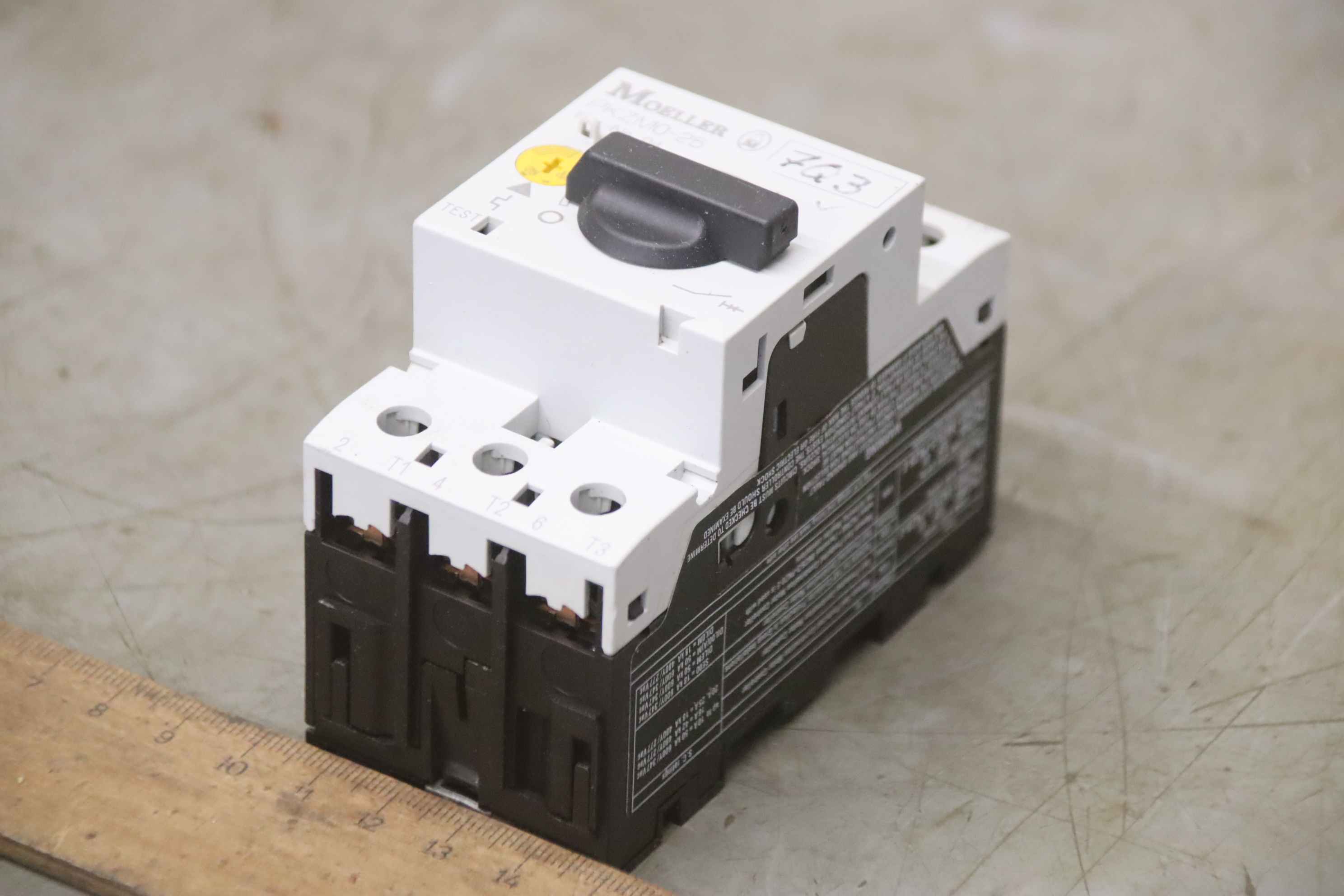 Circuit breakers, motor protection switches, circuit breakers, circuit breakers, low-voltage networks, circuit breakers for transformer, generator and system protection, switch disconnectors, disconnectors-Manufacturer: Moeller, motor protection switch-Type: PKZMO-25-Number: 1x switches available-Price per piece-Dimensions: 90/45/H75 mm-Weight: 0,3 kg/pc.
