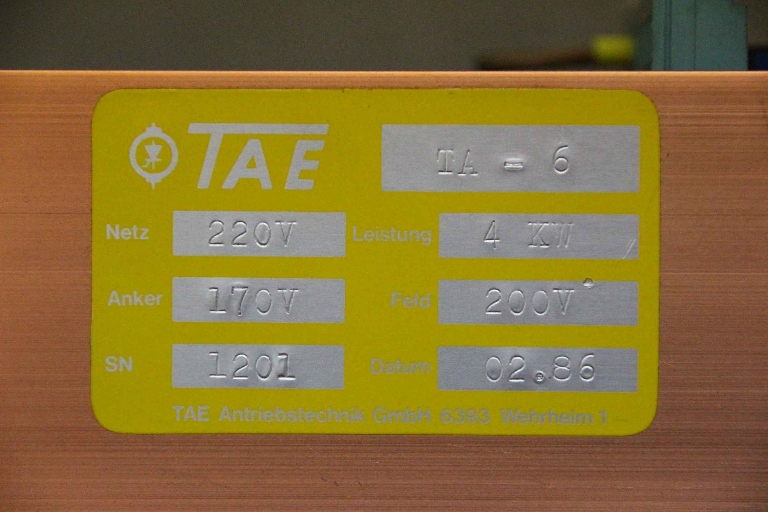 Frequency converter, frequency converter, drive converter, controller, variable speed drive, converter-Manufacturer: TAE, converter-Type: TA-6-Mains: 220 V power: 4 kW-Anchor: 170 V field 200 V-Dimensions: 260/145/H95 mm-Weight: 2.7 kg