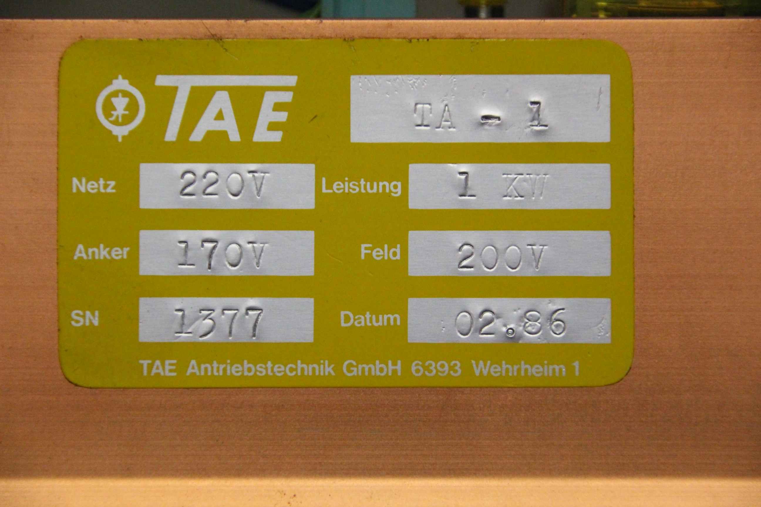 Frequency converter, frequency converter, drive converter, controller, variable speed drive, converter-Manufacturer: TAE, converter-Type: TA-1-Mains: 220 V power: 1 kW-Anchor: 170 V field 200 V-Dimensions: 230/140/H95 mm-Weight: 2.0 kg
