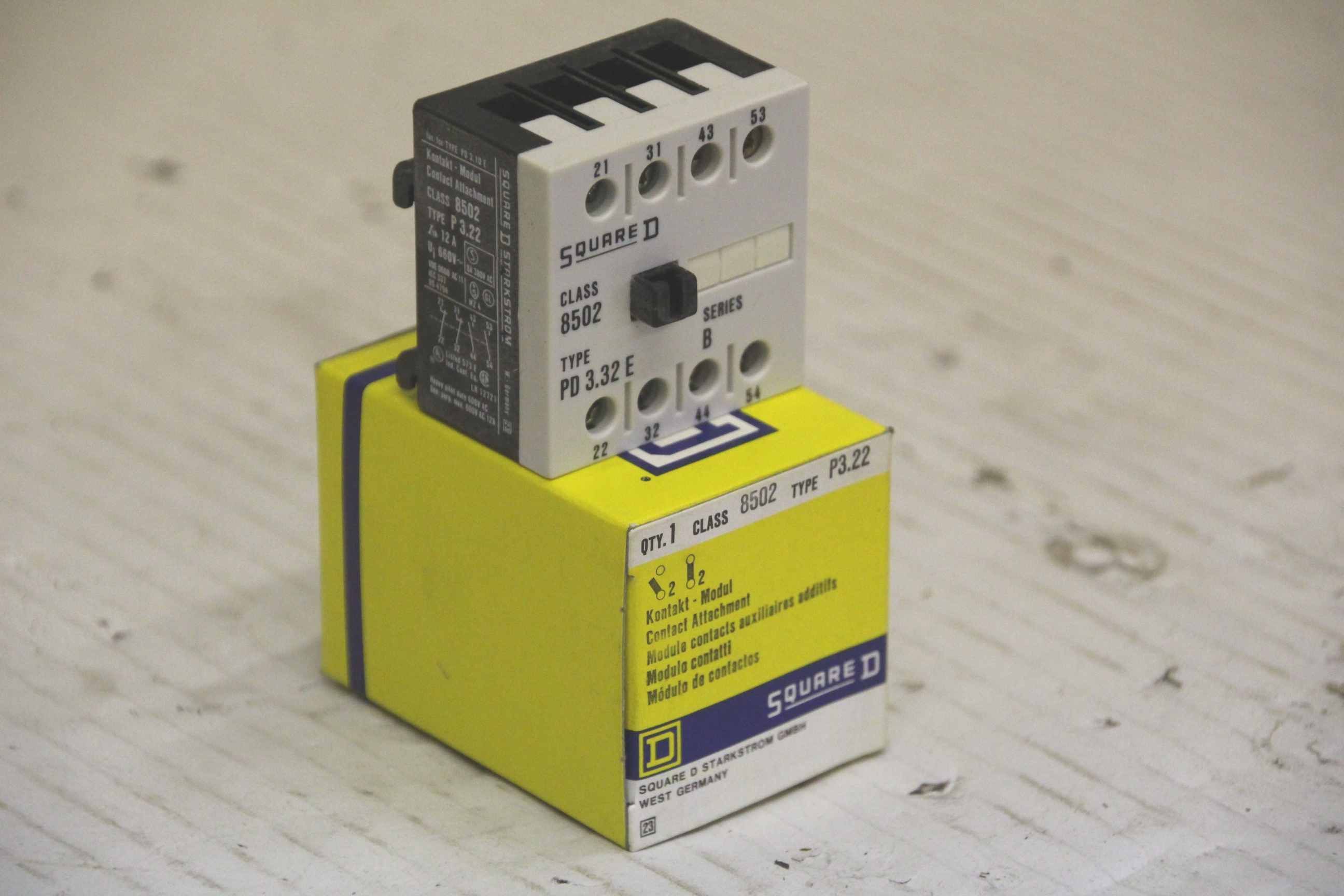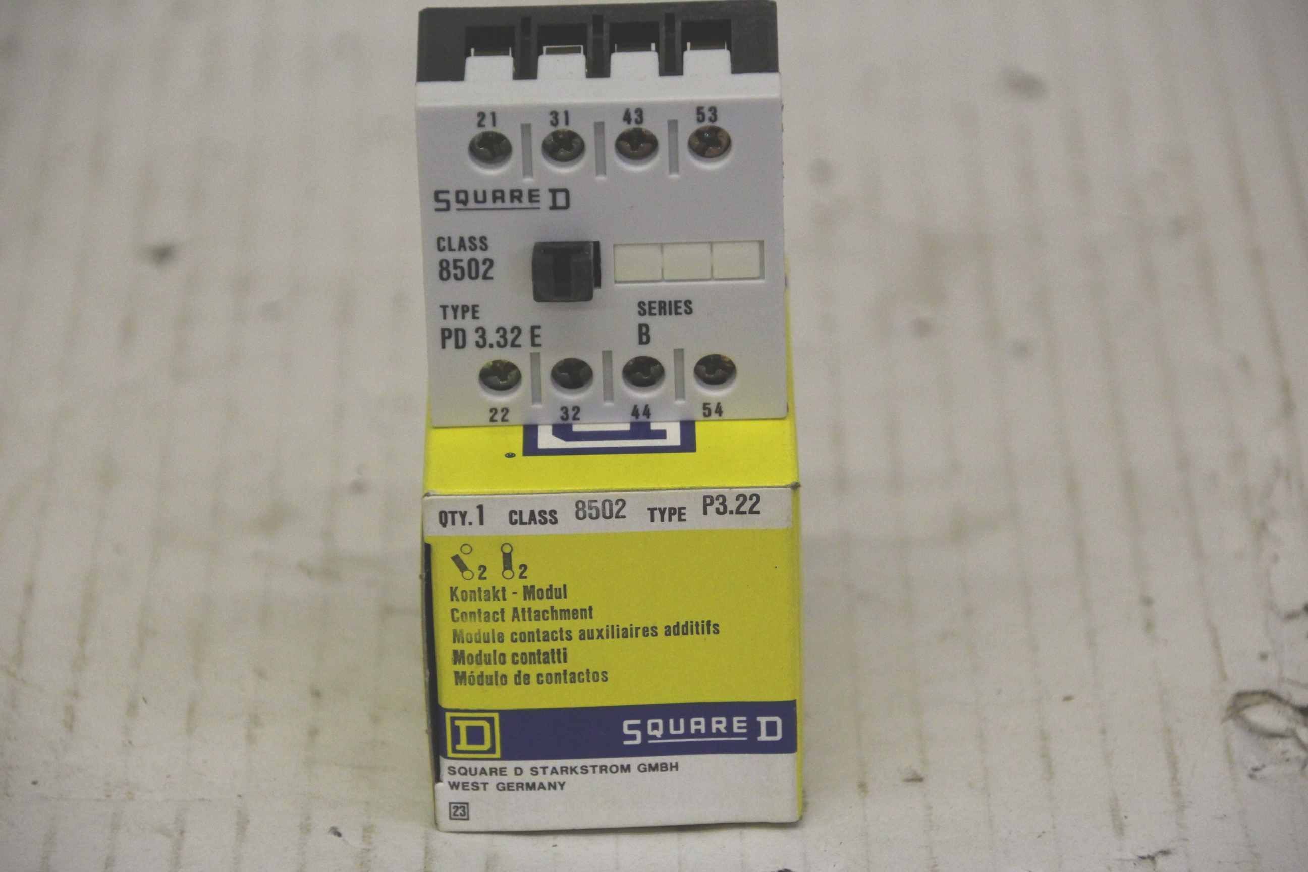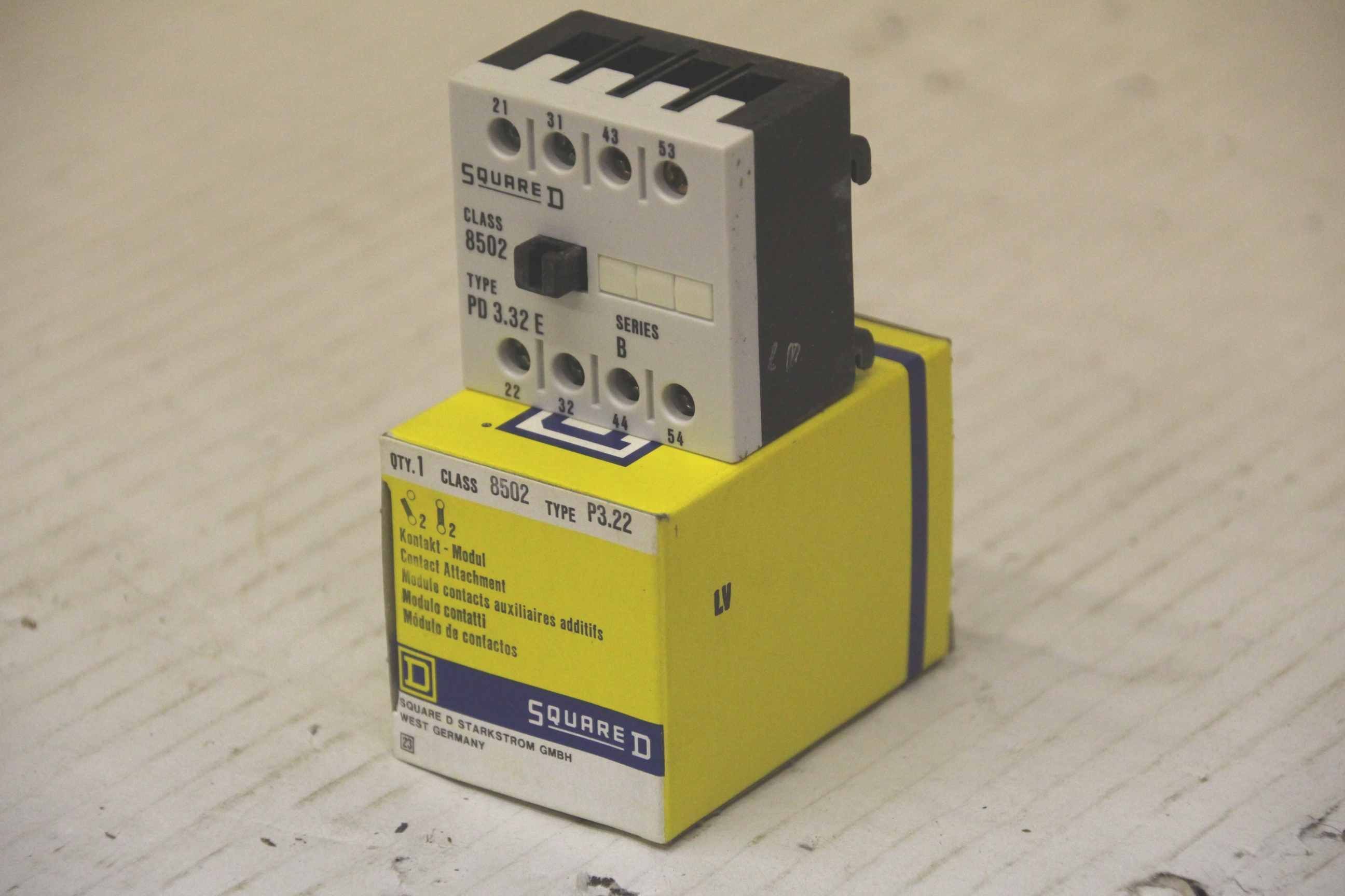 Contactor, semiconductor contactor, contactor, power contactor-Square D contact module: PD 3.32 E-Socket Class 8502 Type: P 3.22-Price: per piece-Number: 88 pieces-Dimensions: 49/47/H68 mm-Weight: 0.1 kg/piece
