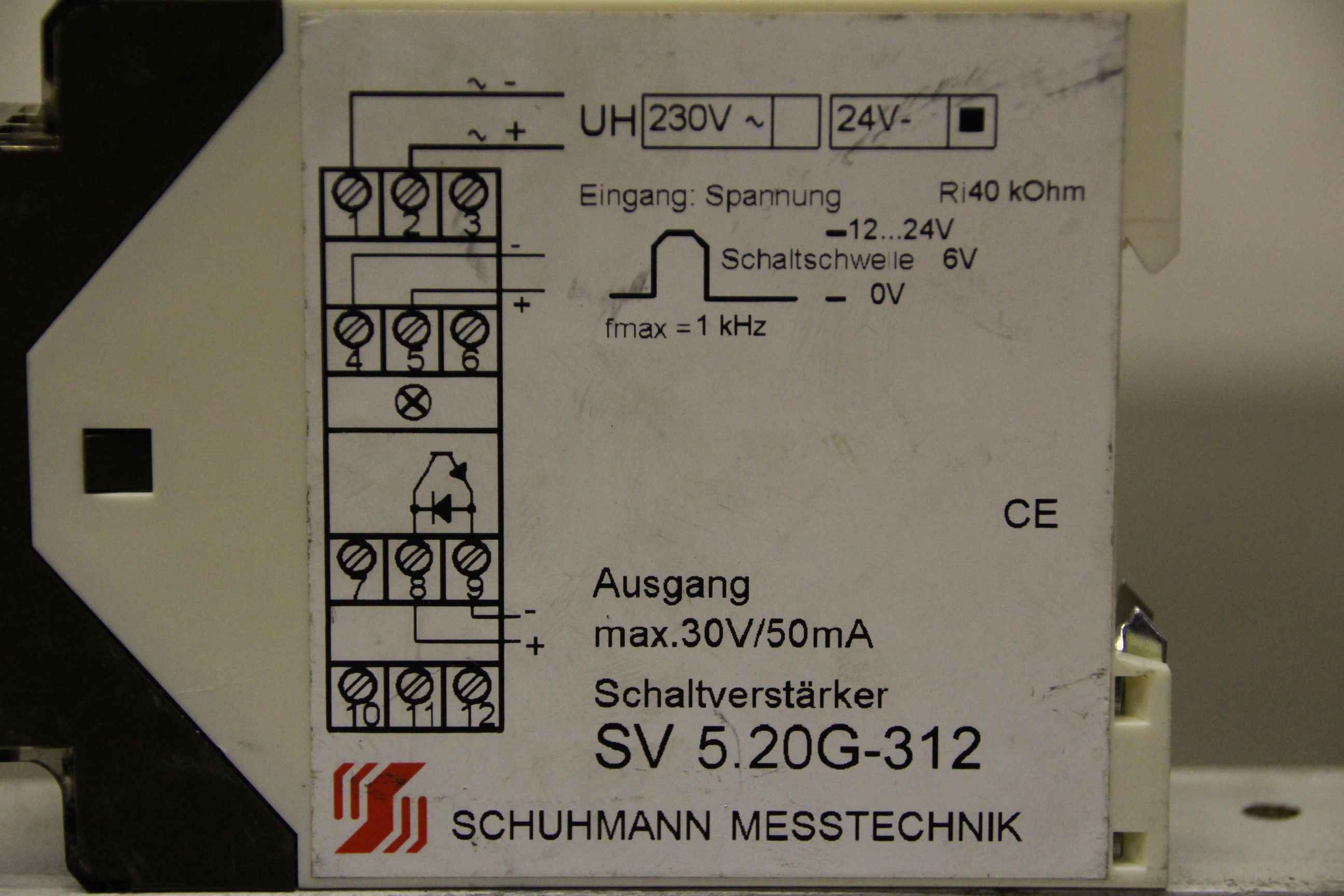 Measuring transducers, power measuring transducers, active power measuring transducers, analog converters, frequency/analog converters, frequency dividers, isolating converters, signal converters, isolating converters, switching amplifiers-Manufacturer: Schuhmann, switching amplifier-Type: SV 5.20G-312-Price: per piece-Number: 4 piece-Dimensions: 80/23/H105 mm-Weight: 0.1 kg/piece