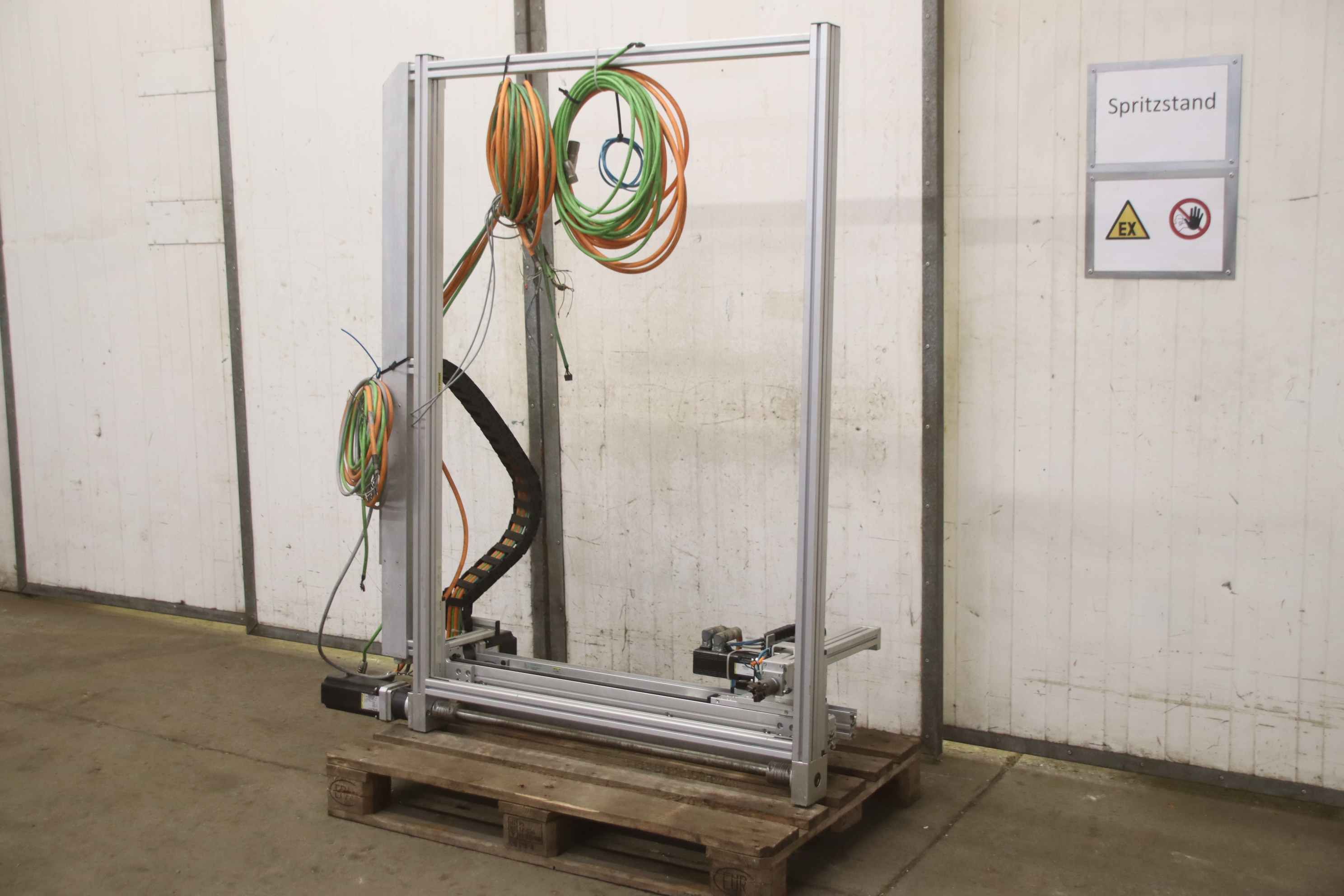 Industrial Robot, Robot, Robotics, Servo Motor, Electric Motor, DC Motor, Stepper Motor, Stepper Motor, Stepping Motor -Manufacturer: Berger Lahr, robotics robot cross table -Servo motors: SER397/4L3SS0TO 3 pieces -Linear units: LM-A504KT100-250 / LM-H404K-700-LW230 / LM-P404KT100-1200 -Individual components: see photos -Traverse paths: x=670 / Y=360 / z= 1260 mm -Total dimensions: 1405/590/H1650 mm -Weight: 74kg