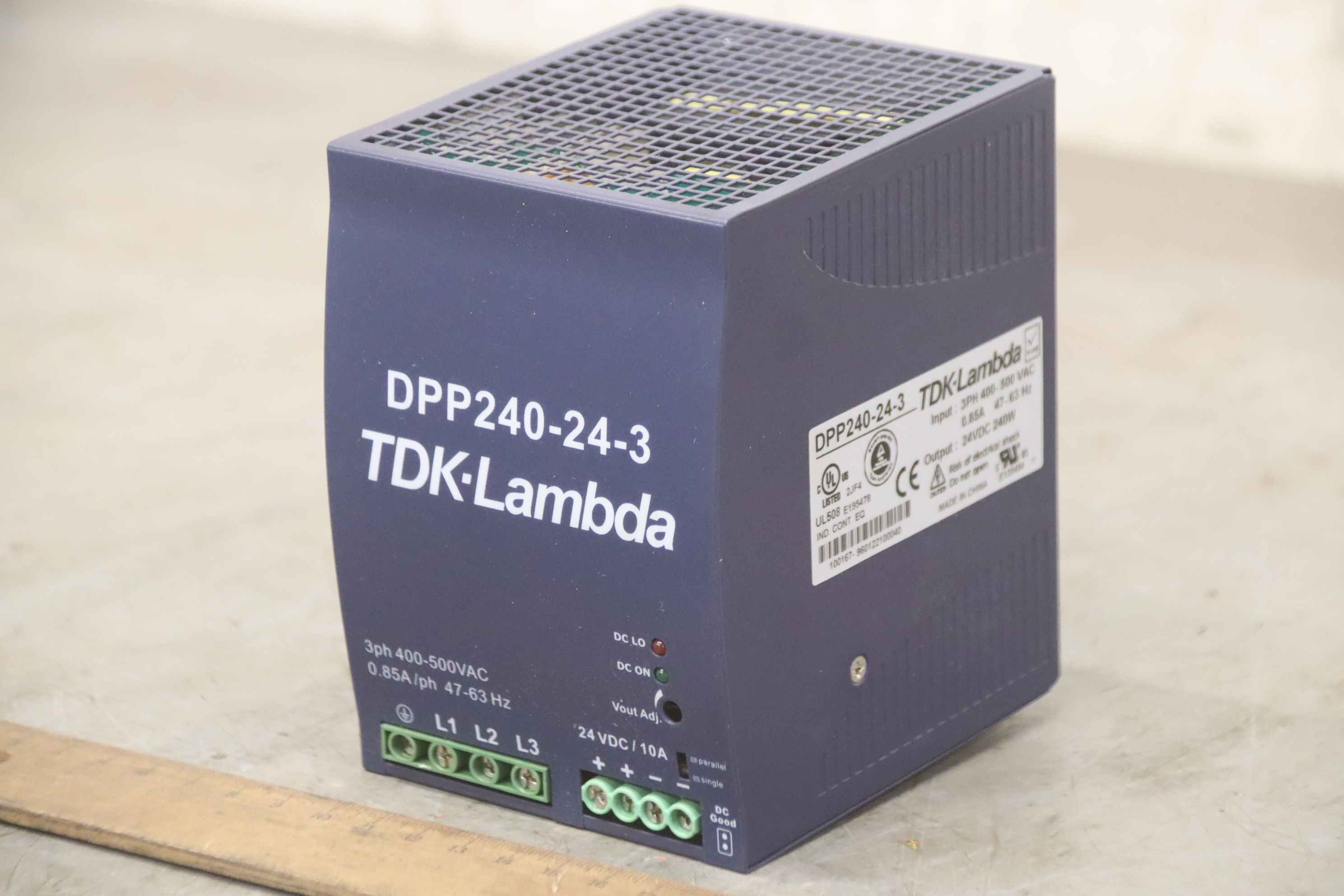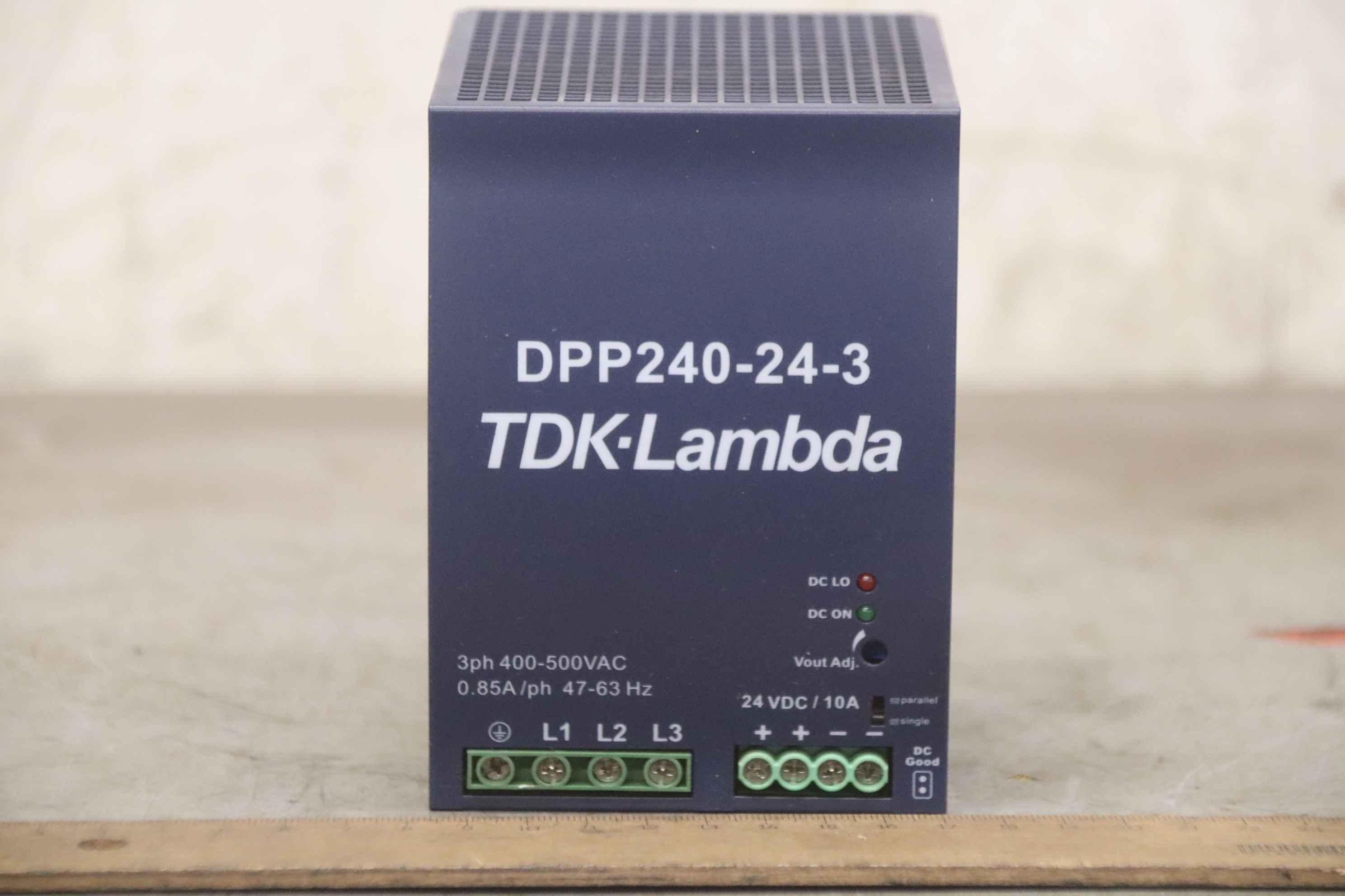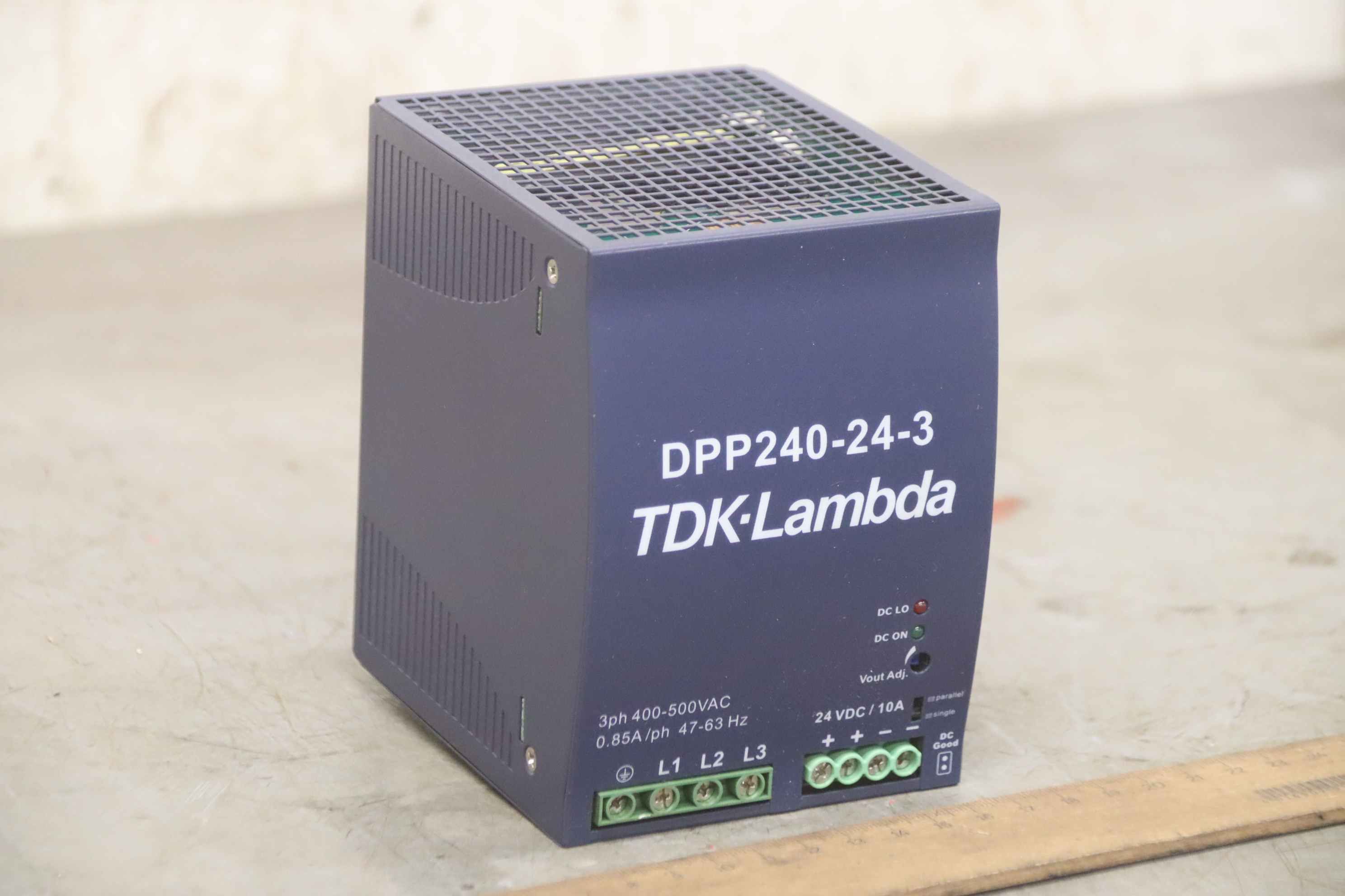 PTC thermistor relay, contactor, semiconductor contactor, contactor, relay, fiber optic converter, DIN rail power supply, rail power supply, switching power supply-Manufacturer: TDK-Lambda, DIN rail power supply from CNC machining center Santenberg GTC S 2-Type: DPP240-24-3-Input: 3PH 400-500VAC-Output: 24VDC 240W-Dimensions: 120/90/H130 mm-Weight: 1,1 kg