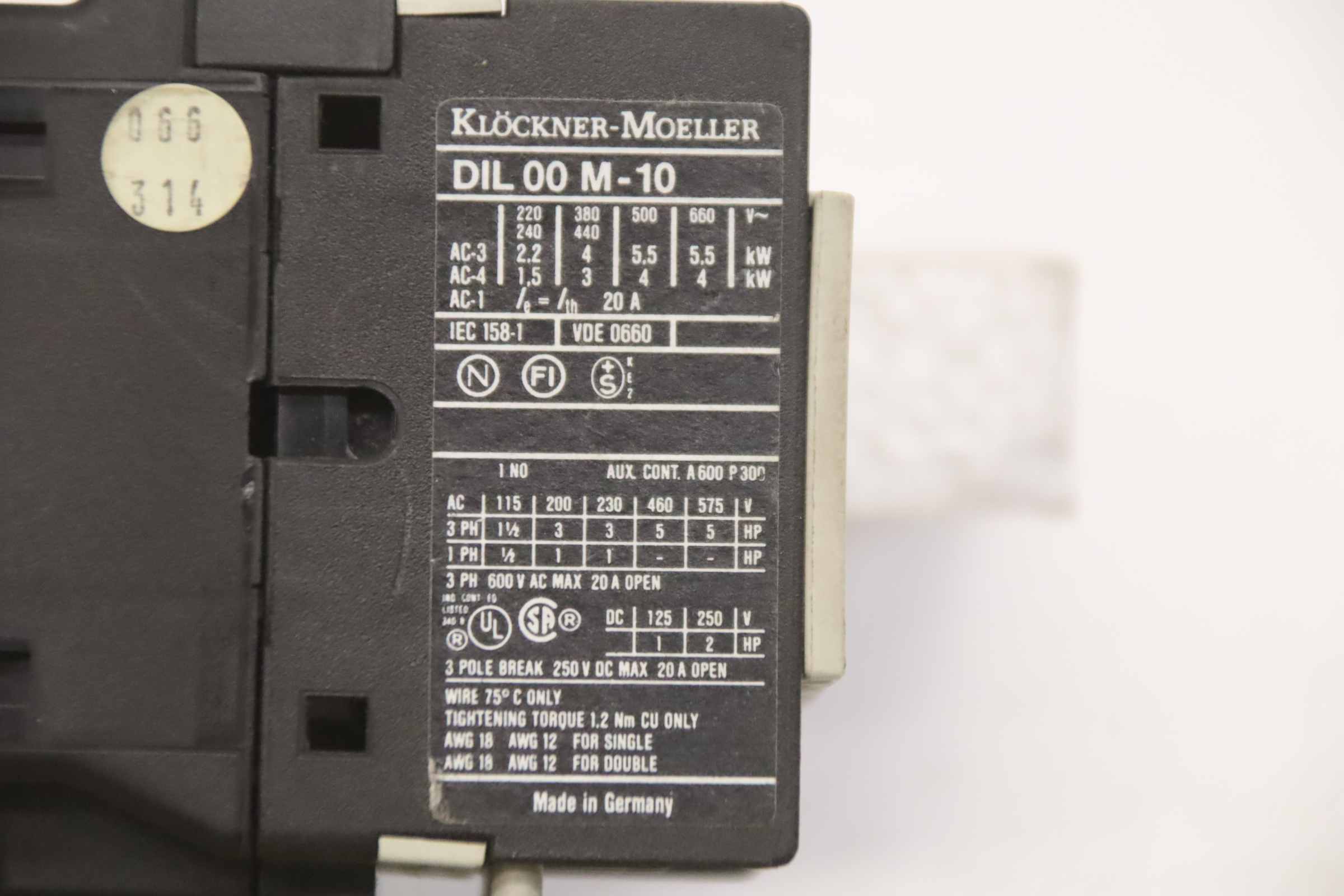 Contactor, semiconductor contactor, contactor, power contactor, capacitor contactor -Manufacturer: Klöckner Moeller, Auxiliary contactor Control Relay -Type: DIL00 M-10 -Number: 2x contactors available -Price: per piece -Dimensions: 120/45/H95 mm -Weight: 0.5 kg/piece