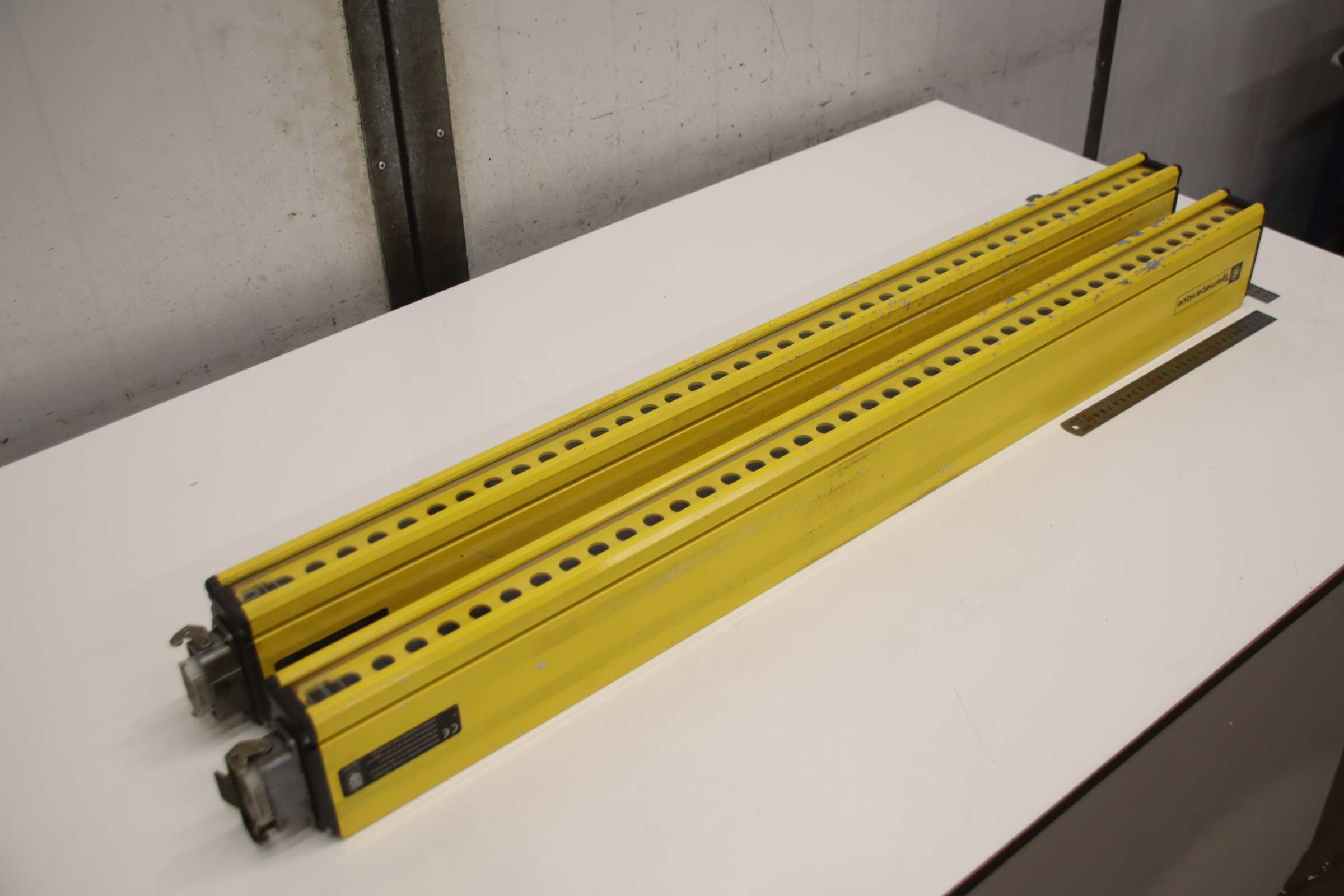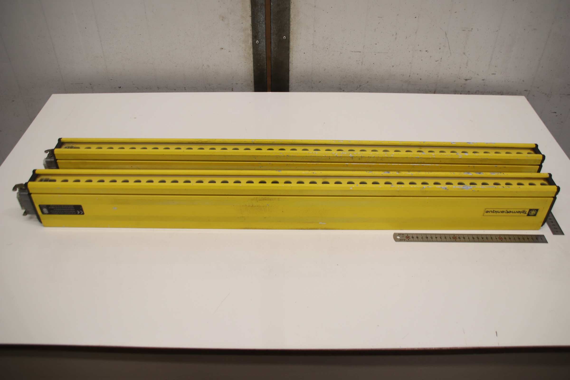 Light barrier, safety light curtain -Manufacturer: Telemecanique, light barrier type XUSF -Transmitter/Receiver: Type XUSF069210 -Protection field height: 1025 mm -Voltage: 115/230 V -Submission/Price: complete -Dimensions: 1130/235/60 mm -Weight: 13.1 kg
