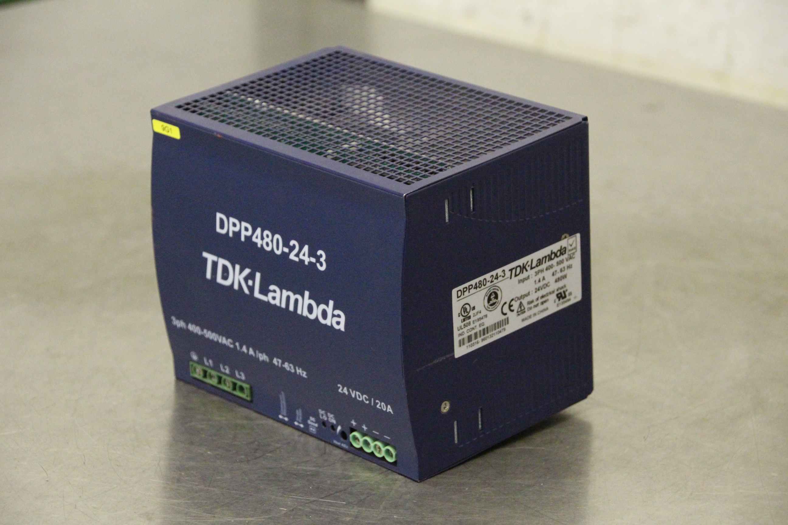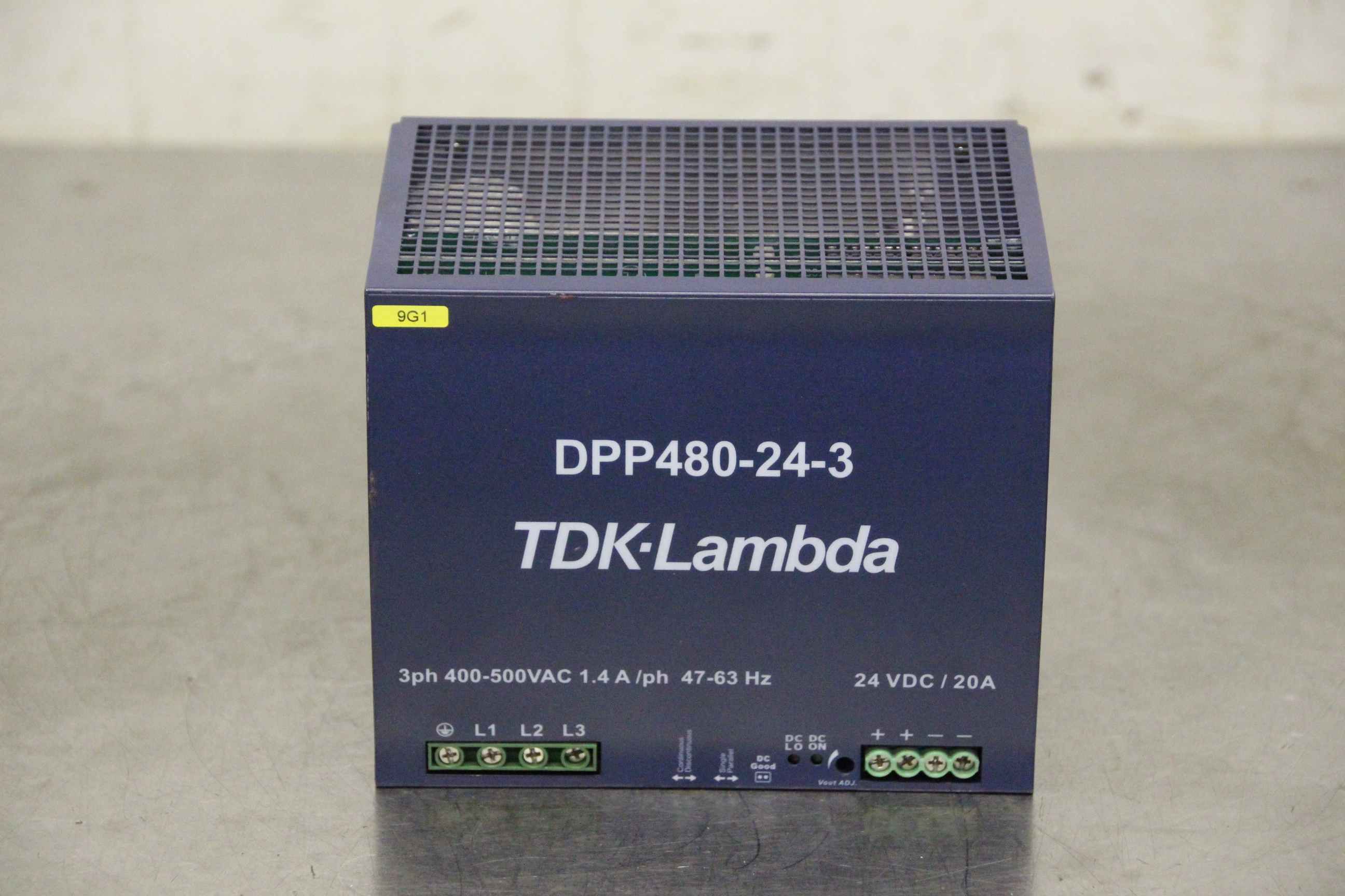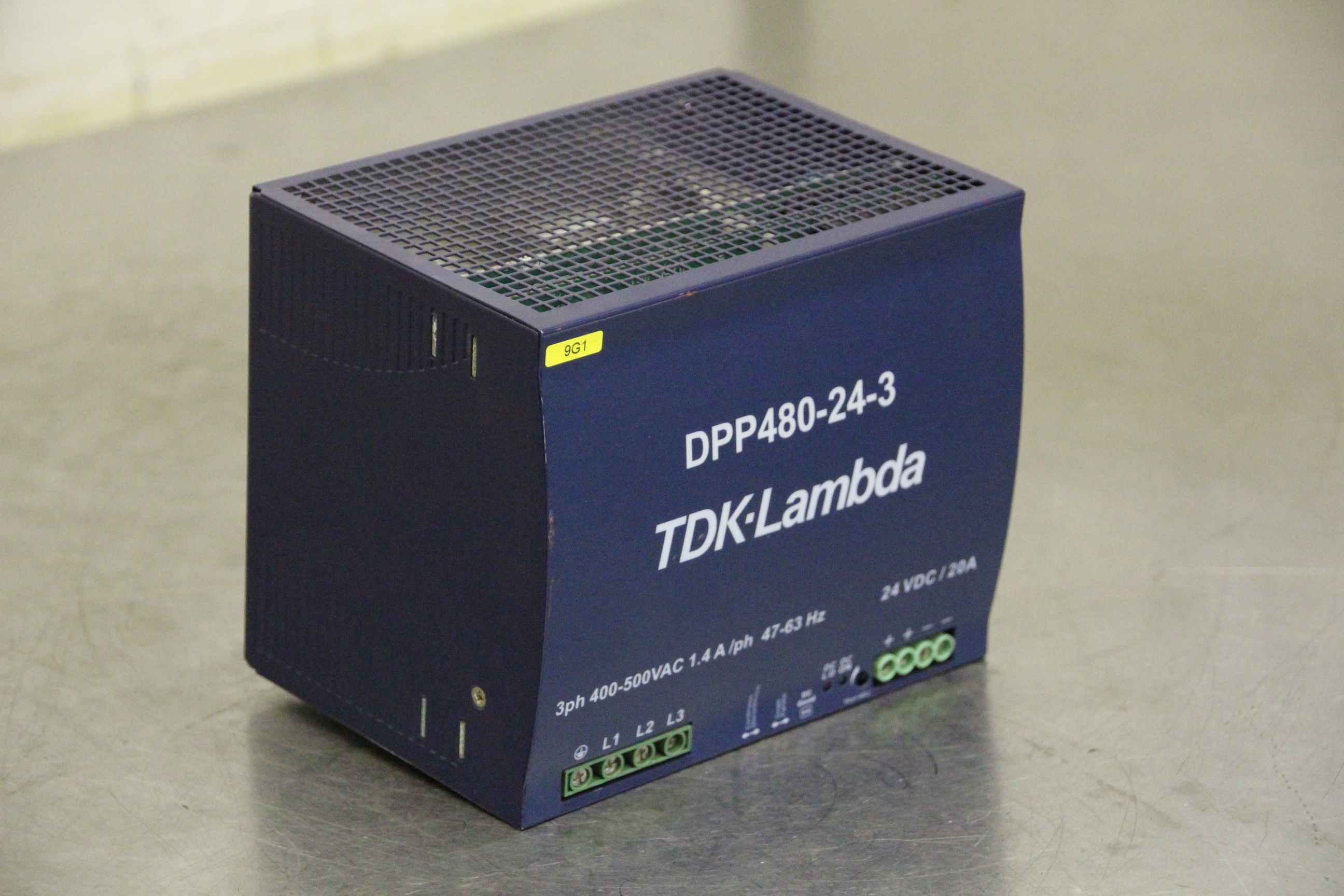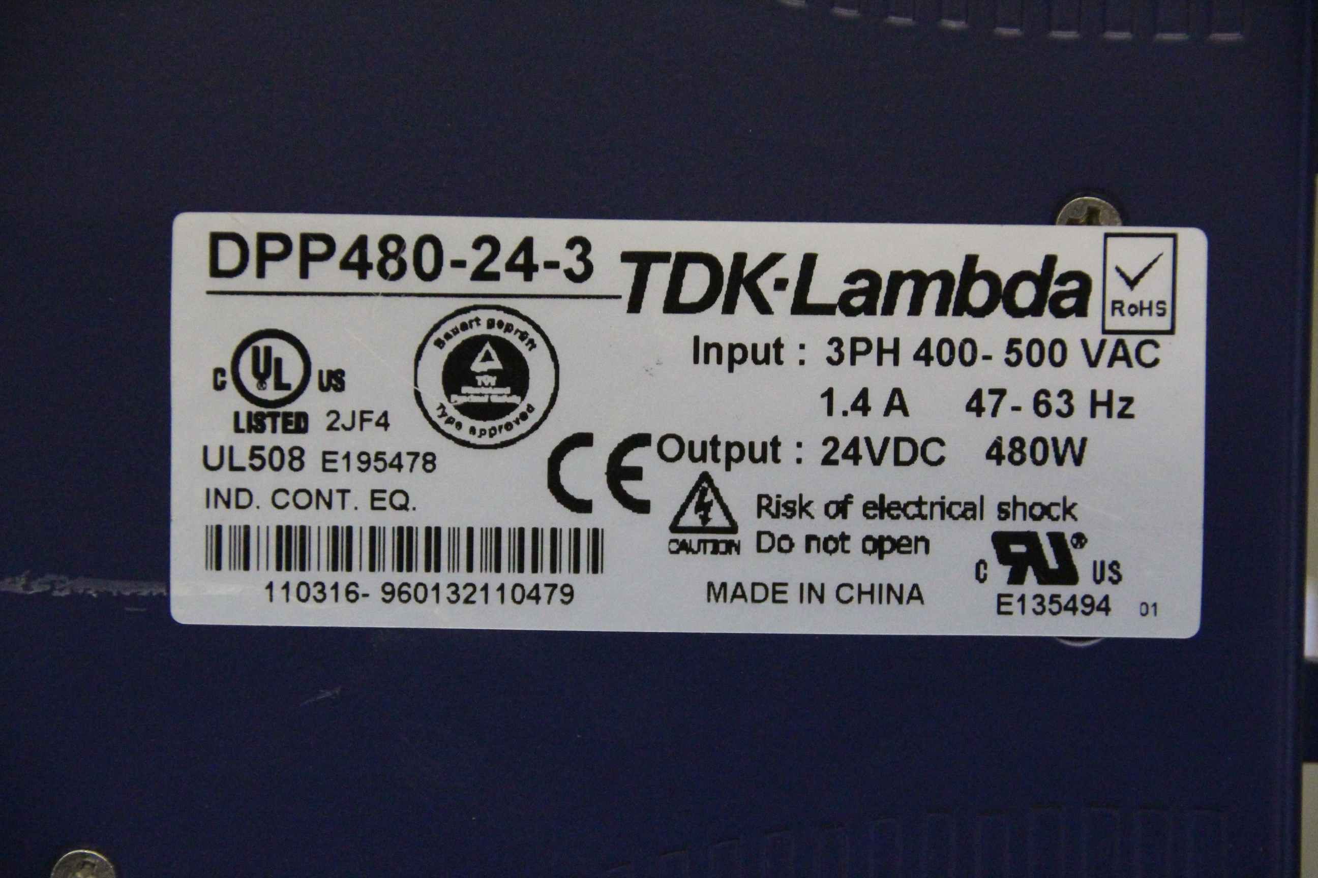 PTC thermistor relay, contactor, semiconductor contactor, contactor, relay, fiber optic converter, DIN rail power supply, rail power supply, switching power supply-Manufacturer: TDK-Lambda, DIN rail power supply-Type: DPP480-24-3-Input: 3 PH 400-500 VAC-Output: 24 VDC 480 W-Dimensions: 150/112/H124 mm-Weight: 1.7 kg