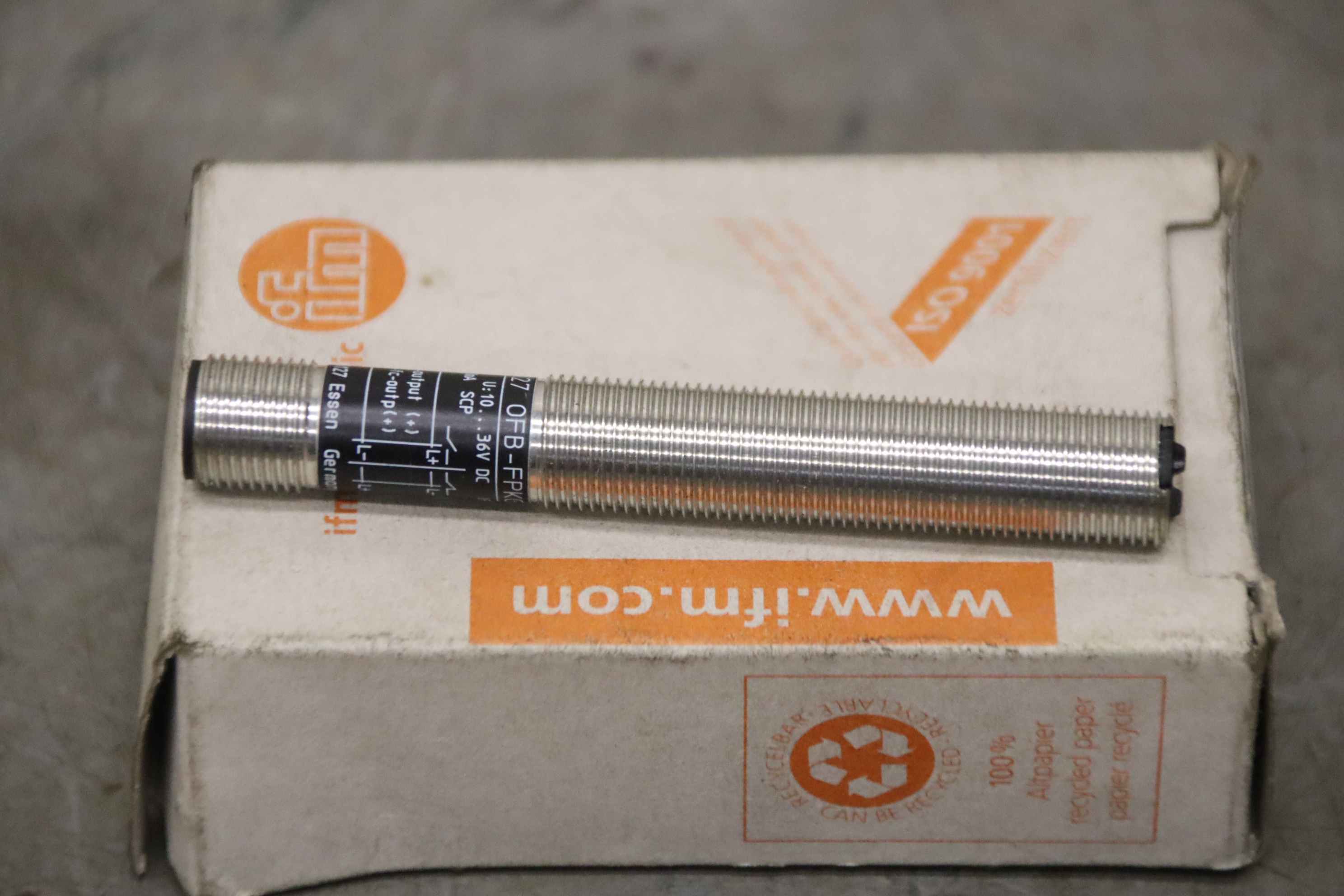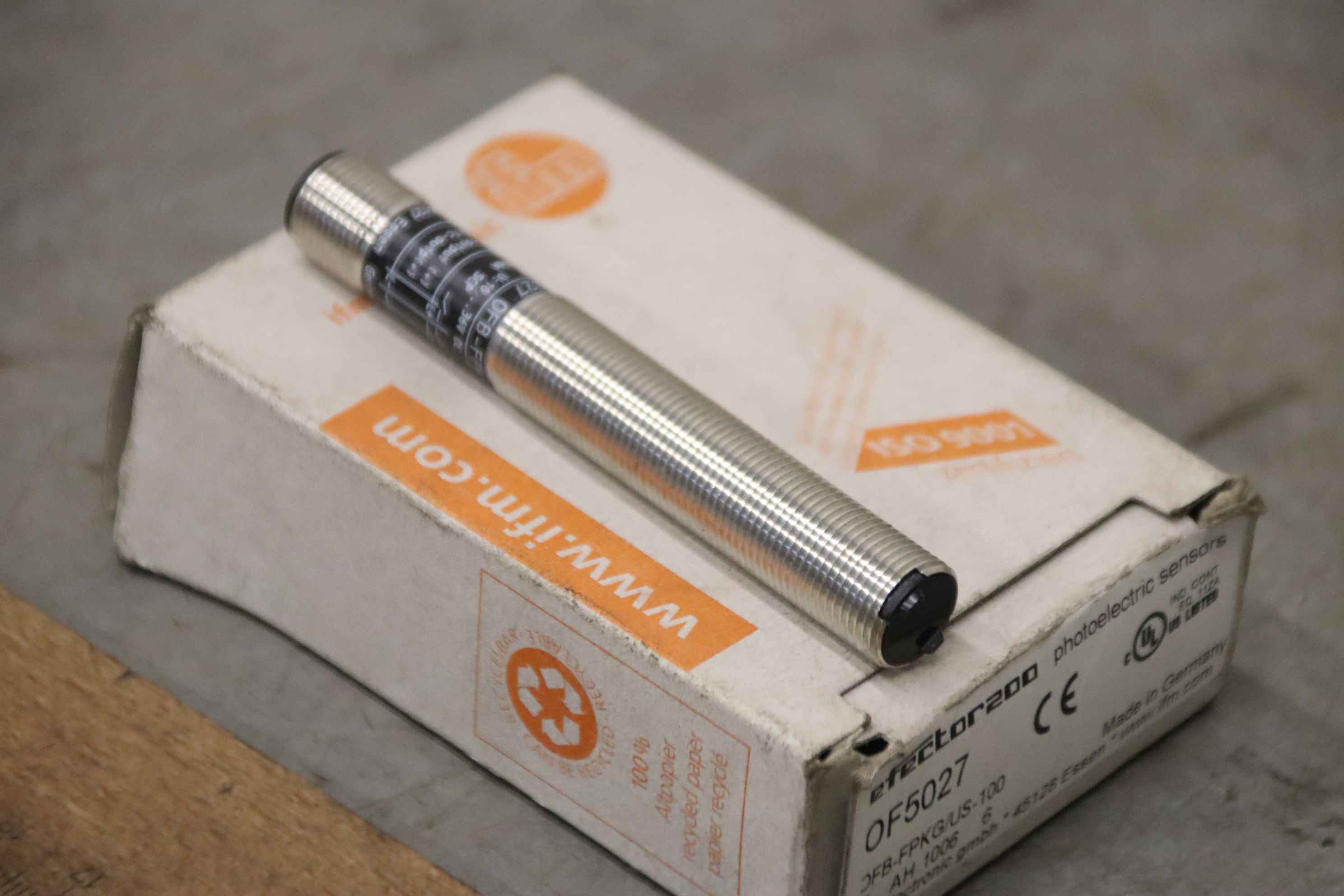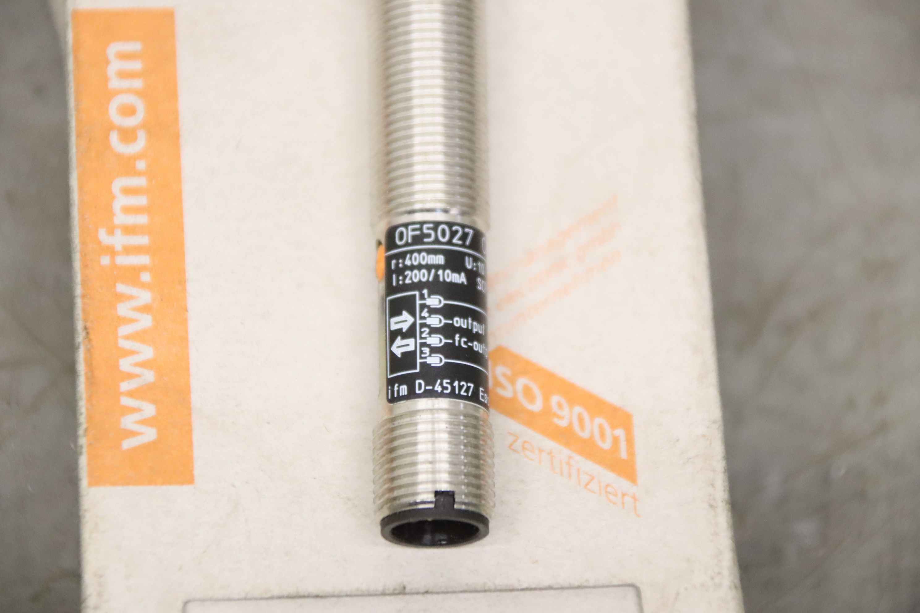 Reflective light barrier, light barrier, reflective light switch, reflective switch, light switch, reflective light barrier, reflective light switch -Manufacturer: ifm, Reflex photoelectric sensor, unused, original packaging -Type: OF5027 -Number: 1x button available -Cardboard dimensions: 90/60/H30 mm -Weight: 0.1 kg