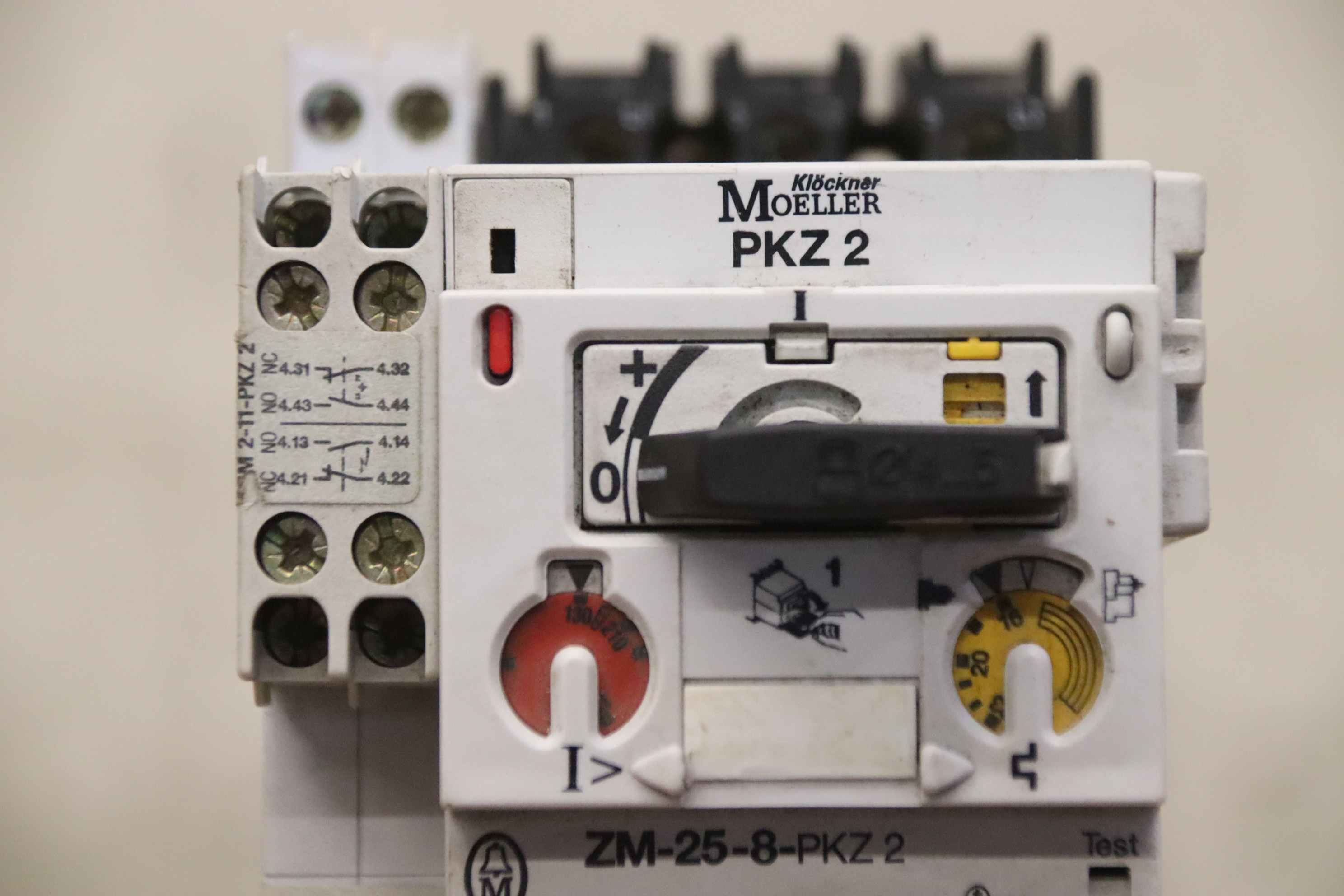 Circuit breakers, motor protection switches, circuit breakers, circuit breakers, low-voltage networks, circuit breakers for transformer, generator and system protection, load break switches, isolating switches-Manufacturer: Klöckner Moeller, motor protection switch high-performance switching drive-Type: S-PKZ2-Motor protection switch: PKZ2-Contact blocks: A 600 / P 300 A 600 / Q 300-Number: 50x switchgear available-Price: per piece-Dimensions: 205/80/H145 mm-Weight: 2.0 kg
