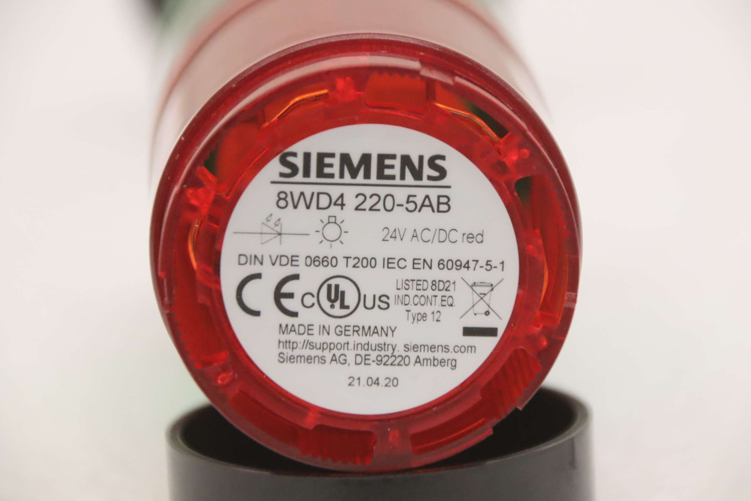Signal towers, signal lights, signal lamps, indicator lights, signal light columns, light signal alarm systems -Manufacturer: Siemens, Signal tower 2 colors -Type: 8WD4 -Voltage: 24 V -Number: 2x signal towers available -Price: per piece -Dimensions: Ø 70 x 265 mm -Weight: 0.2 kg/pc.