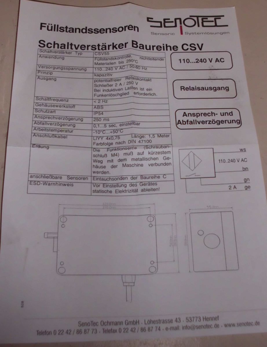 Switching amplifier, amplifier unit -Type: CSV 55 -Voltage: 110-240 VAC -Weight: 0.6 kg