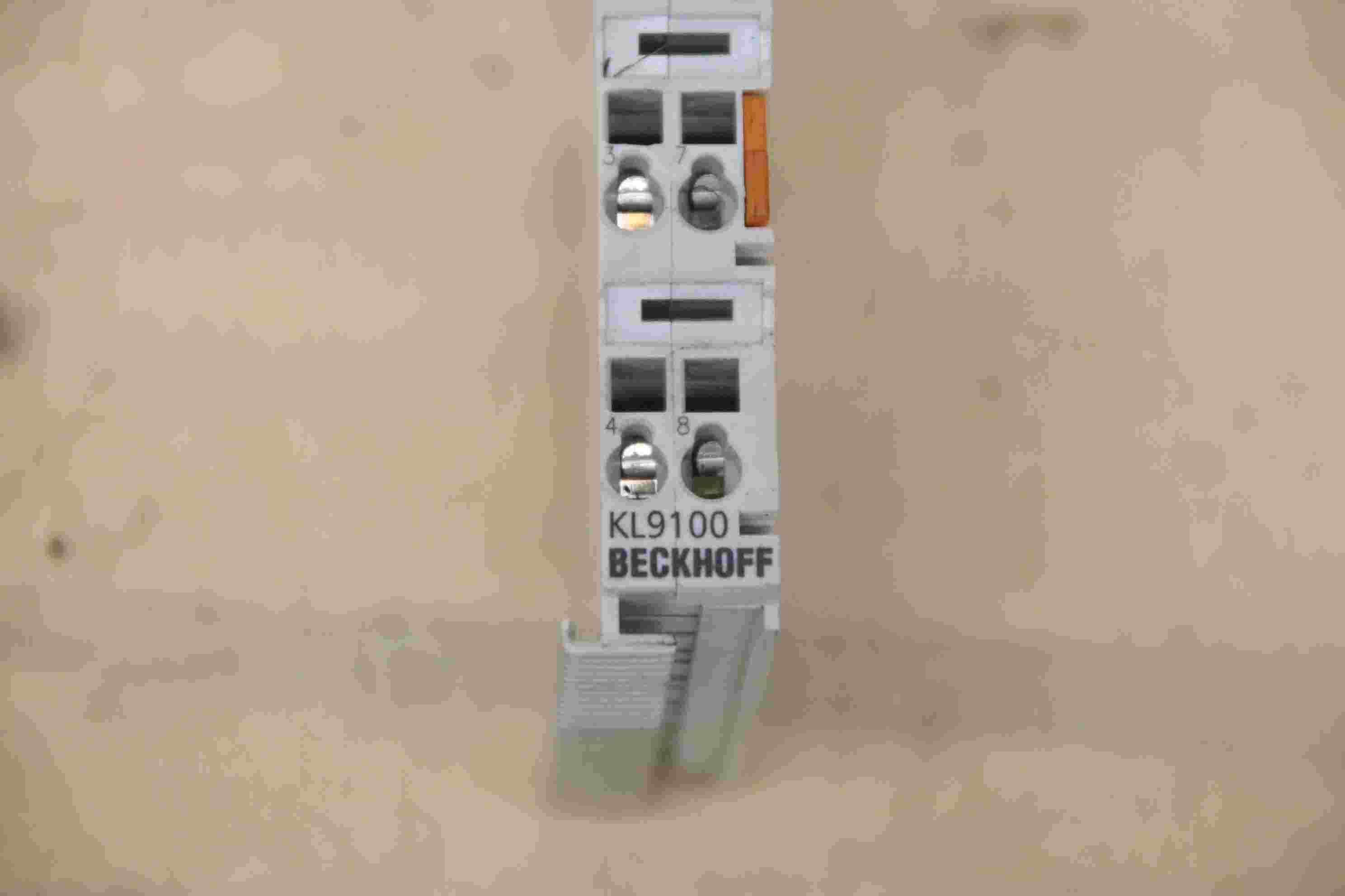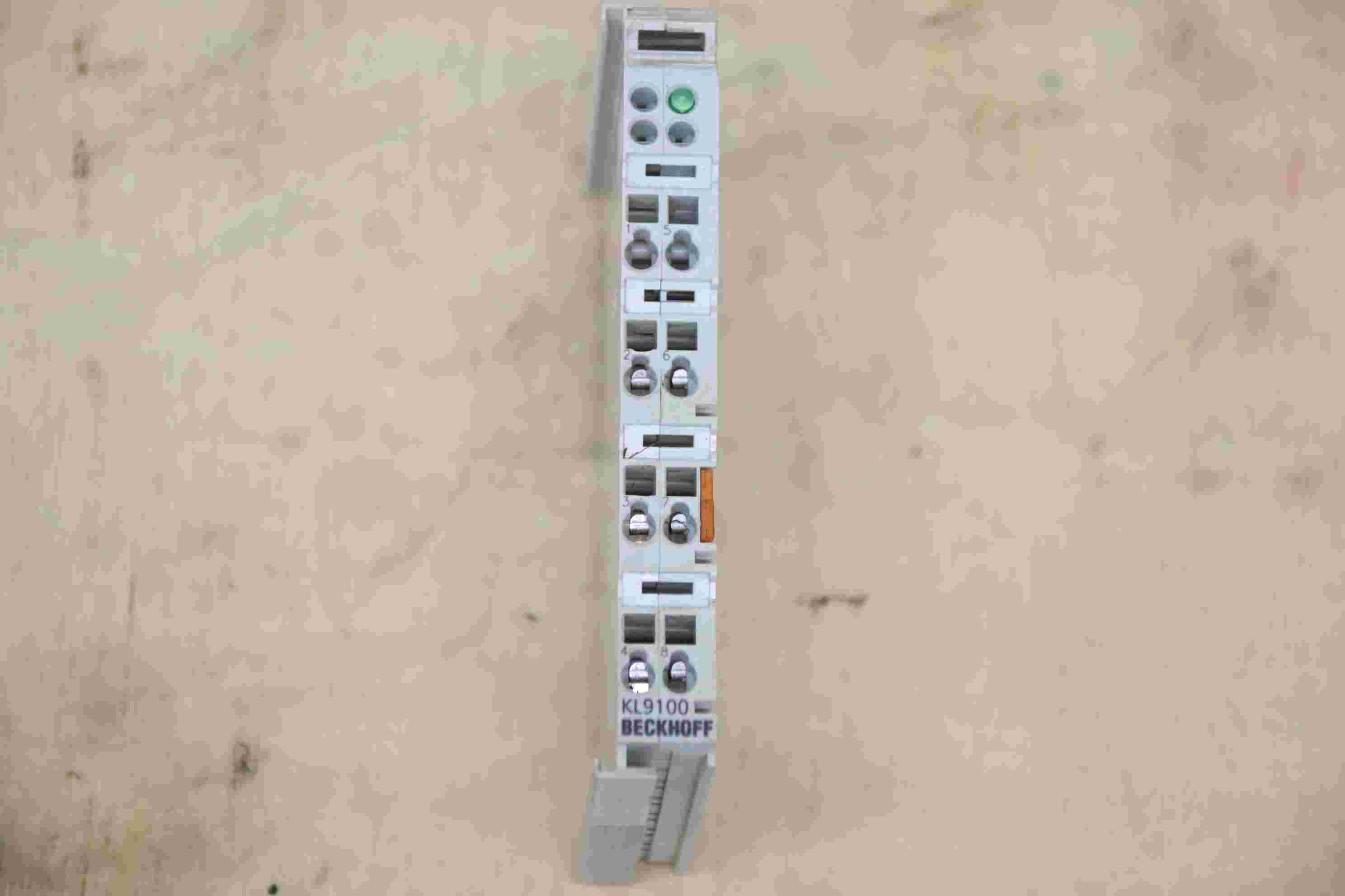 Power supply rails, power supply terminal, digital input terminal, digital output terminal, potential feed terminal, supply module, power supply, feed terminal-Manufacturer: Beckhoff, potential feed terminal-Type: KL9100-Number: 4 pieces available-Price per piece-Dimensions: 15/67/H100 mm-Weight: 0.1kg/pcs
