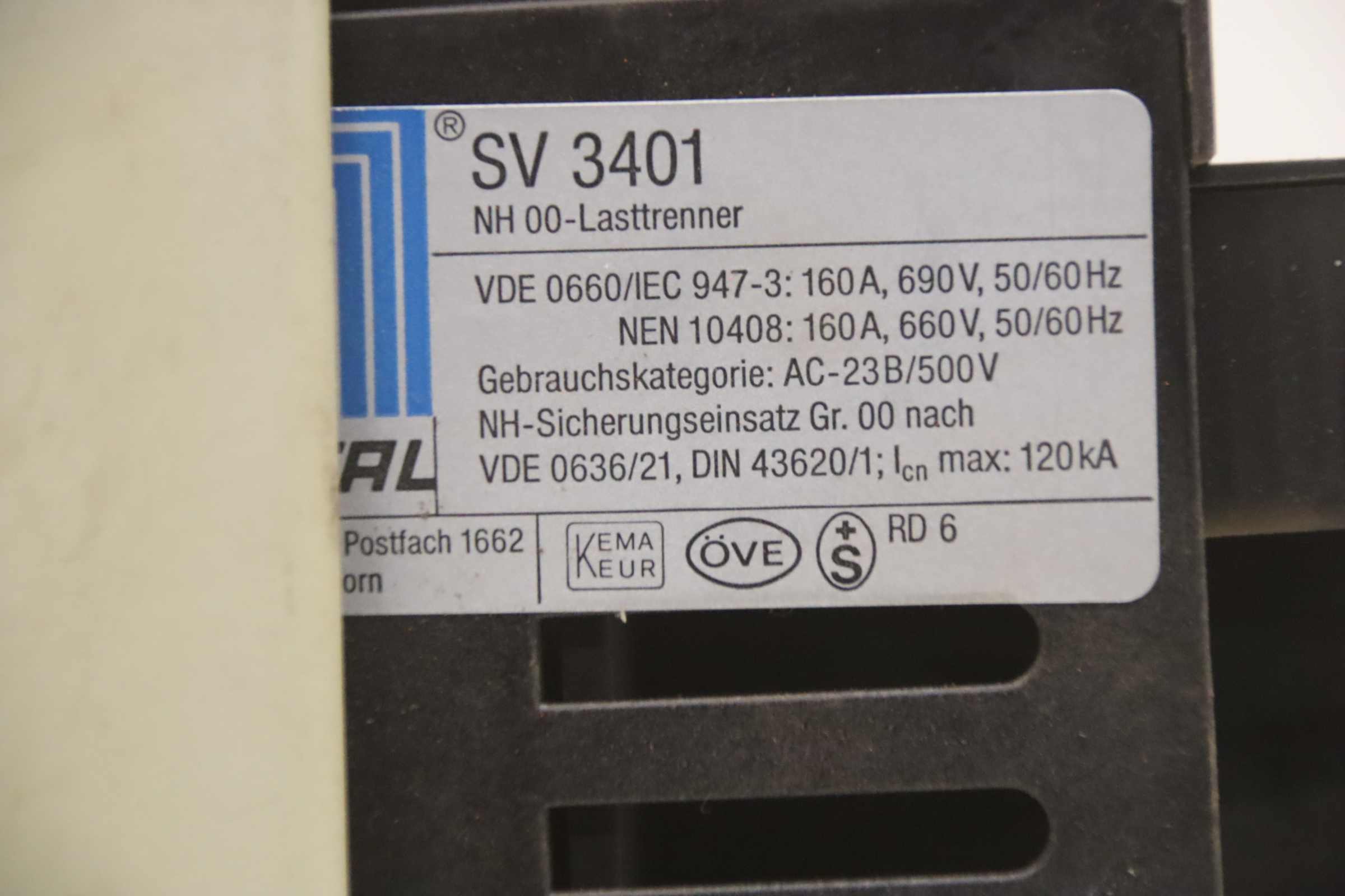 Auxiliary circuit breaker, miniature circuit breaker, fuse, circuit breaker, miniature circuit breaker, load break switch, terminal block, load disconnector, fuse-switch disconnector -Manufacturer: Rittal, NH 00 load break switch 160 A -Type: SV 3401 -Number: 2x load break switches available -Price: per piece -Dimensions: 230/115/H140 mm -Weight: 1.0 kg/piece
