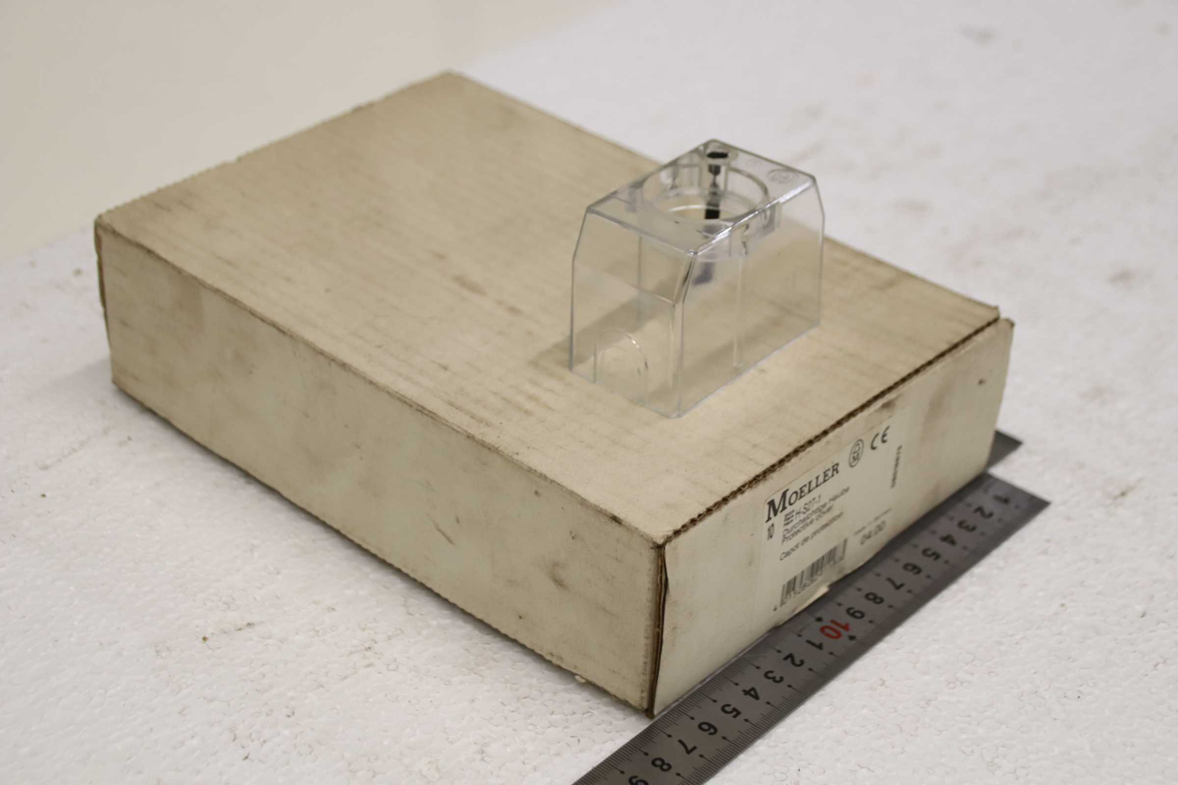 Auxiliary circuit breaker, circuit breaker, fuse, line switch, miniature circuit breaker, load break switch, terminal block, load disconnector, fuse-switch disconnector, cover -Manufacturer: Moeller, clear cover for fuse base, 10 pieces, unused, original packaging -Type: NH Gr. 3 630 A -Quantity: 1 box containing 10 items available -Cardboard dimensions: 250/165/H70 mm -Total weight: 0.4 kg