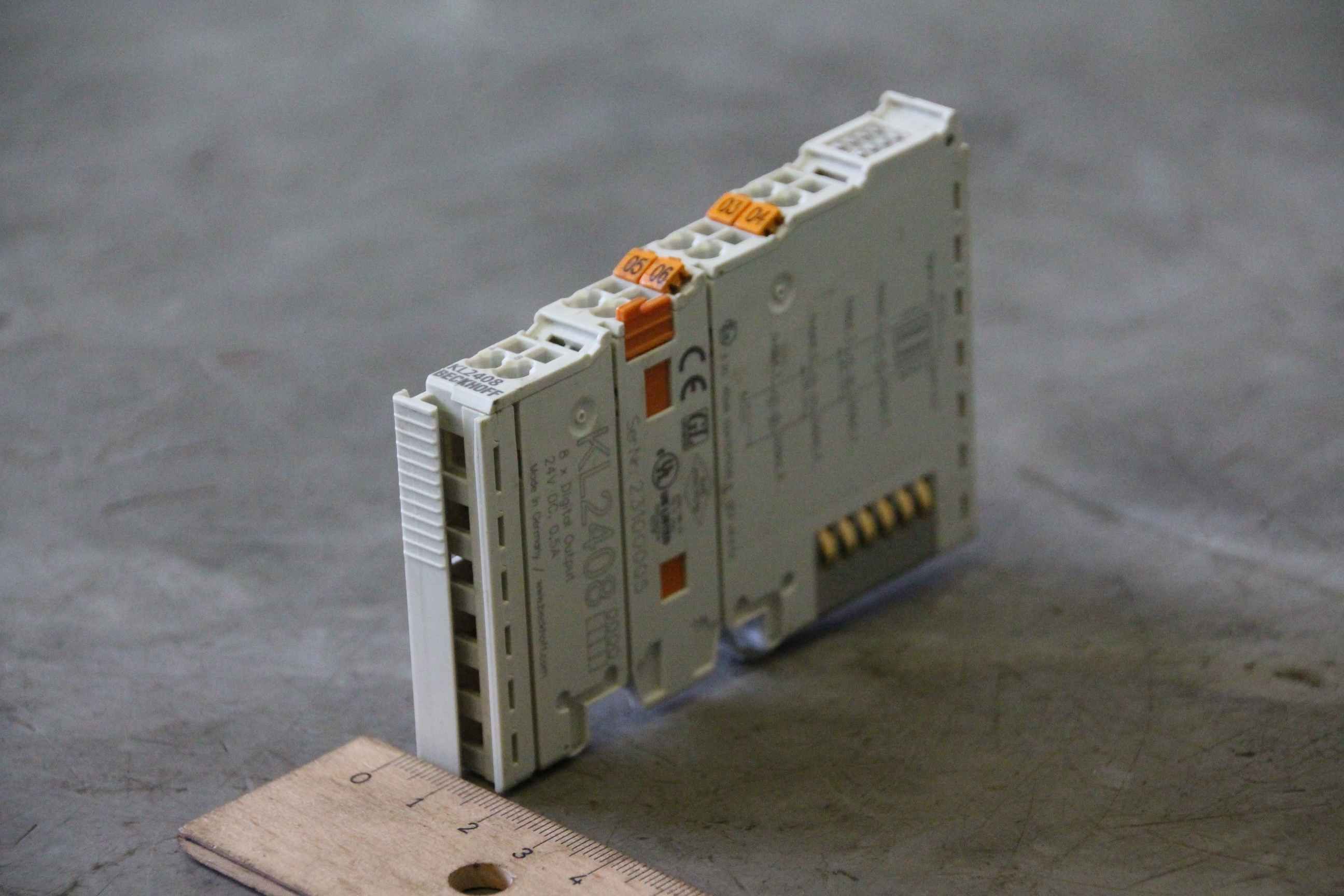 PTC relay, contactor, semiconductor contactor, contactor, relay, fiber optic converter, DIN rail power supply, rail power supply, power supply terminal, digital input terminal, digital output terminal, potential feed terminal, supply module, power supply, feed terminal, bus terminal-Manufacturer: Beckhoff, 8-channel digital output terminal-Type: KL2408-Number: 5 pieces available-Price per piece-Dimensions: 15/70/H100 mm-Weight: 0.1 kg/pc.