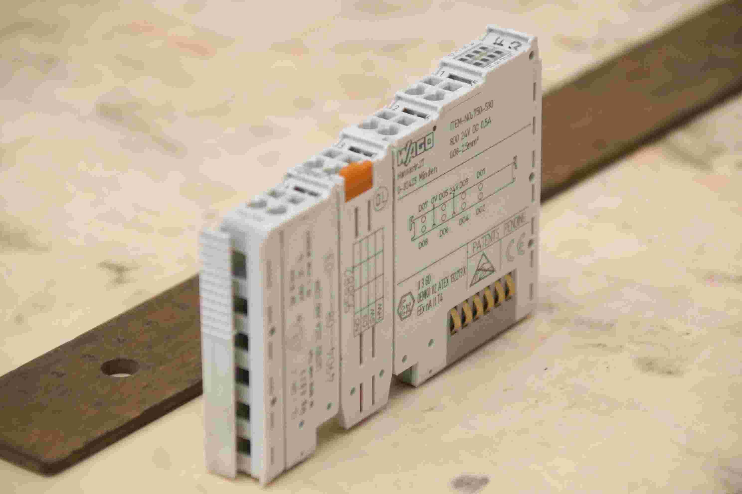 PTC relay, contactor, semiconductor contactor, contactor, relay, fiber optic converter, DIN rail power supply, rail power supply, power supply terminal, digital input terminal, digital output terminal, potential feed terminal, supply module, power supply, feed terminal, bus terminal-Manufacturer: Wago, 8-channel digital output terminal-Type: 750-530-Number: 2 available-Price per piece -Dimensions: 15/67/H100 mm -Weight: 0.1kg/pcs