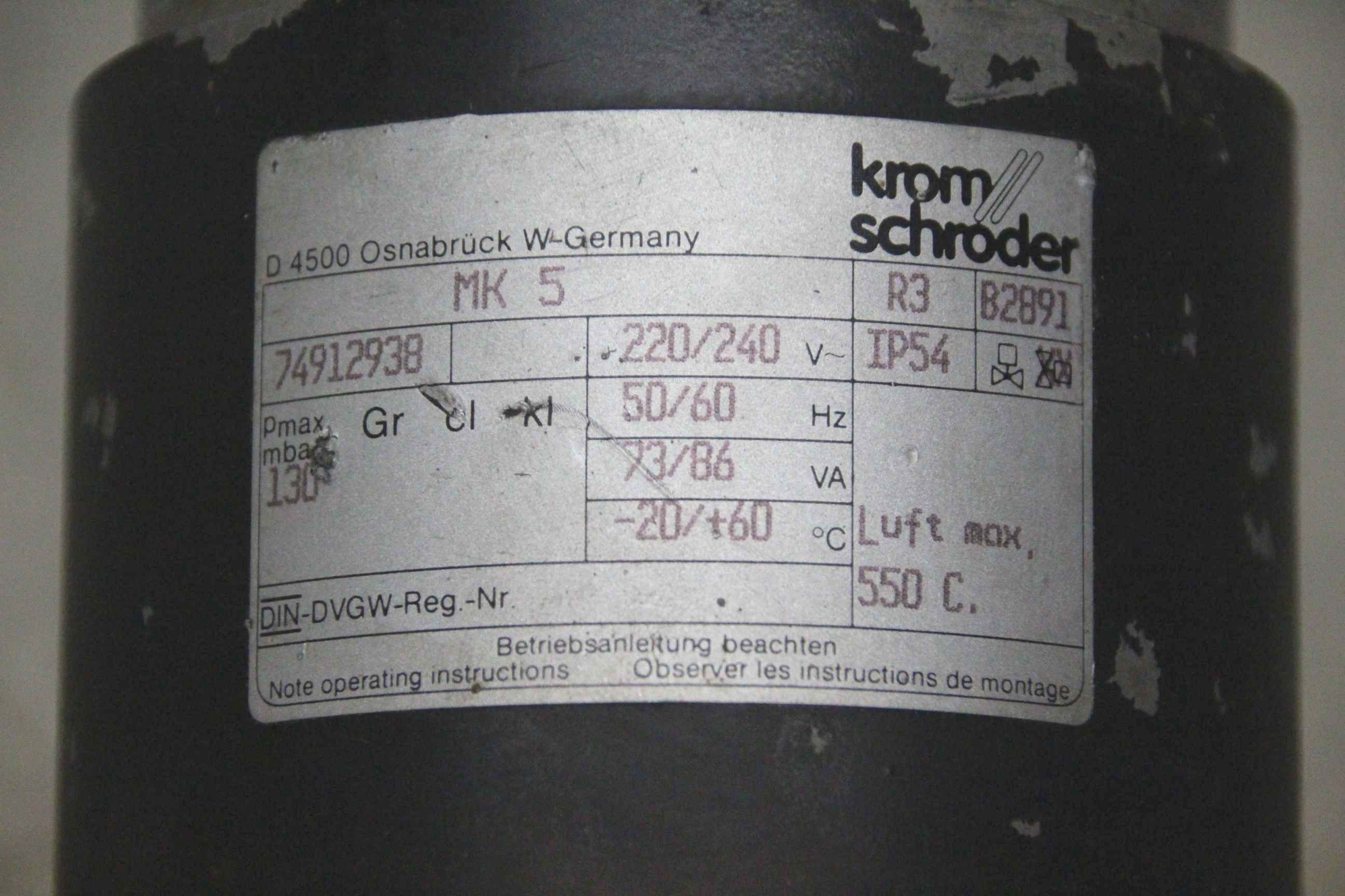 Solenoid valve, disc valve, flap valve, electromagnetic valve, solenoid valve, gas solenoid valve -Manufacturer: Kromschröder, gas solenoid valve -Type: MK 5 R3 B2891 -Pmax.: 130 mbar -Voltage: 220/240 V -Dimensions: 375/115/130 mm -Weight: 7 kg