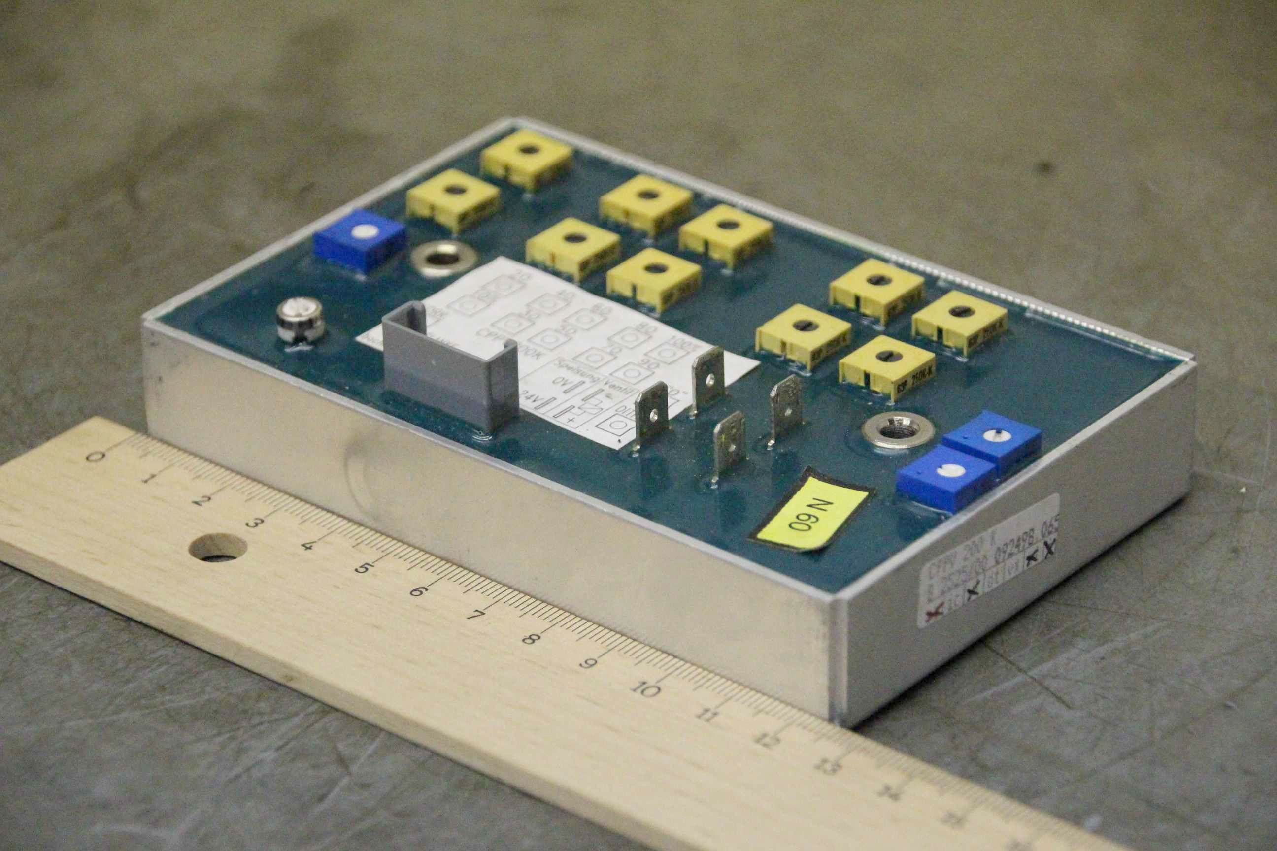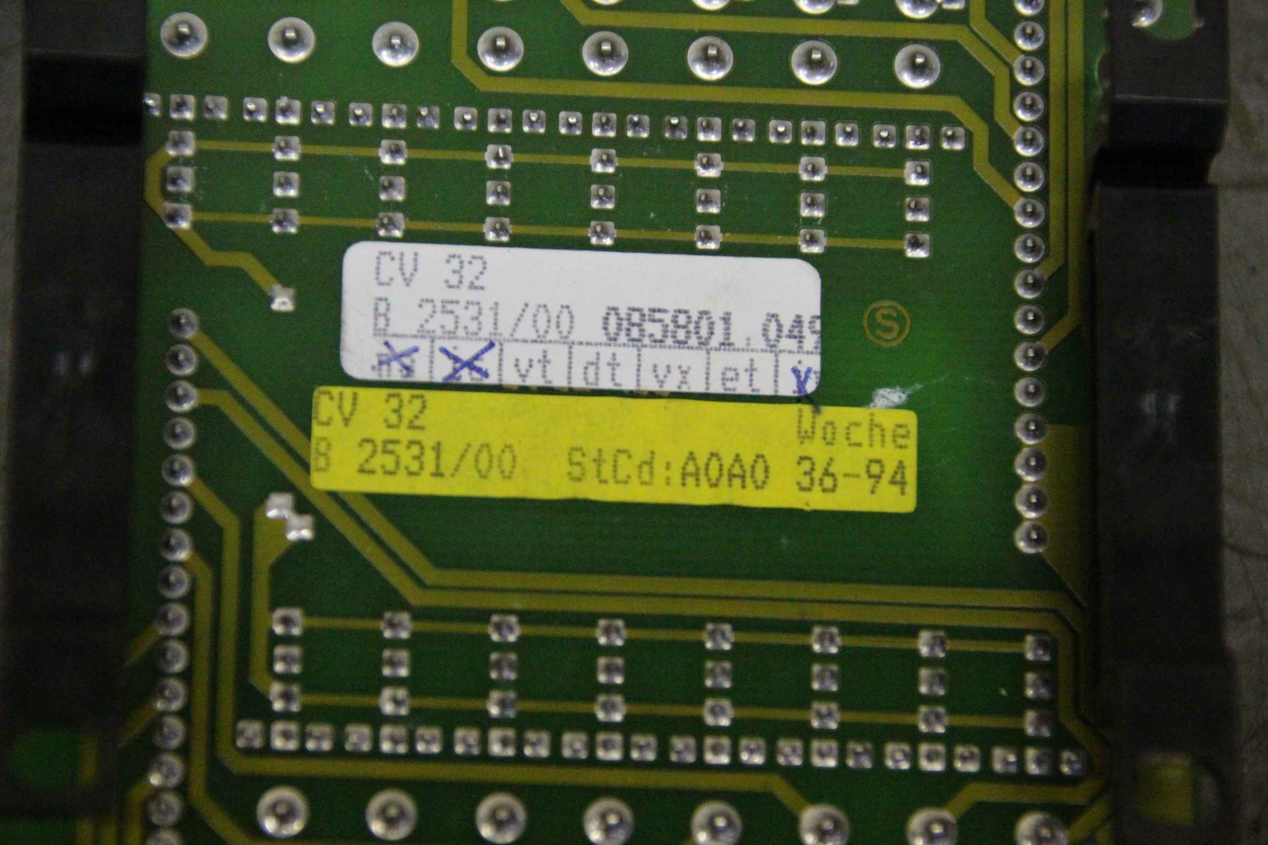 CNC control, operator panel, control console, operating unit, card slot, control cards, MC3 control, plug-in cards, printed circuit boards, valve module, valve amplifier, circuit board, analog distribution board, distribution printed circuit board -Manufacturer: Bachmann, distributor print card made from injection molding machine Battenfeld -Type: CV 4 B 2528/00 -Number: 3 modules available -Price: per piece -Dimensions: 100/60/H30 mm -Weight: 0.1 kg/pc.