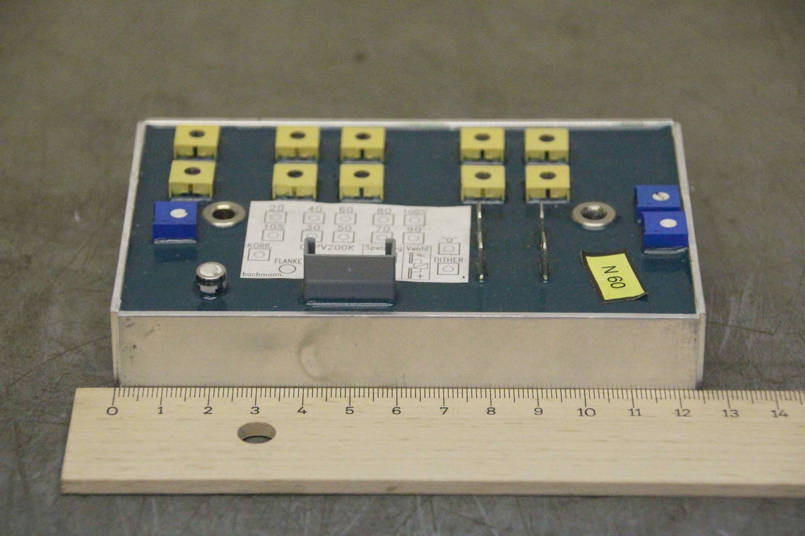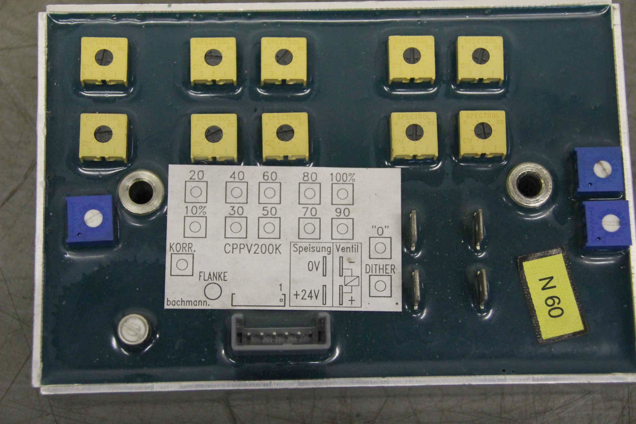 CNC control, control panel, control panel, control unit, card slot, control cards, MC3 control, plug-in cards, circuit boards, valve module, valve amplifier, circuit card, analog distribution card, distribution board card, valve amplifier, valve control-Manufacturer: Bachmann, valve amplifier from Battenfeld injection molding machine-Type: CPPV 200 KB 2525/00-Quantity: 3x valve control available-Price per piece-Dimensions: 125/82/H35 mm-Weight: 0.4 kg/pc.