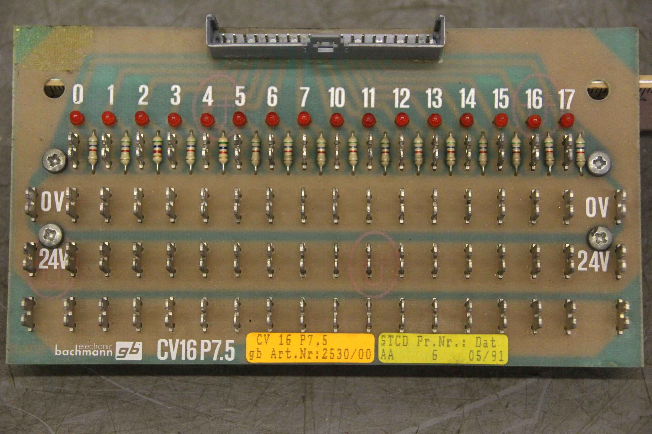 CNC control, control panel, control panel, control unit, card slot, control cards, MC3 control, plug-in cards, printed circuit boards, valve module, valve amplifier, printed circuit card, analog distribution card, distributor print card, valve amplifier, bus print, bus board, processor card, coupling card, temperature control card-Manufacturer: Bachmann, distribution board from injection molding machine Battenfeld-Type: Bachmann CV 16 P7,5 Art.Nr: 2530/00-Quantity: 5x cards available-Price per piece-Dimensions .: 145/80 / H40 mm-Weight: 0.1 kg / pc.
